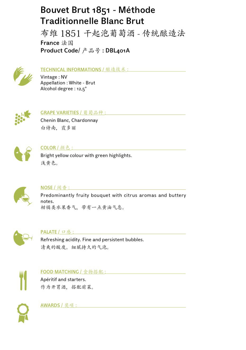 布维1851干起泡葡萄酒,法国 Bouvet-Ladubay‘1851’Methode Traditionnelle Brut, France