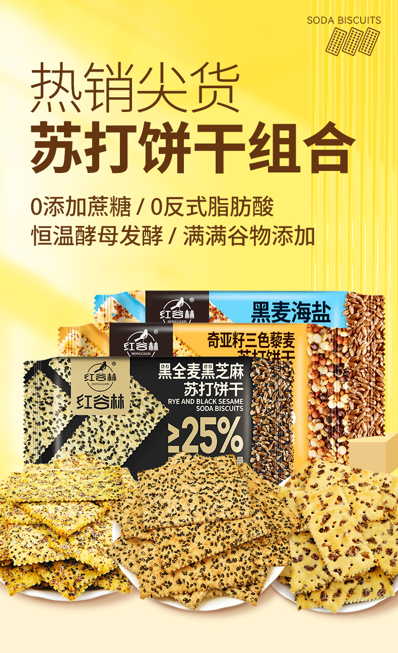 红谷林苏打饼干组合装黑麦海盐奇亚籽三色藜麦黑芝麻黑全麦圣诞礼盒