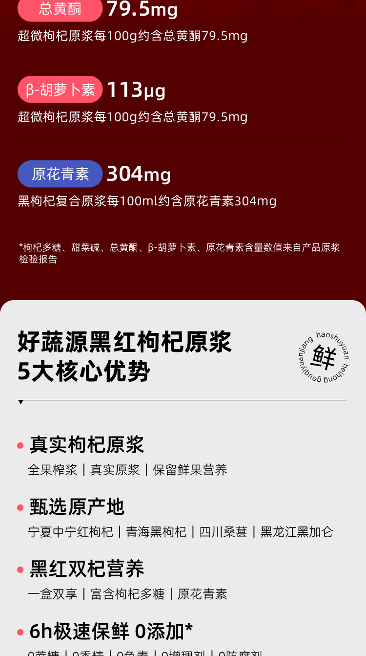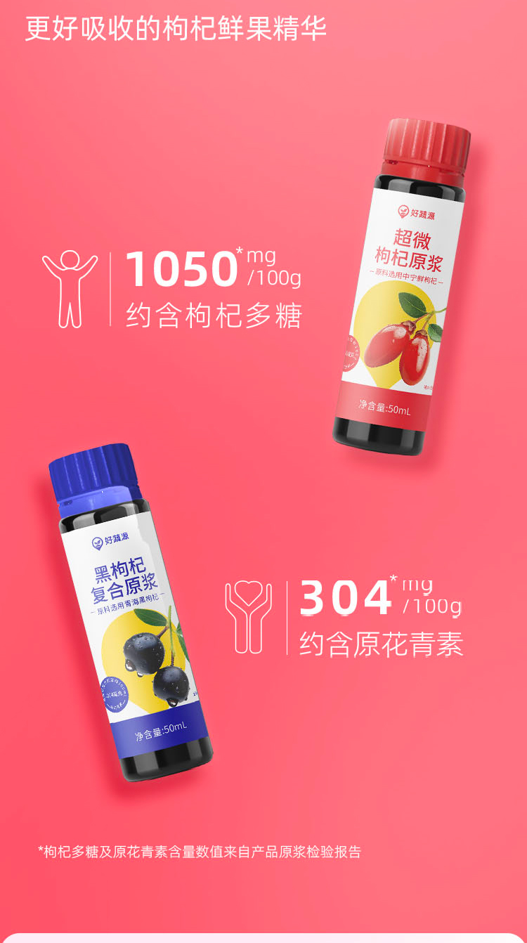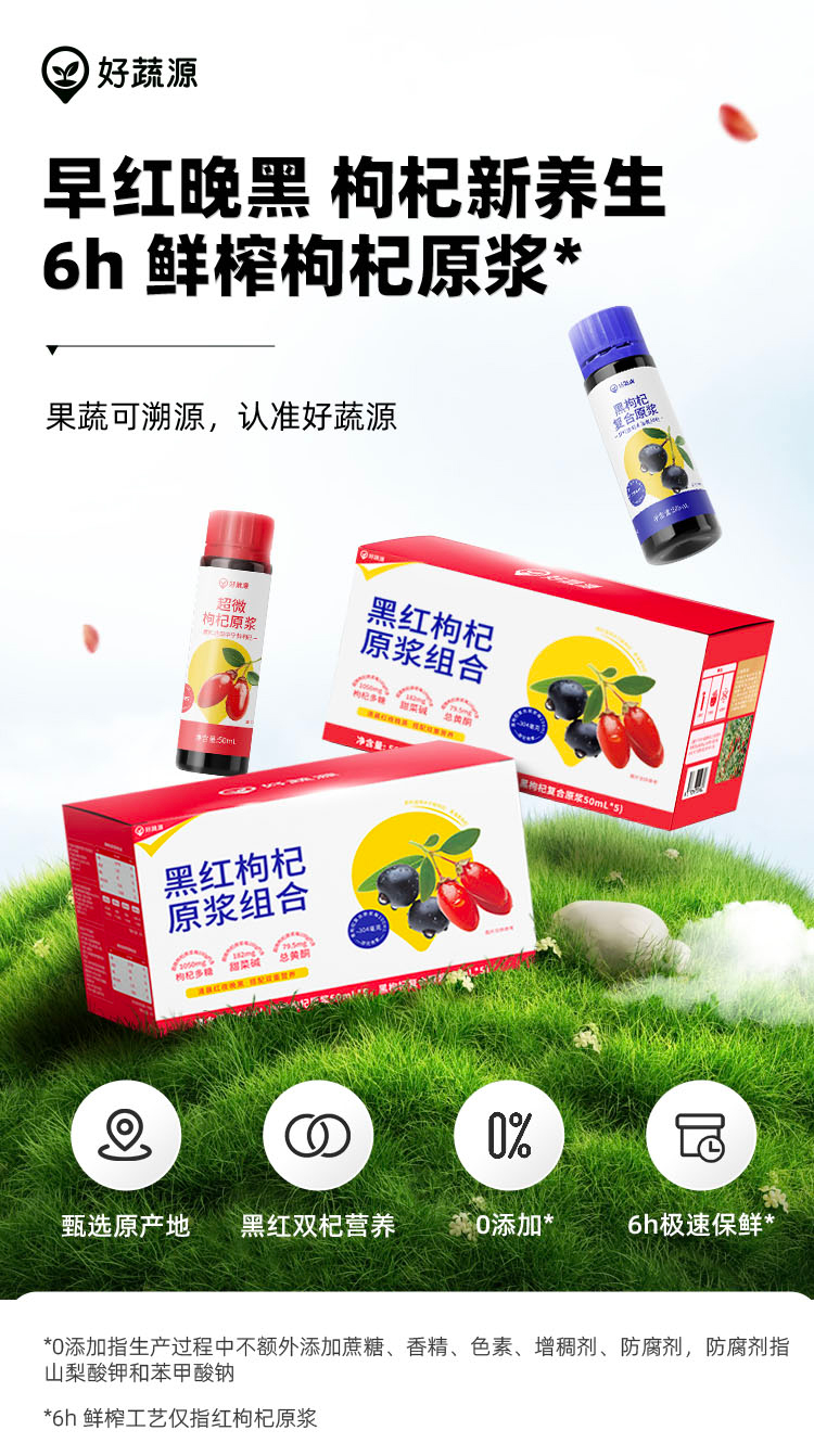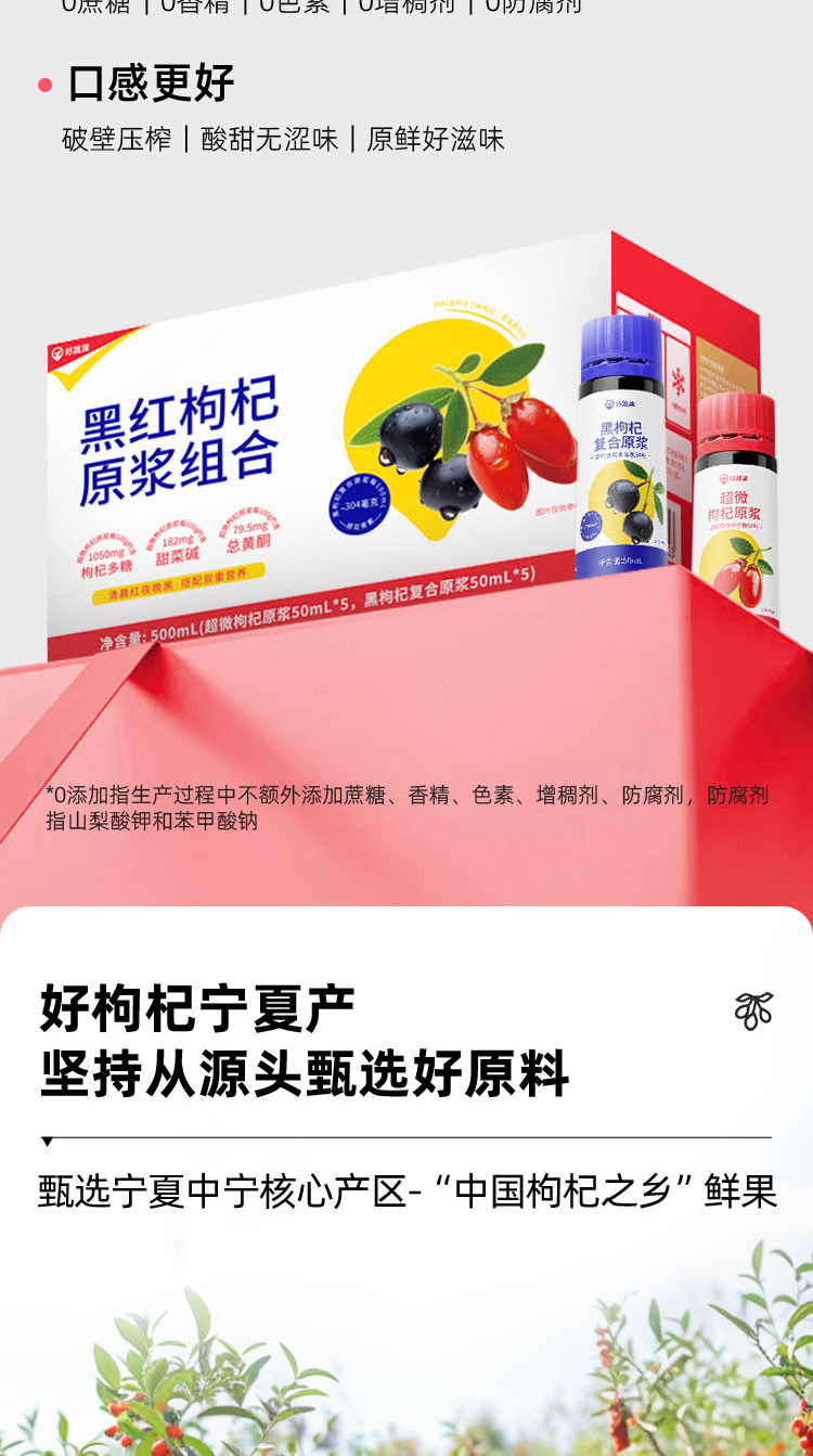 【甄选原产地】好蔬源 黑红枸杞原浆组合 (超微枸杞原浆50ml*5瓶+黑枸杞复合原浆50ml*5瓶) 早红晚黑饮养CP