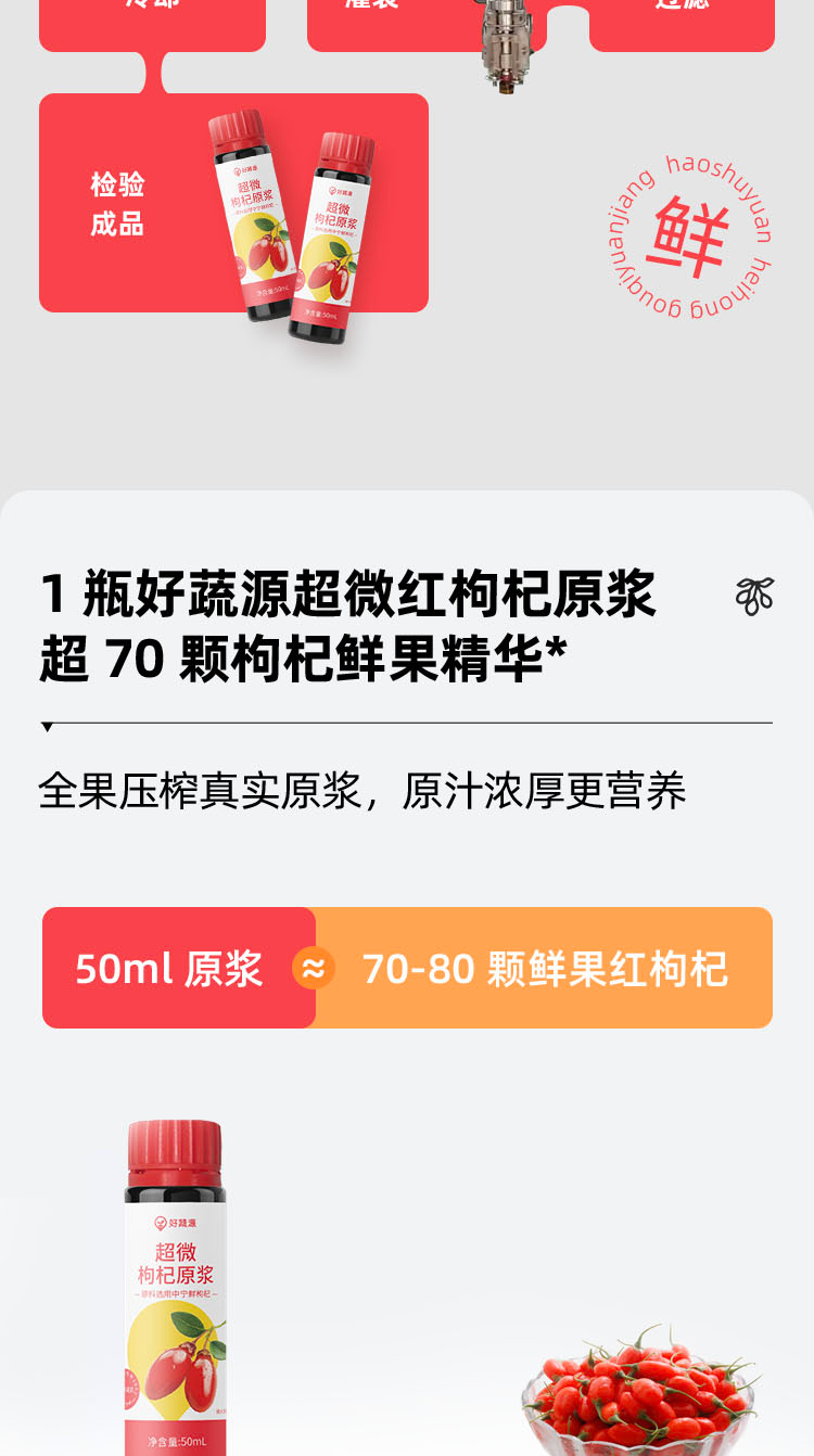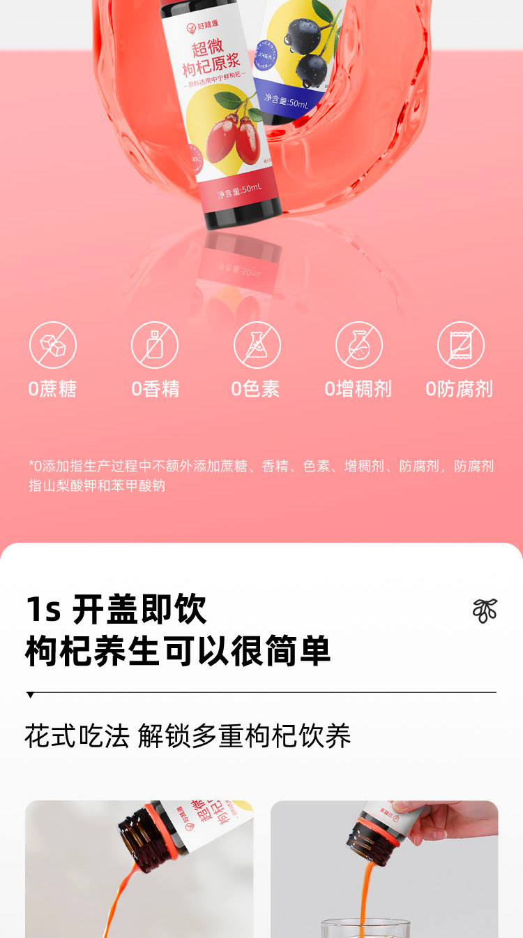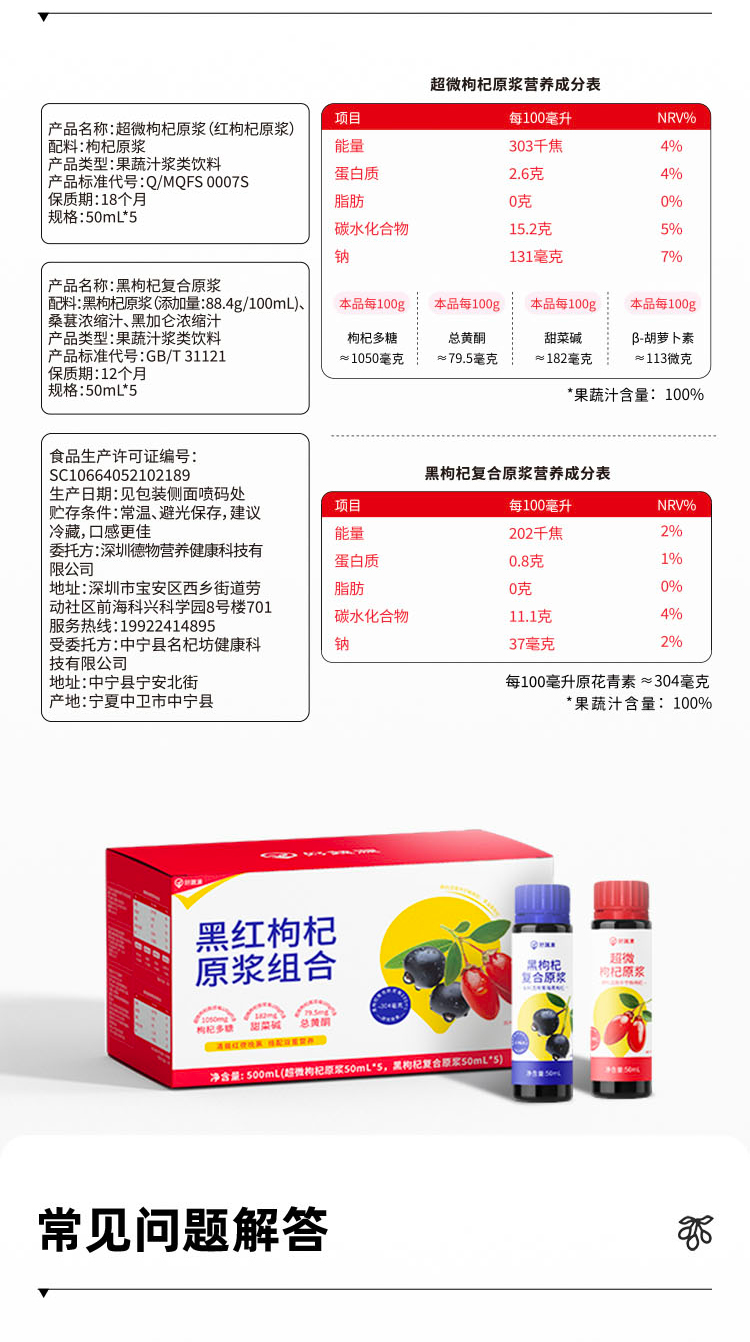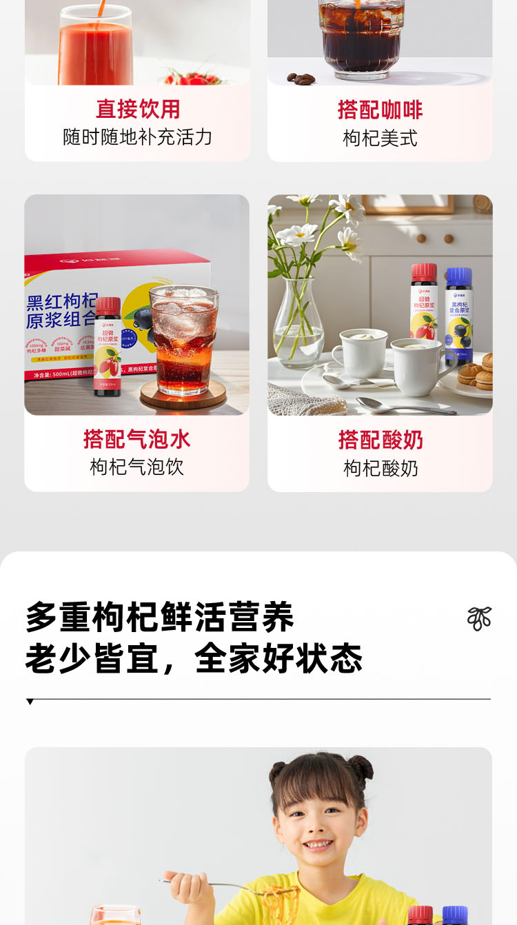 【甄选原产地】好蔬源 黑红枸杞原浆组合 (超微枸杞原浆50ml*5瓶+黑枸杞复合原浆50ml*5瓶) 早红晚黑饮养CP