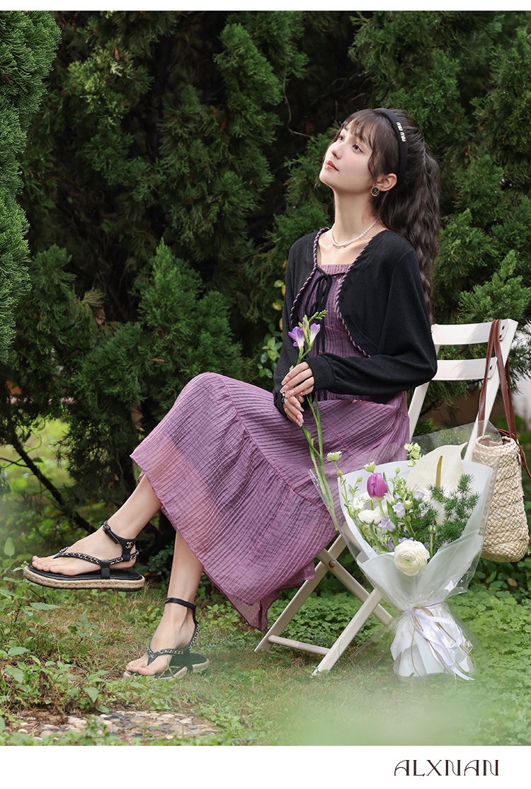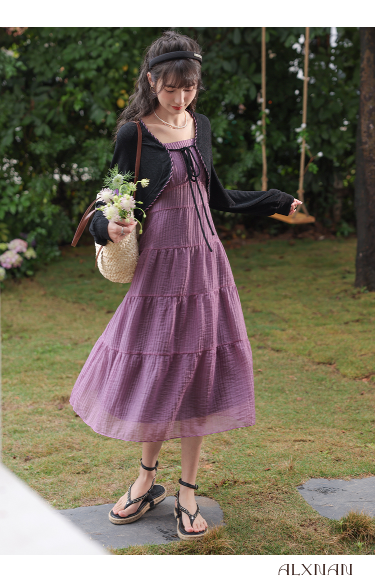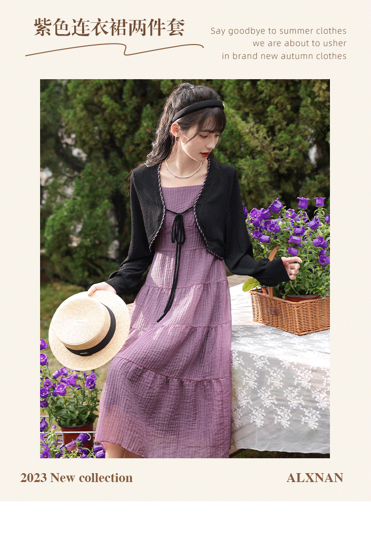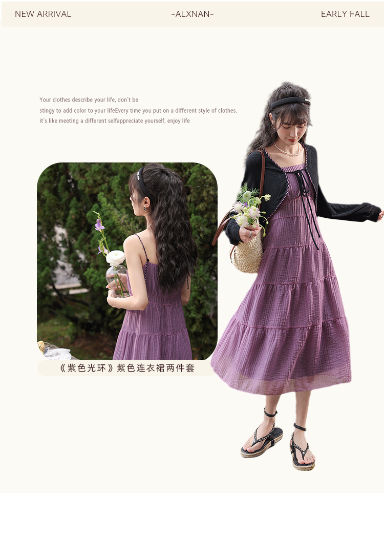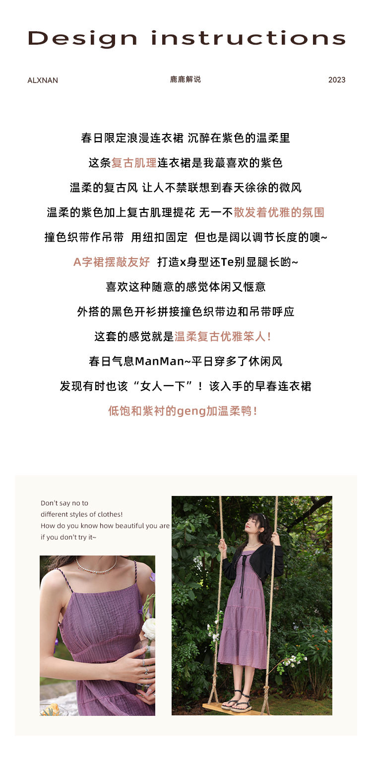 【65折秒杀】鹿向南《紫色光环》法式春季吊带连衣裙两件套女新款长袖上衣LXN28833