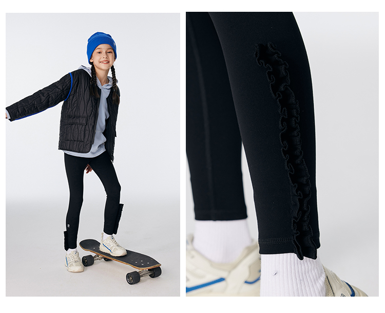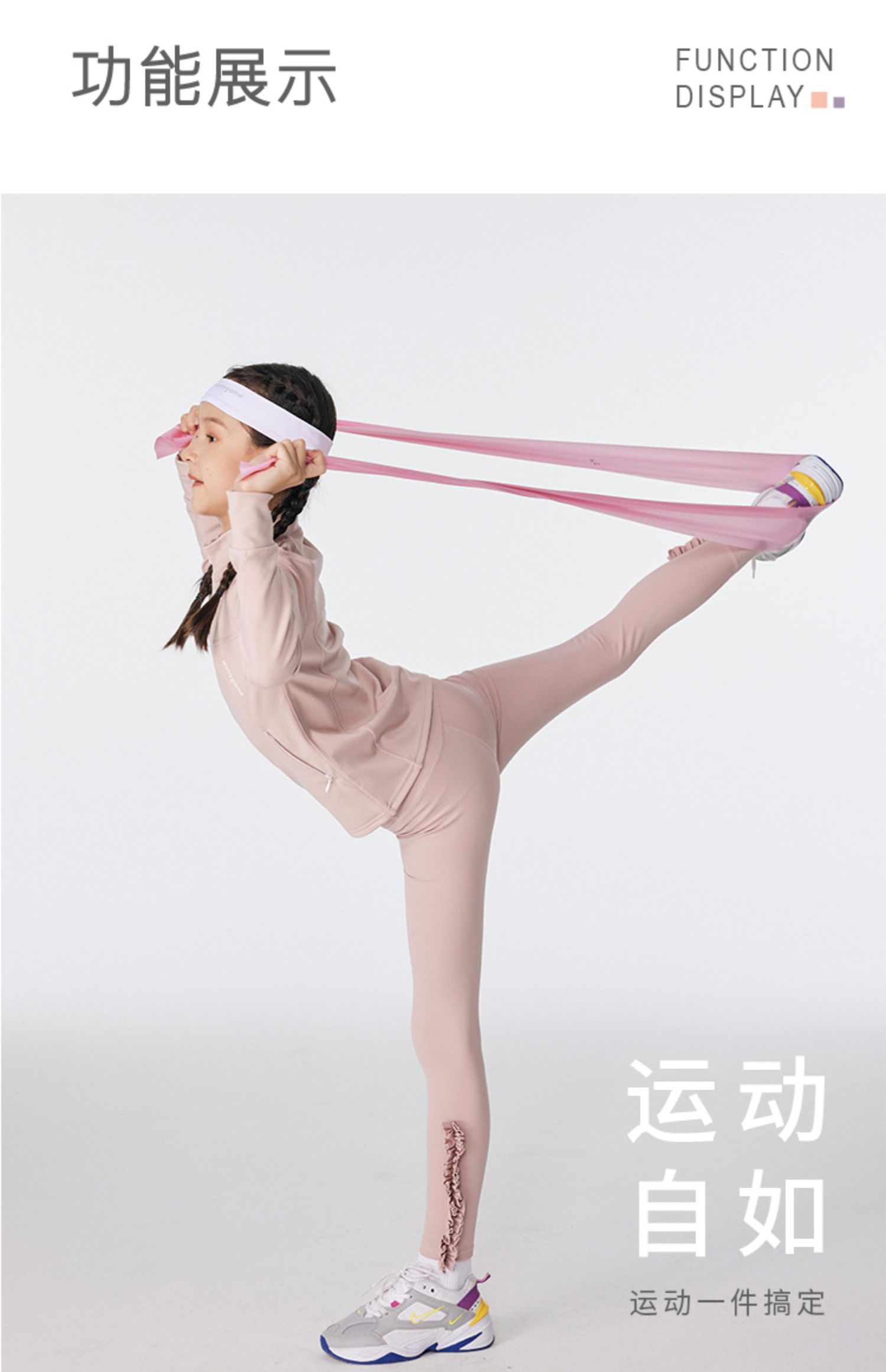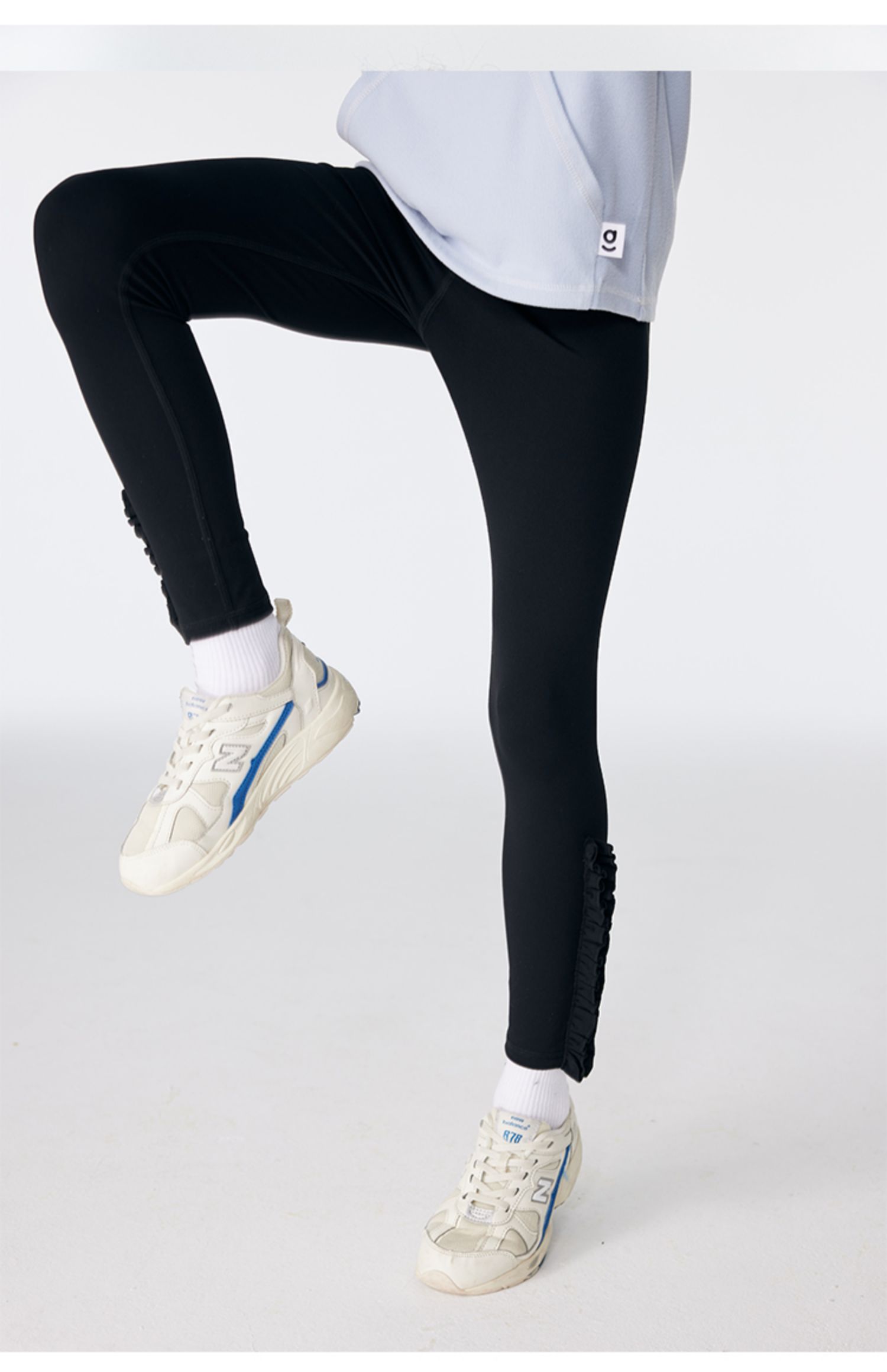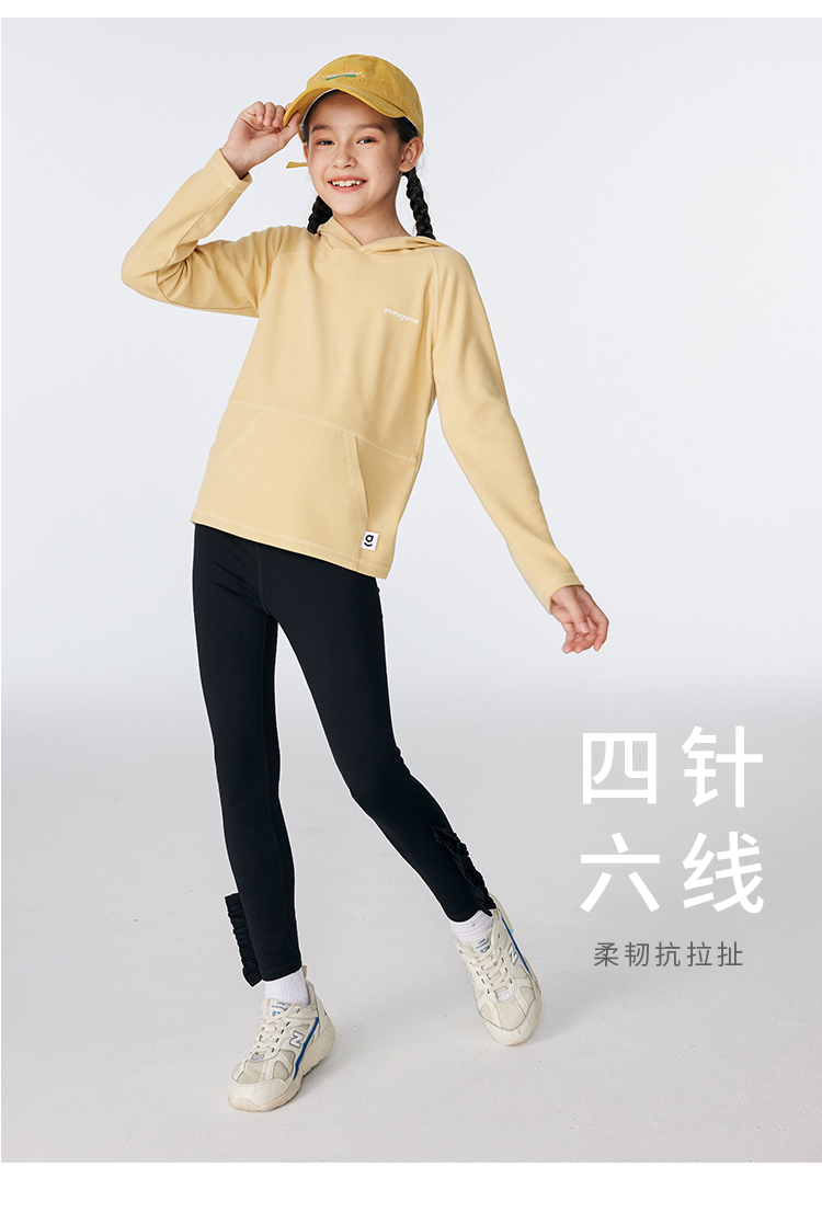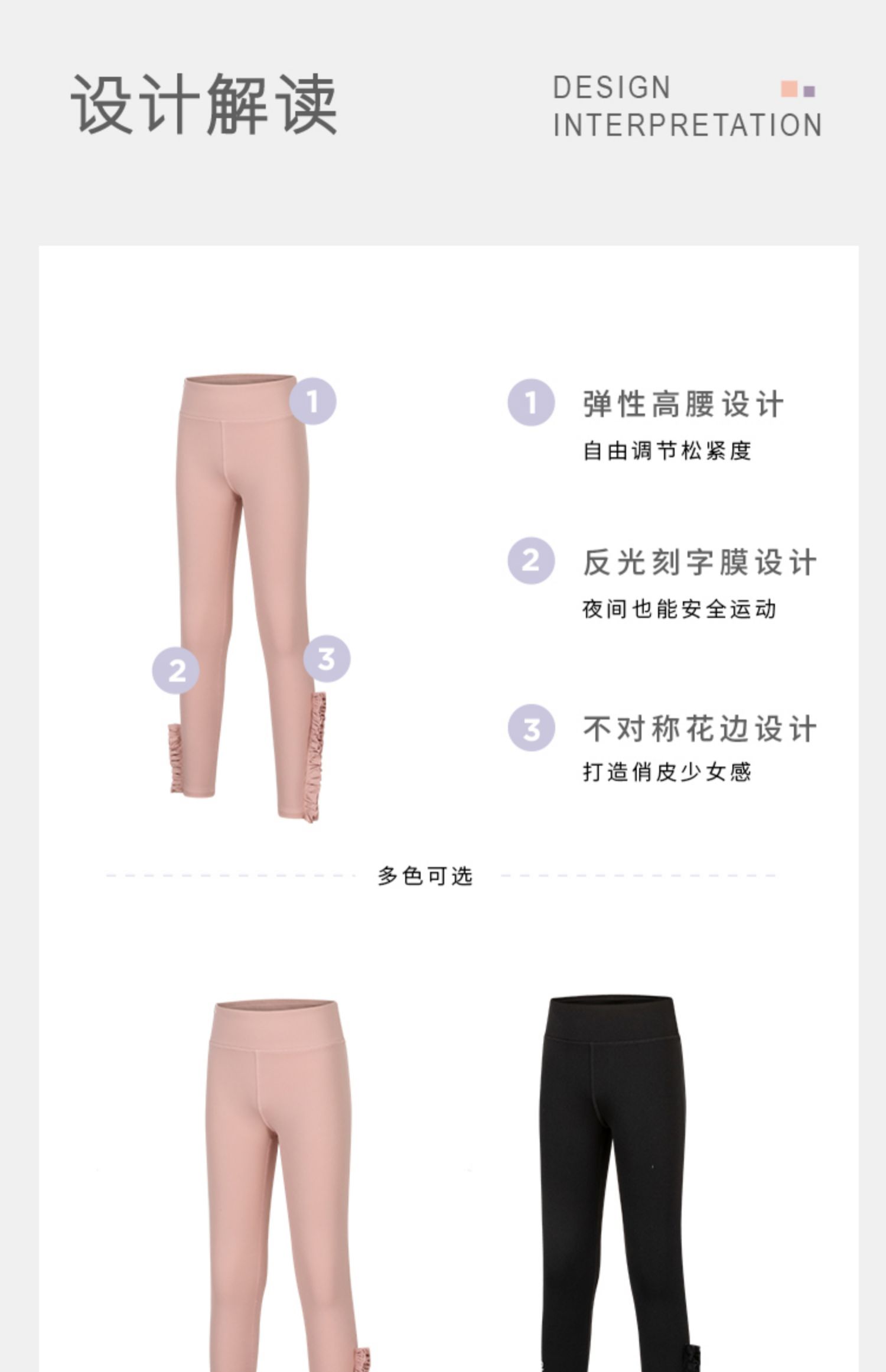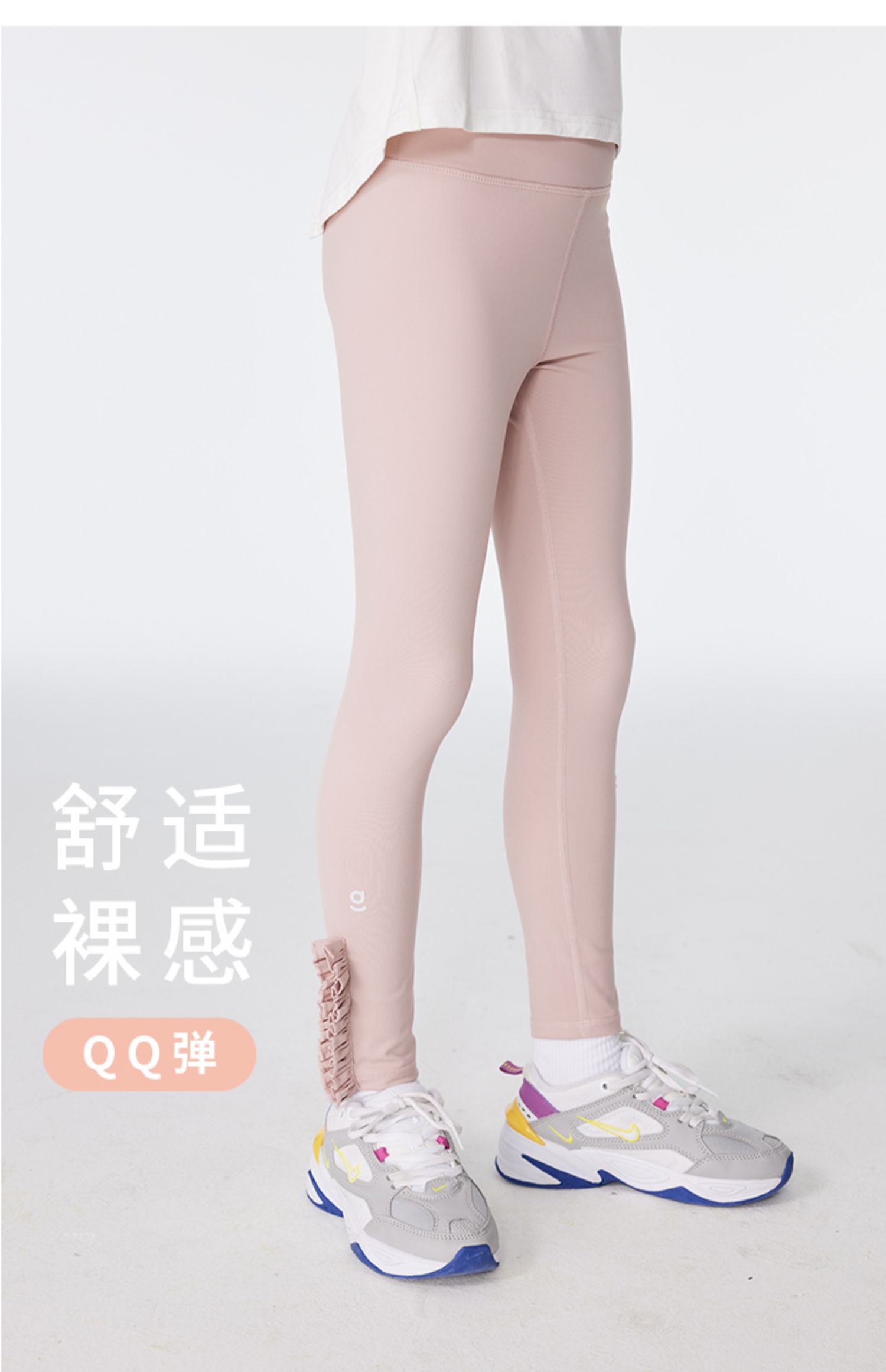 onmygame女童紧身训练打底裤春装花边瑜伽裤儿童运动裤鲨鱼裤