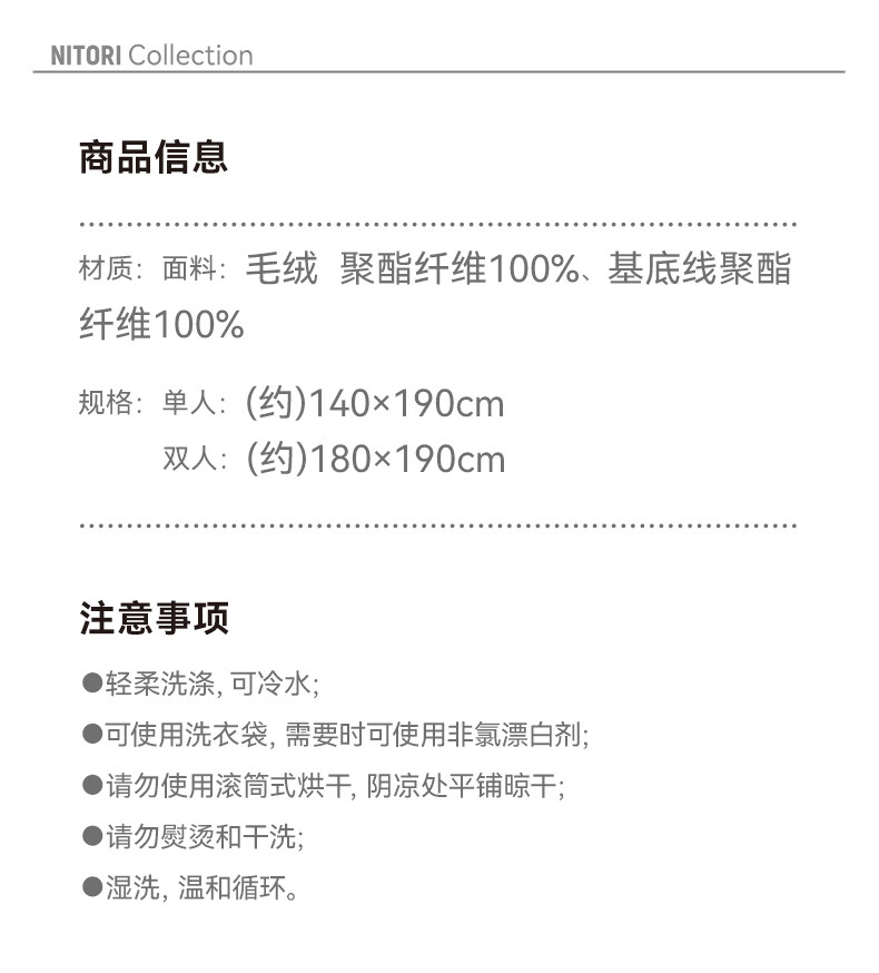 NITORI宜得利家居 春秋可用顺滑触感毛毯办公室午休盖毯沙发毛毯
