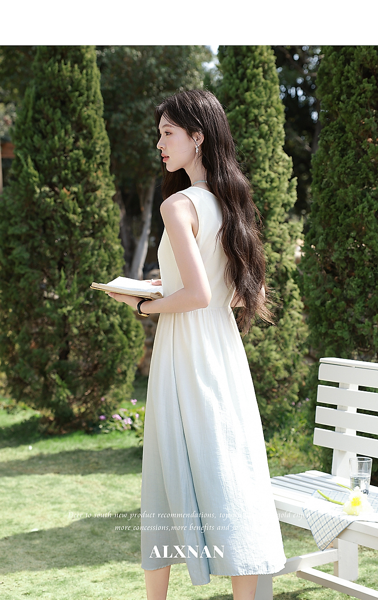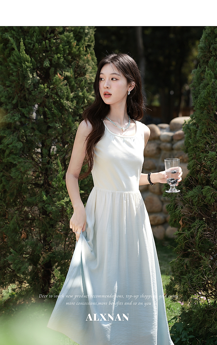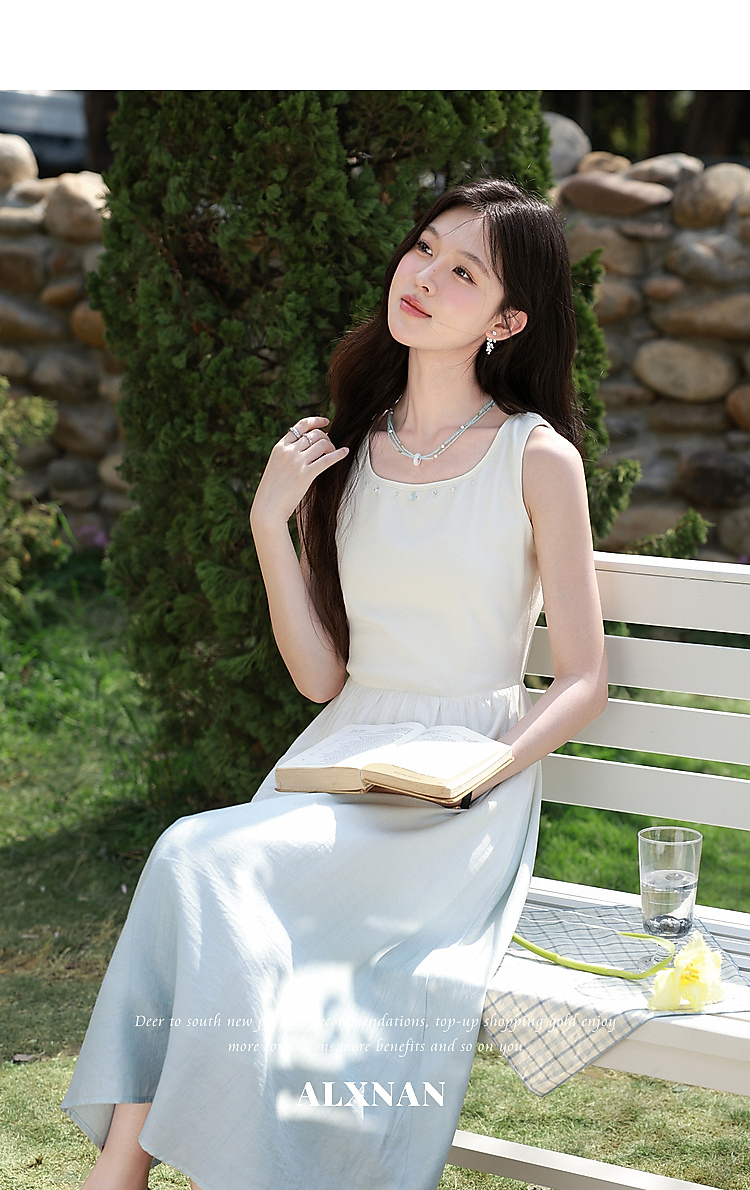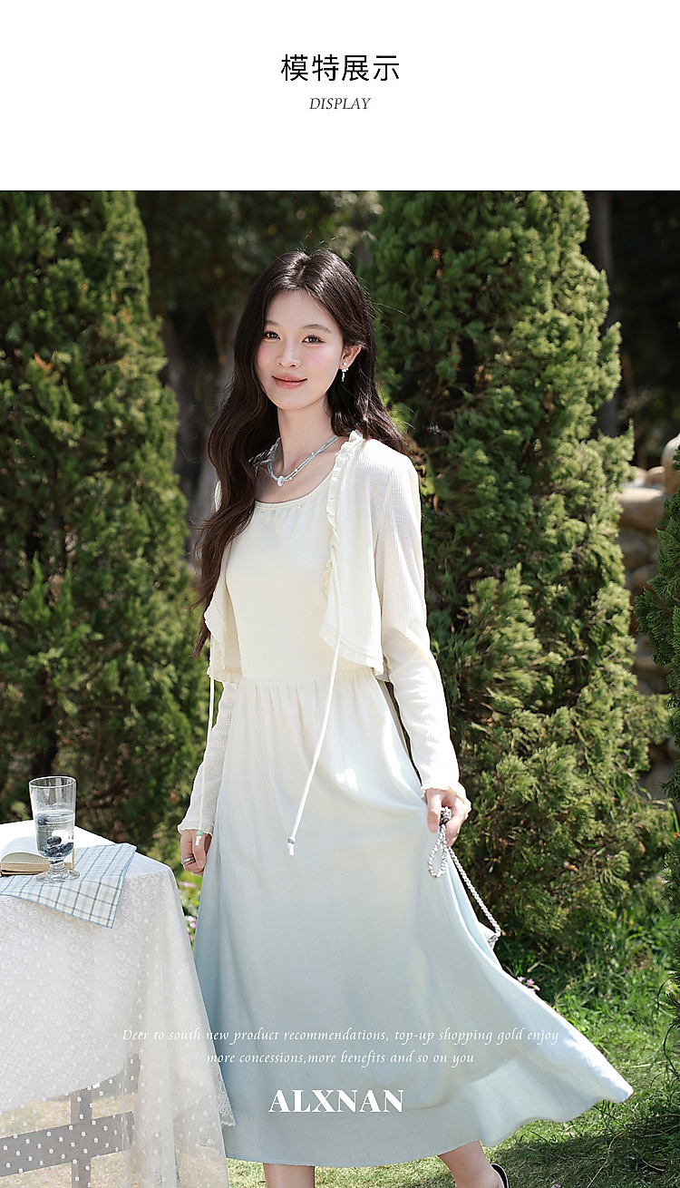鹿向南「兰风海调」设计感春季百搭渐变色裙子明媚简约清爽连衣裙