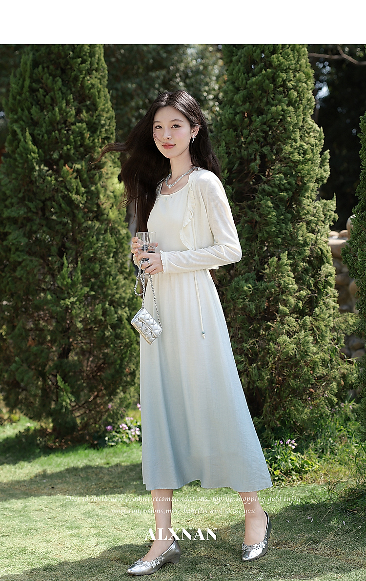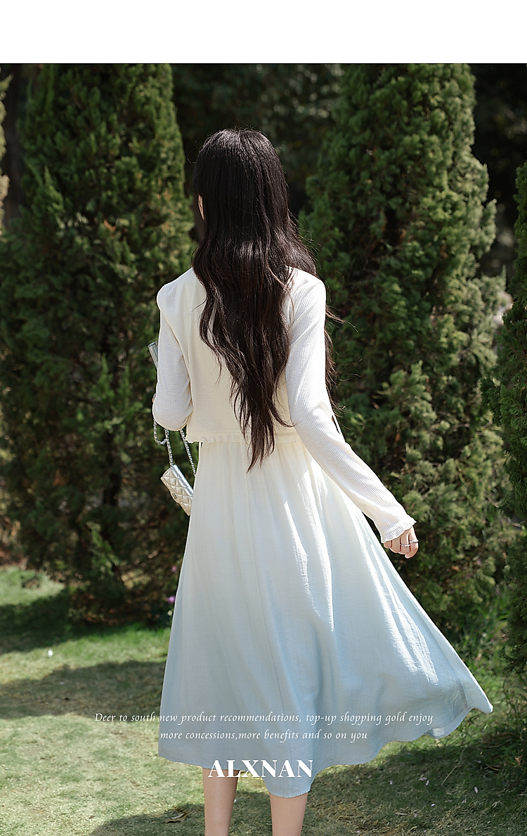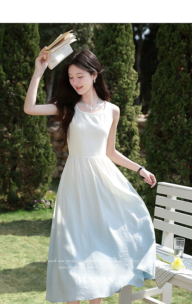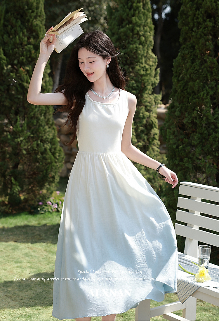 鹿向南「兰风海调」设计感春季百搭渐变色裙子明媚简约清爽连衣裙