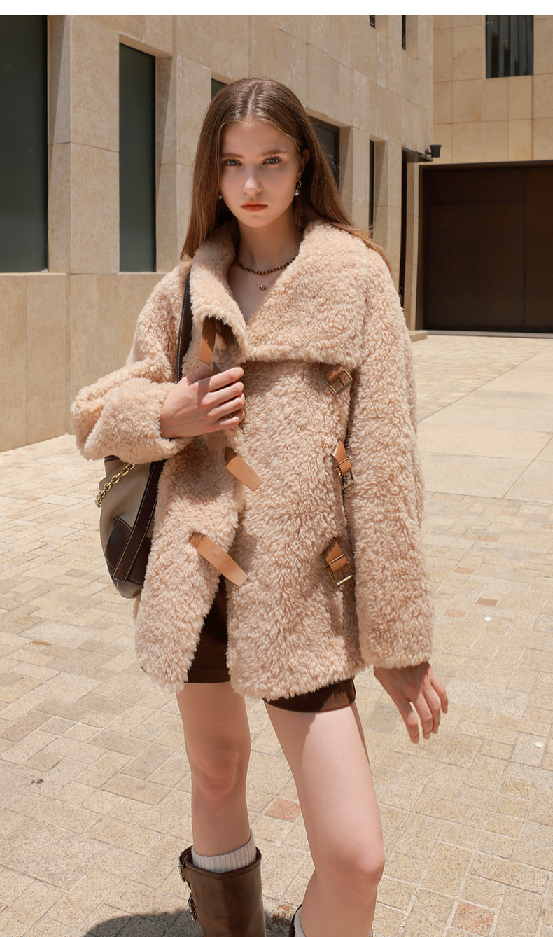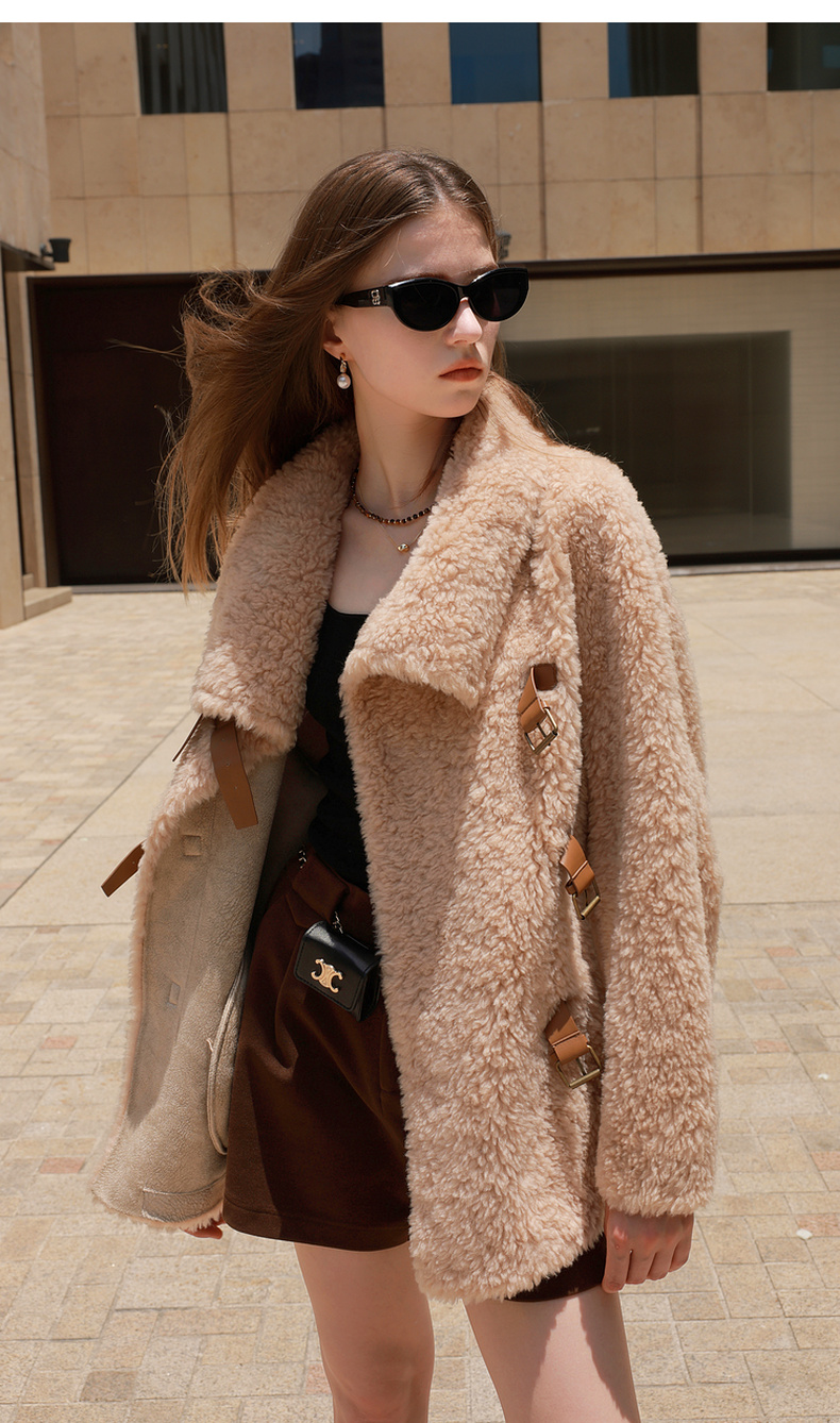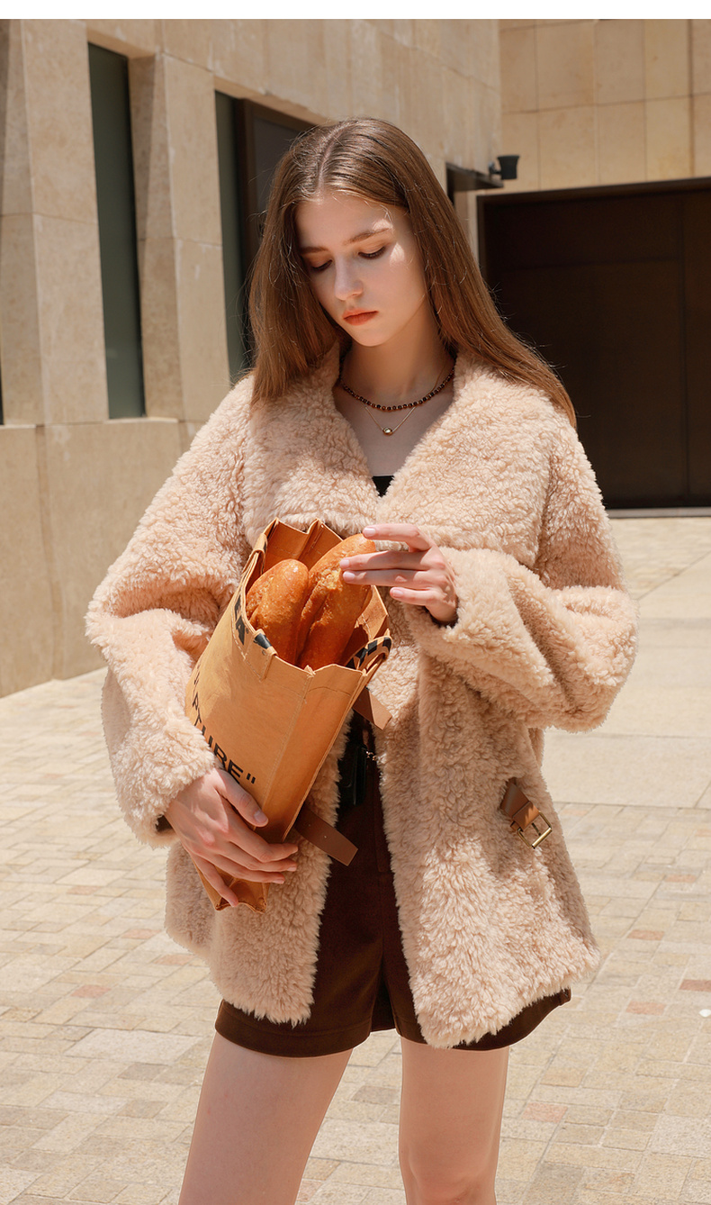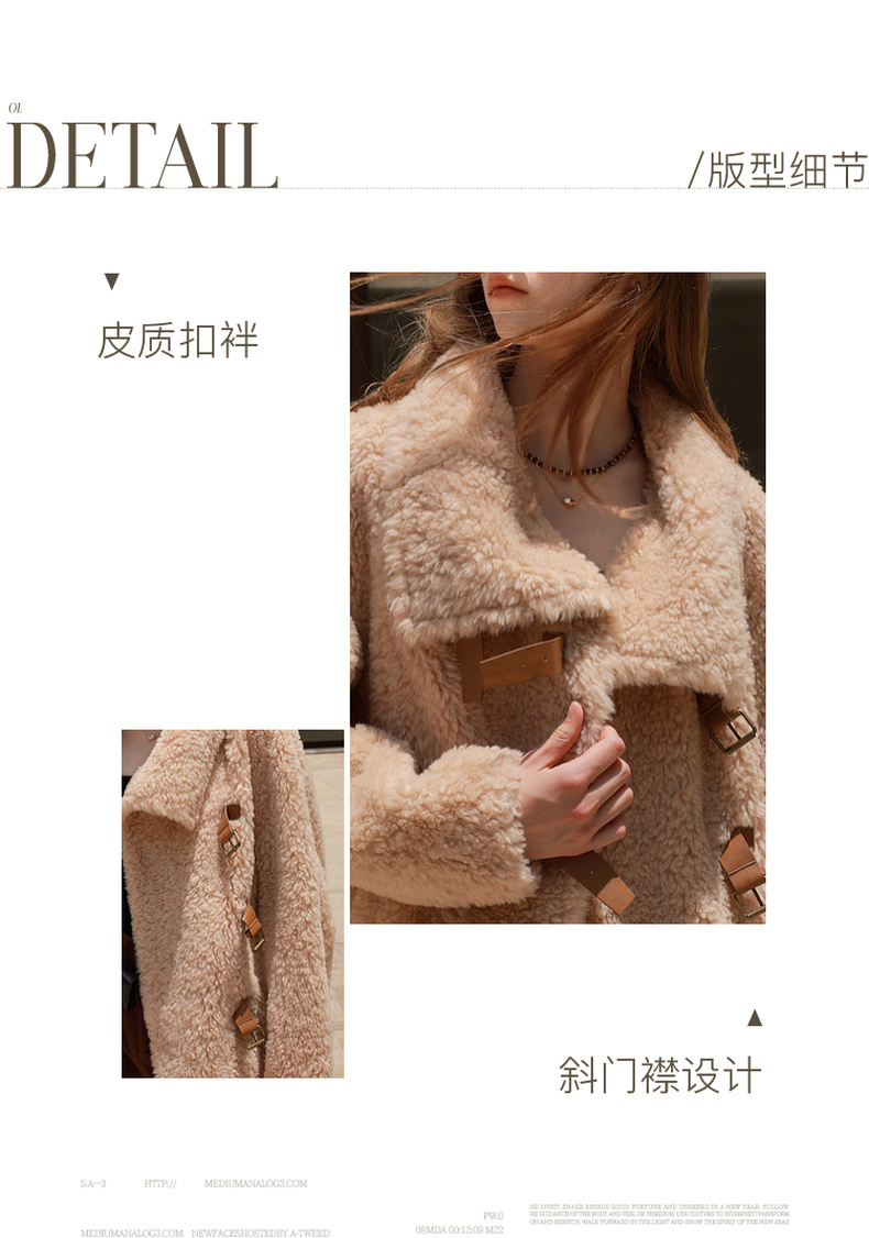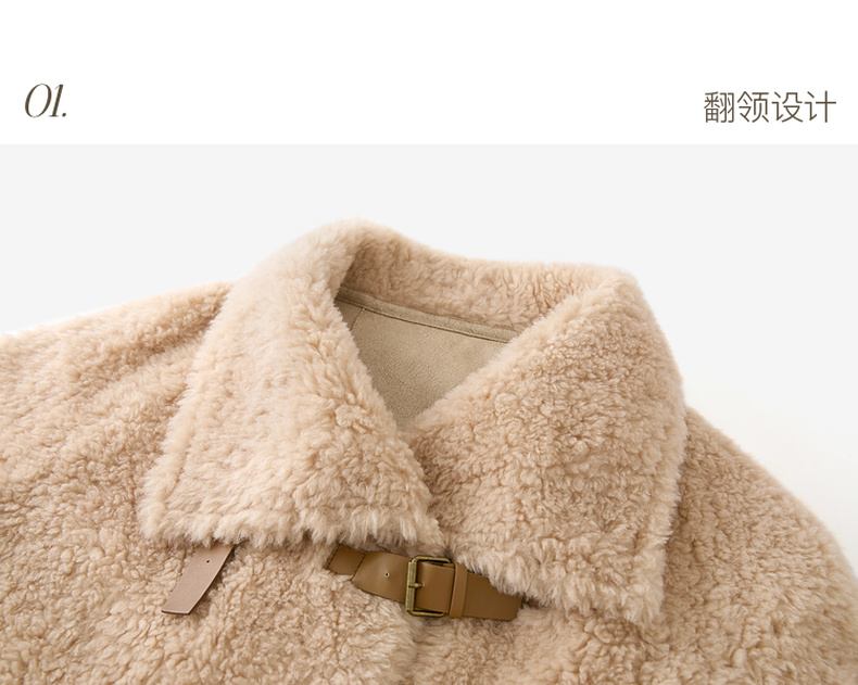 三彩2025冬季新款绵羊毛复合皮草翻领毛毛外套宽松泰迪仿皮草M