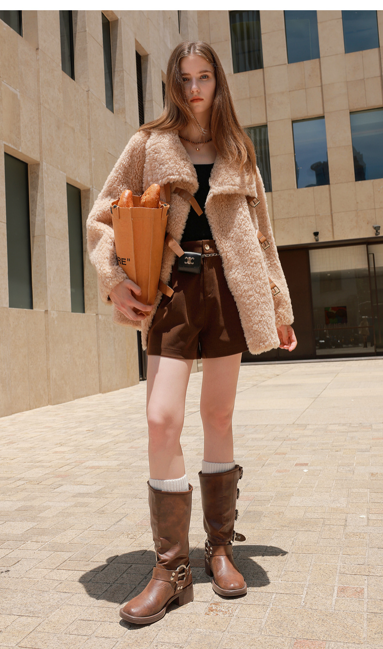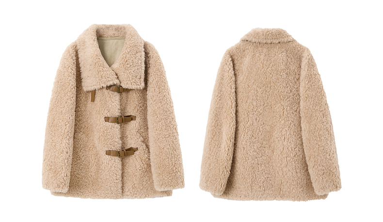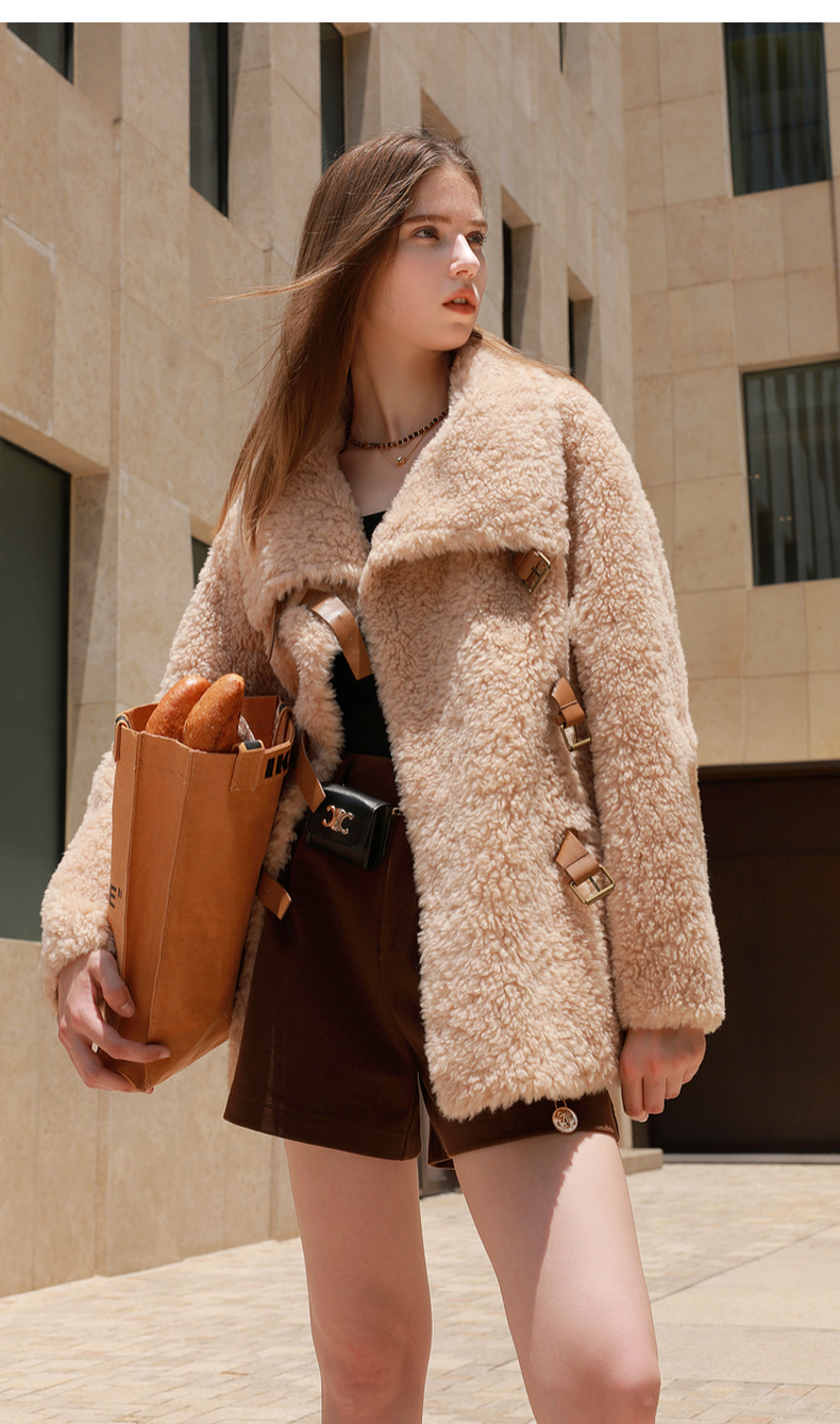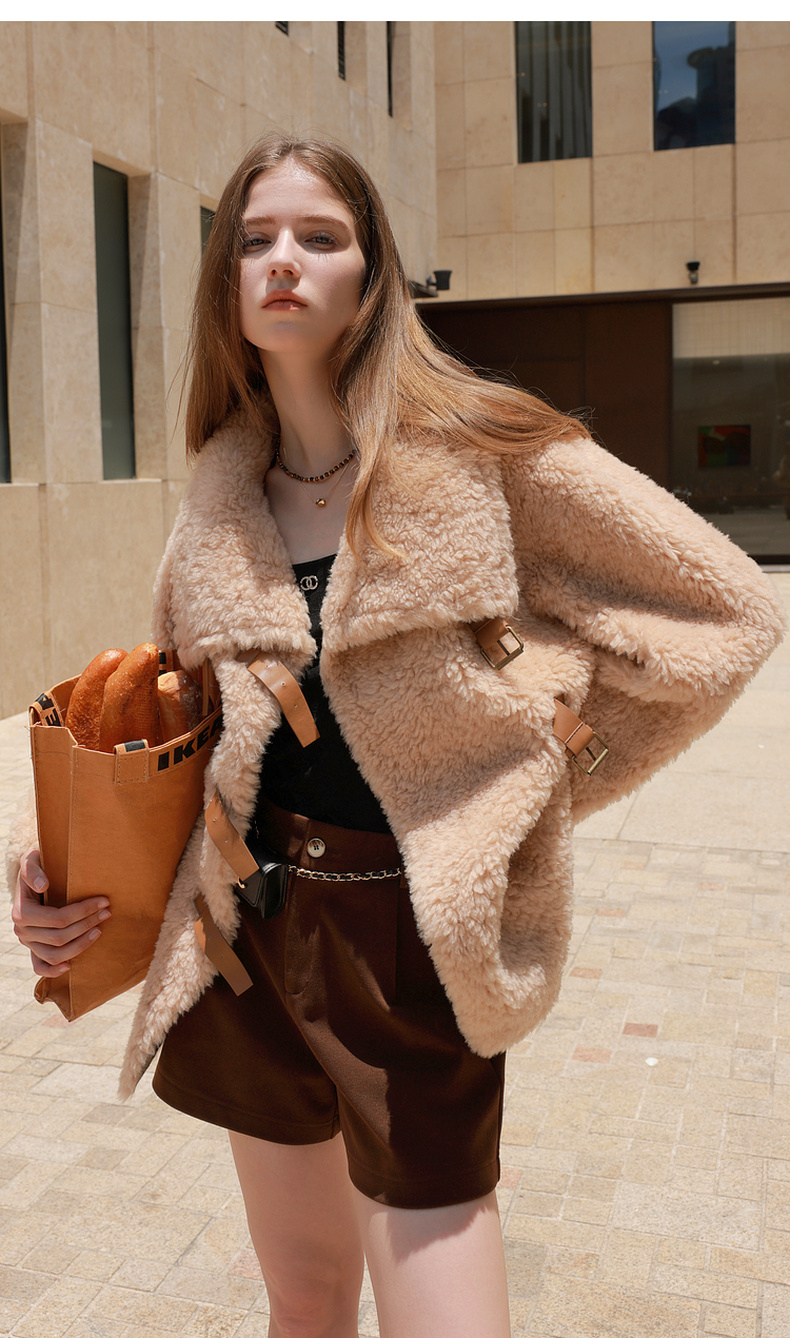 三彩2025冬季新款绵羊毛复合皮草翻领毛毛外套宽松泰迪仿皮草M