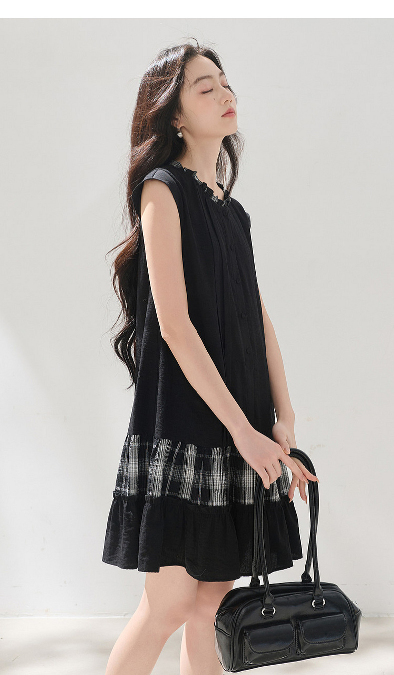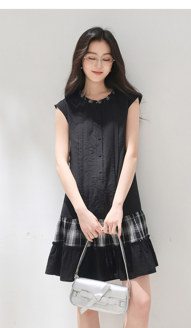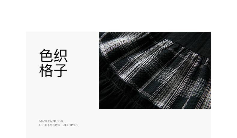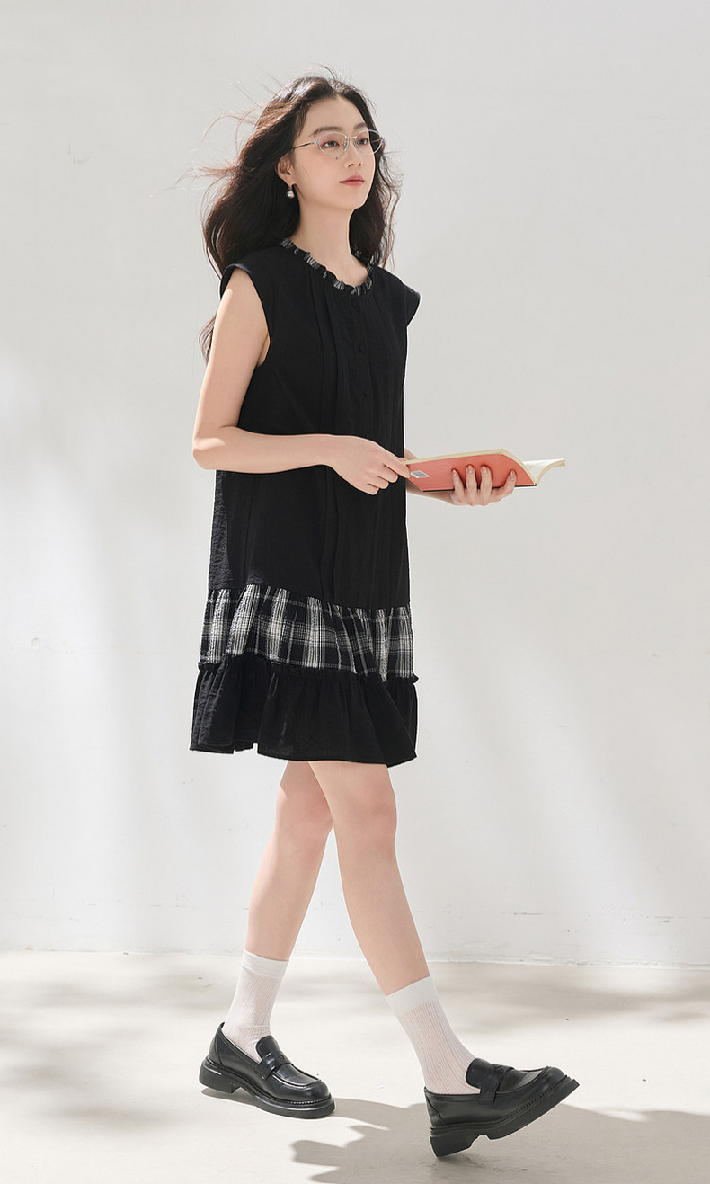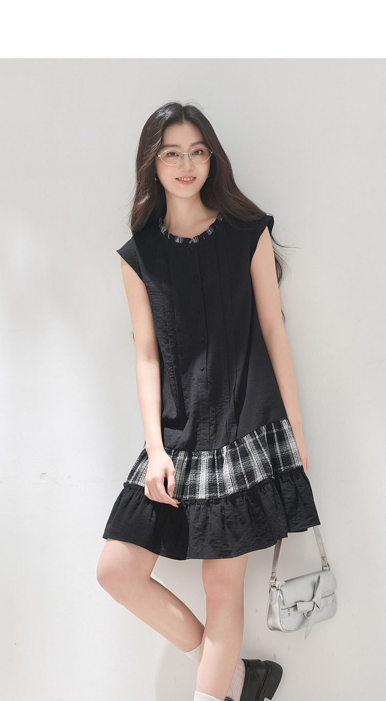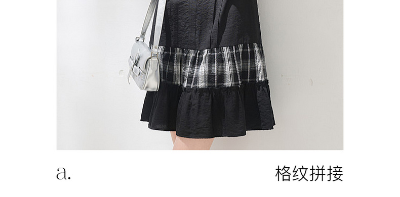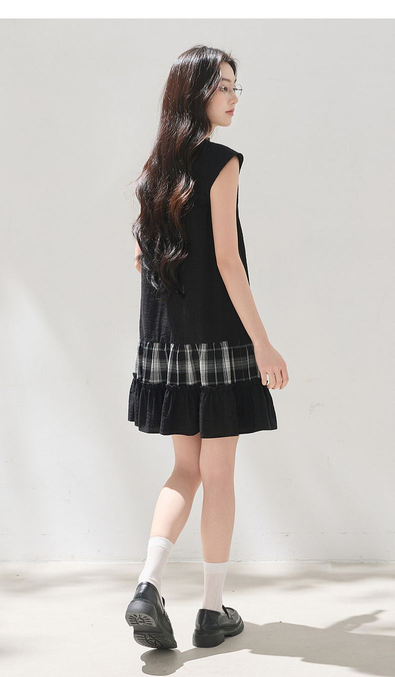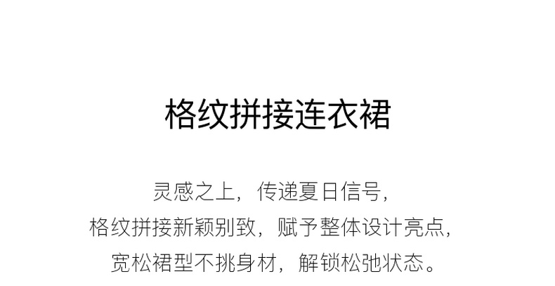 三彩2026夏季新款格纹拼接连衣裙圆领宽松A字裙短裙M