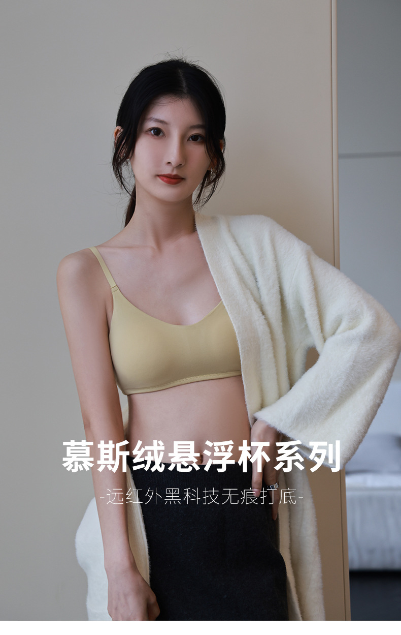鹿鹿推荐 • 小暖杯内衣!慕斯绒悬浮杯无钢圈聚拢文胸 大胸显小~