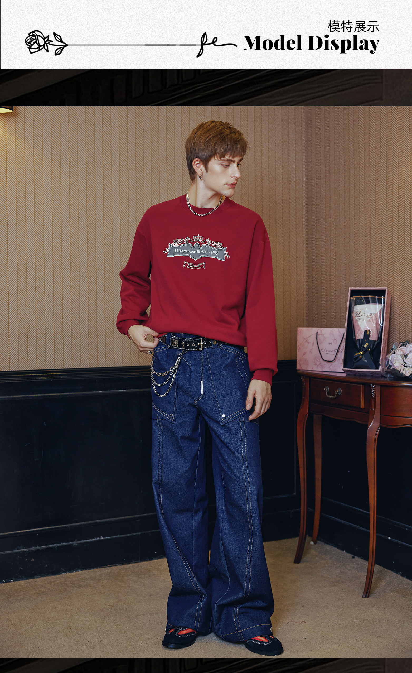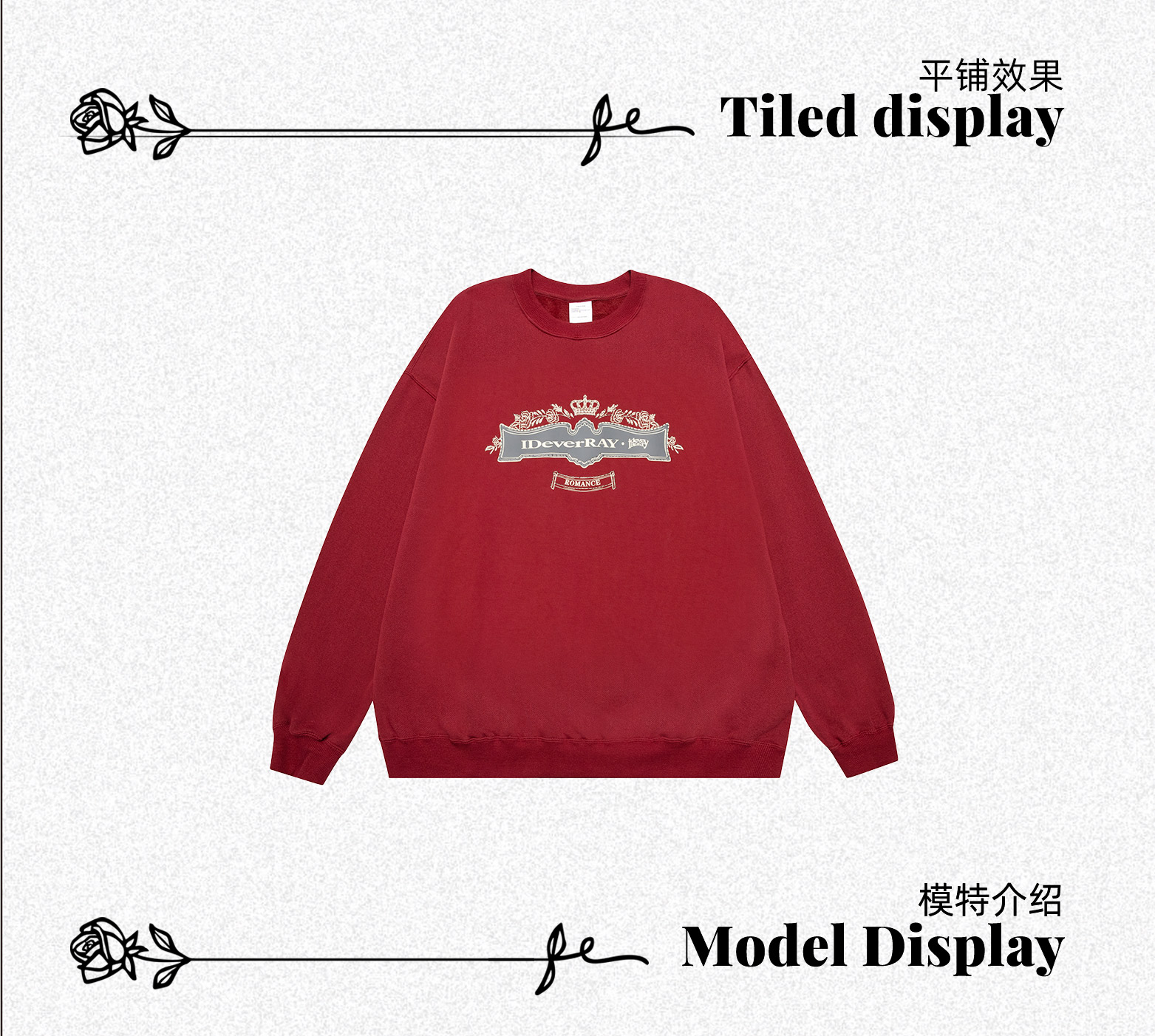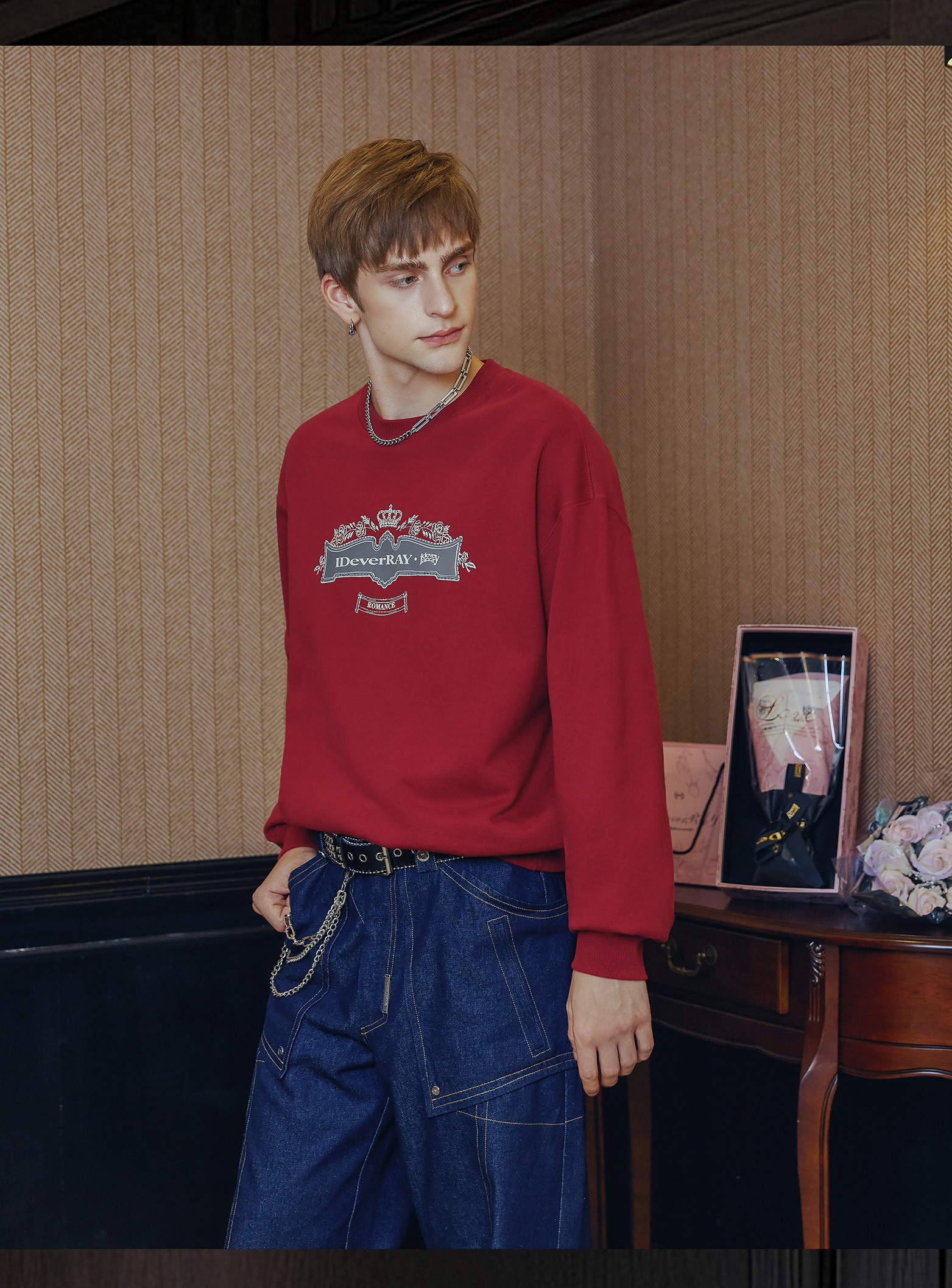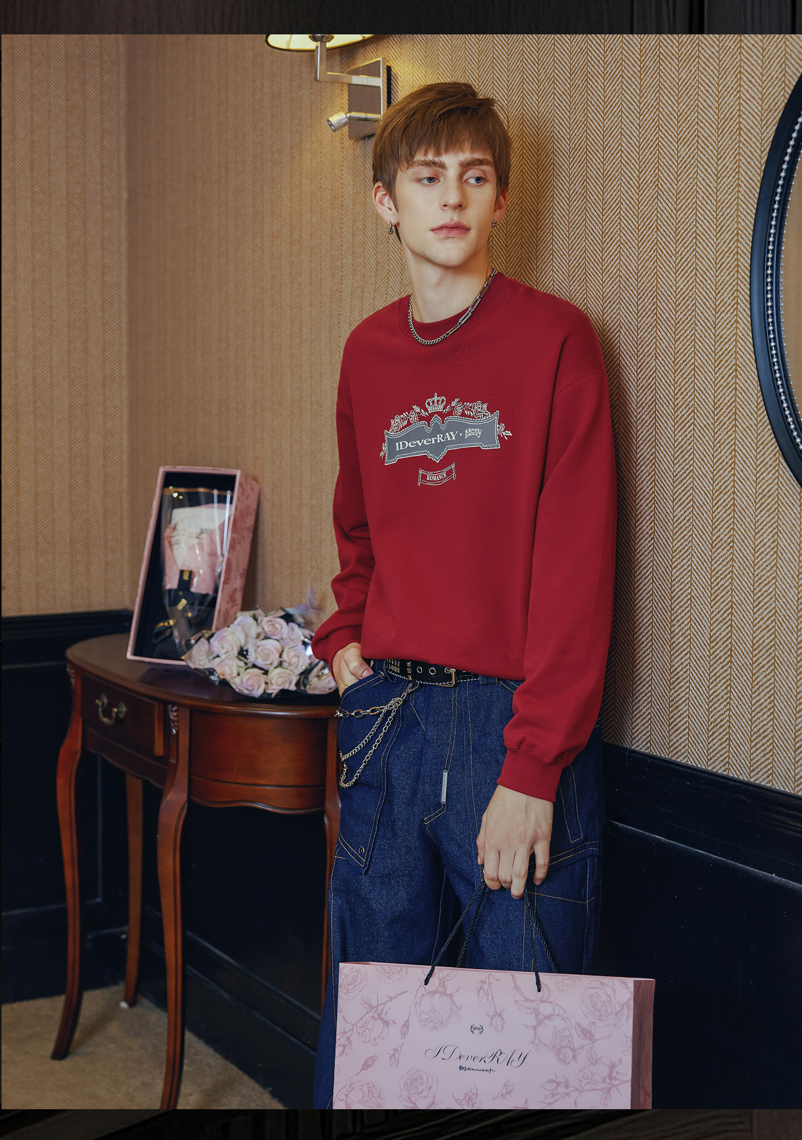 IDEVERRAY【陈立农同款】圆领红色长袖卫衣皇冠印花男女同款上衣