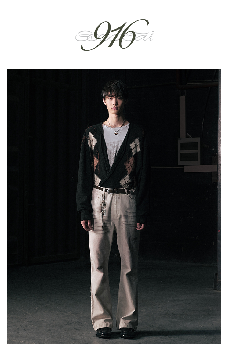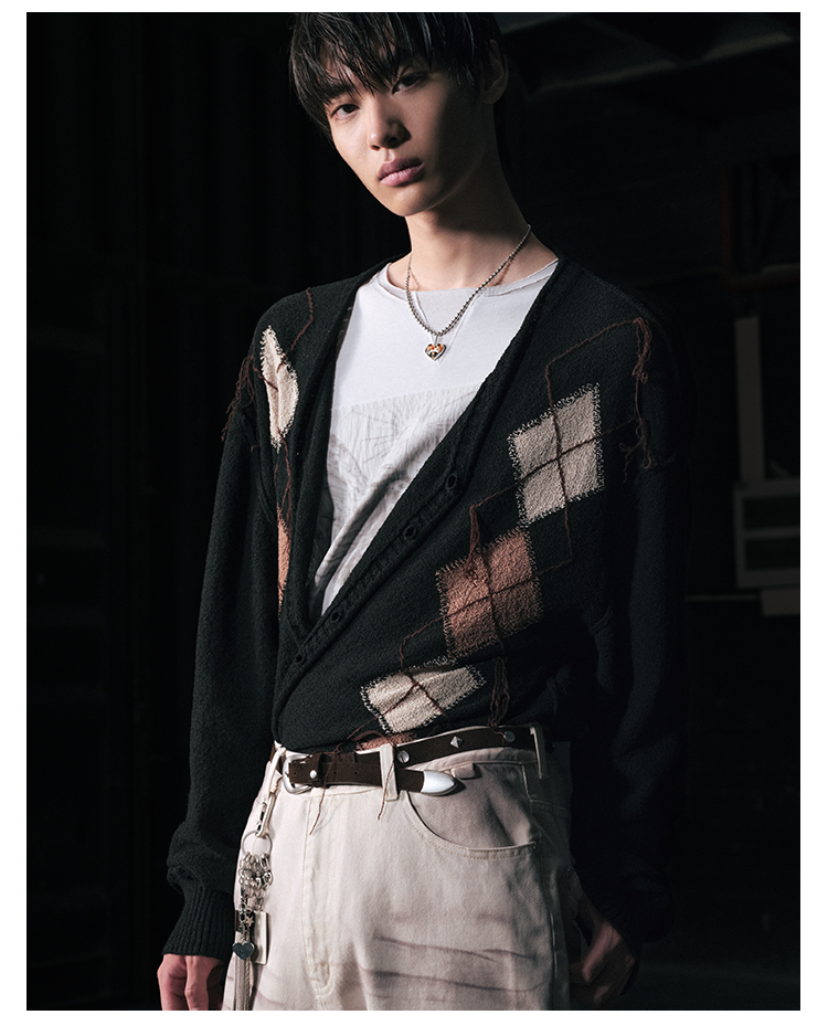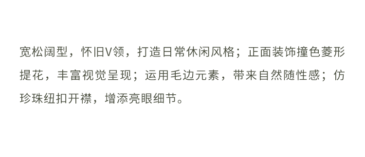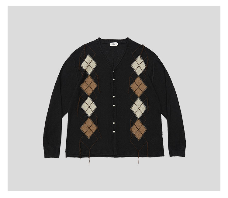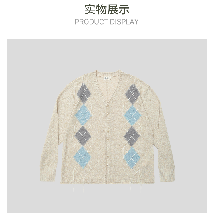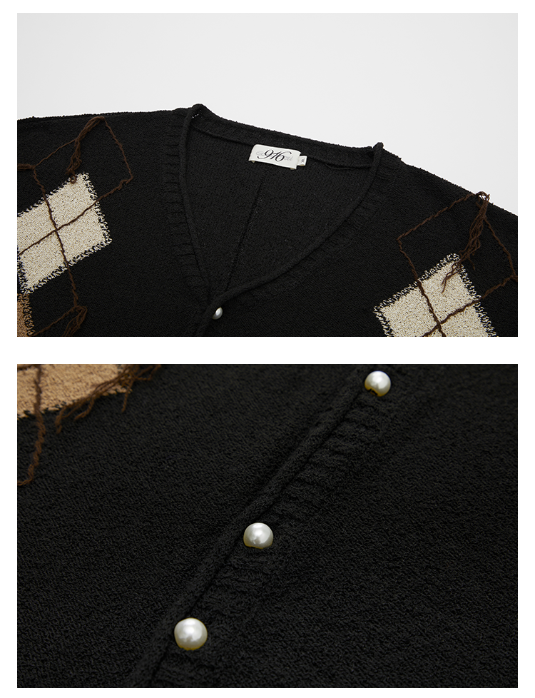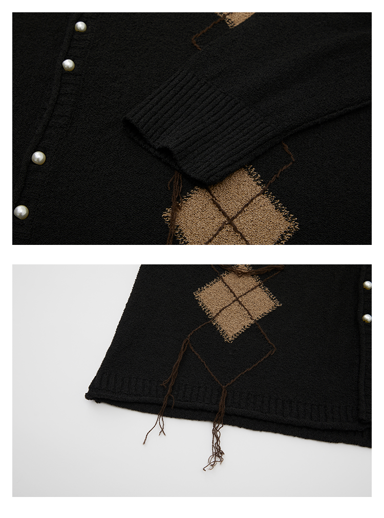 GOODBAI 916 菱形撞色提花毛边仿珍珠扣针织开衫