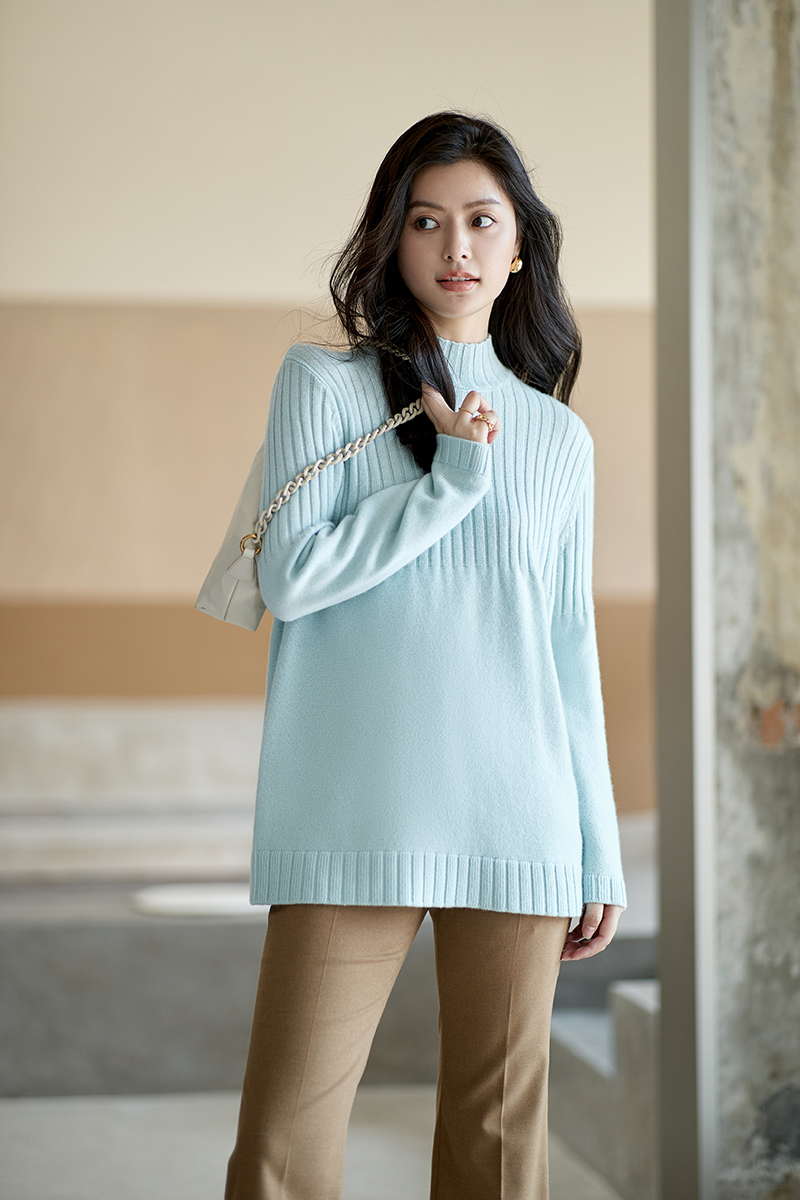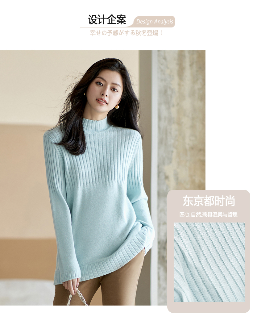 23区日系秋季通勤直筒羊毛羊绒混纺半高领毛衣针织毛衫商场同款