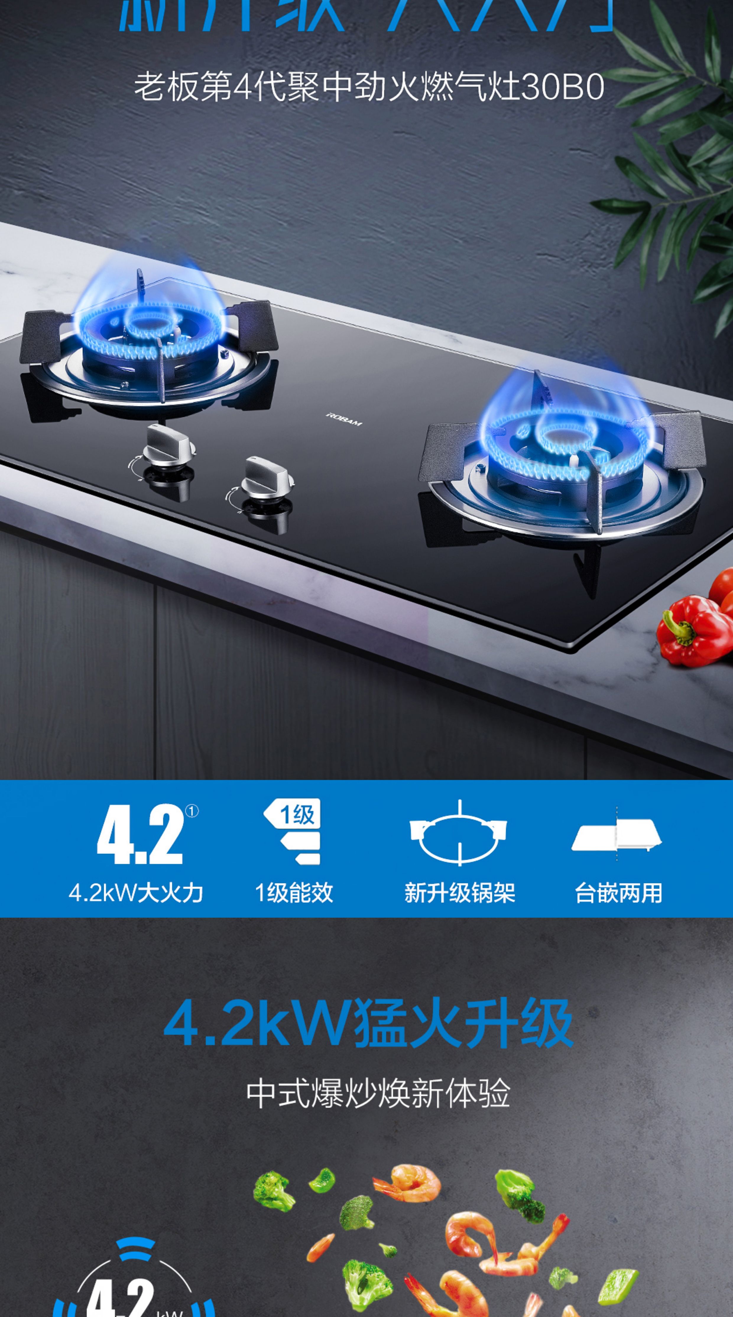 老板60X3+30B0家用欧式经典17m³烟灶套装租房换装优选新升级30B0
