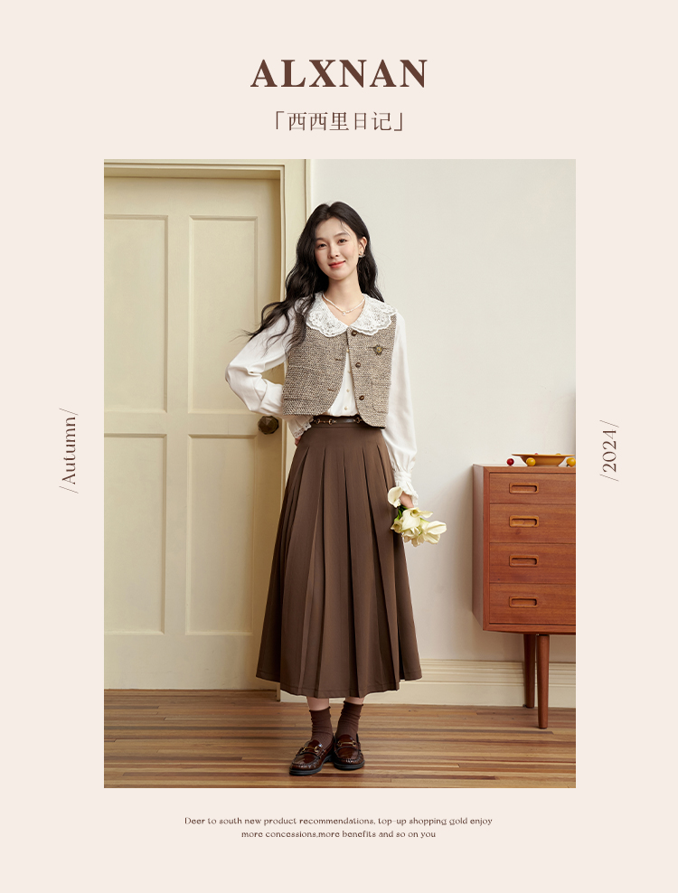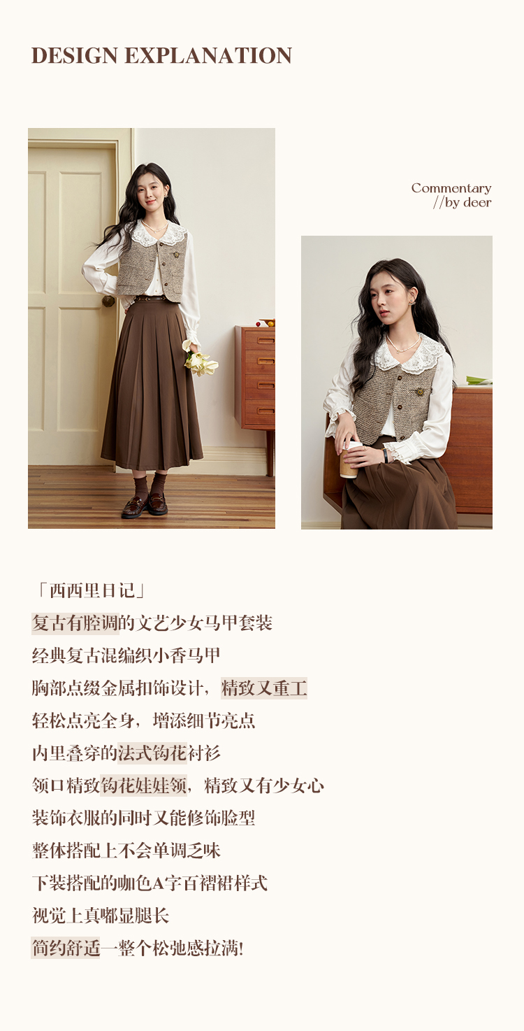【6折秒杀】鹿向南「西西里日记」法式小香风时尚马夹半身裙QYM002213