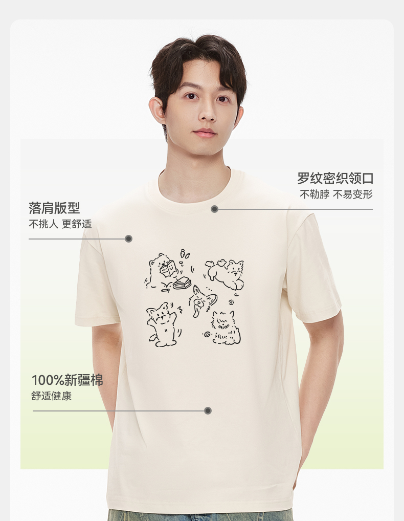 「棉的美学」休闲圆领短袖T恤夏季时尚宽松纯棉情侣同款印花上衣
