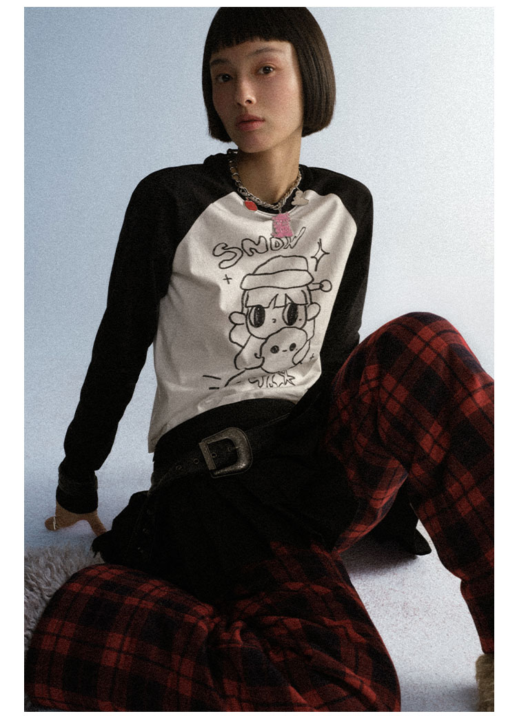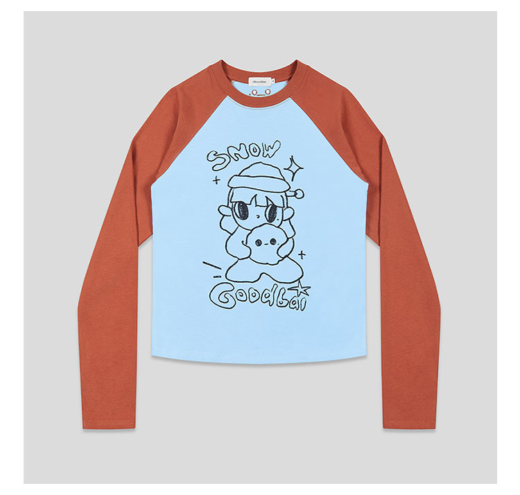 GOODBAI GOODEES滚雪球手绘图案印花图案插肩长袖T恤