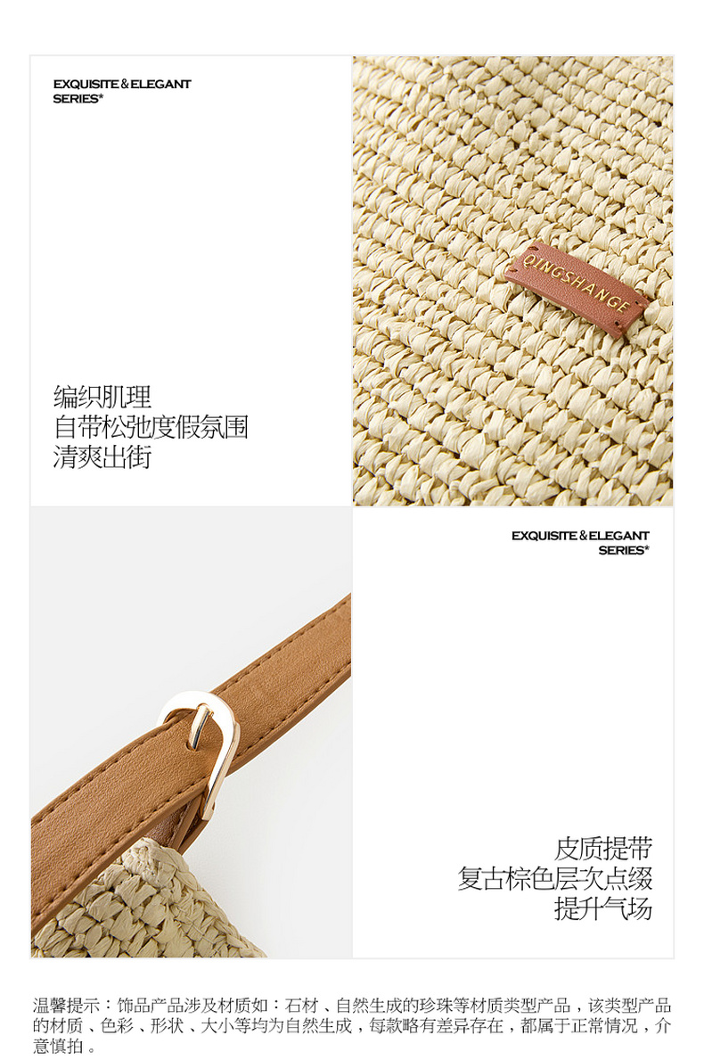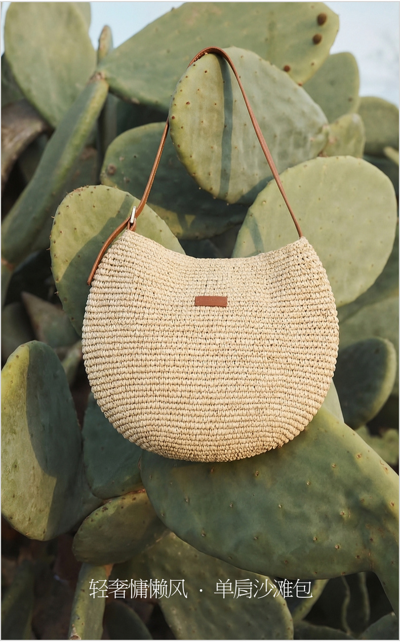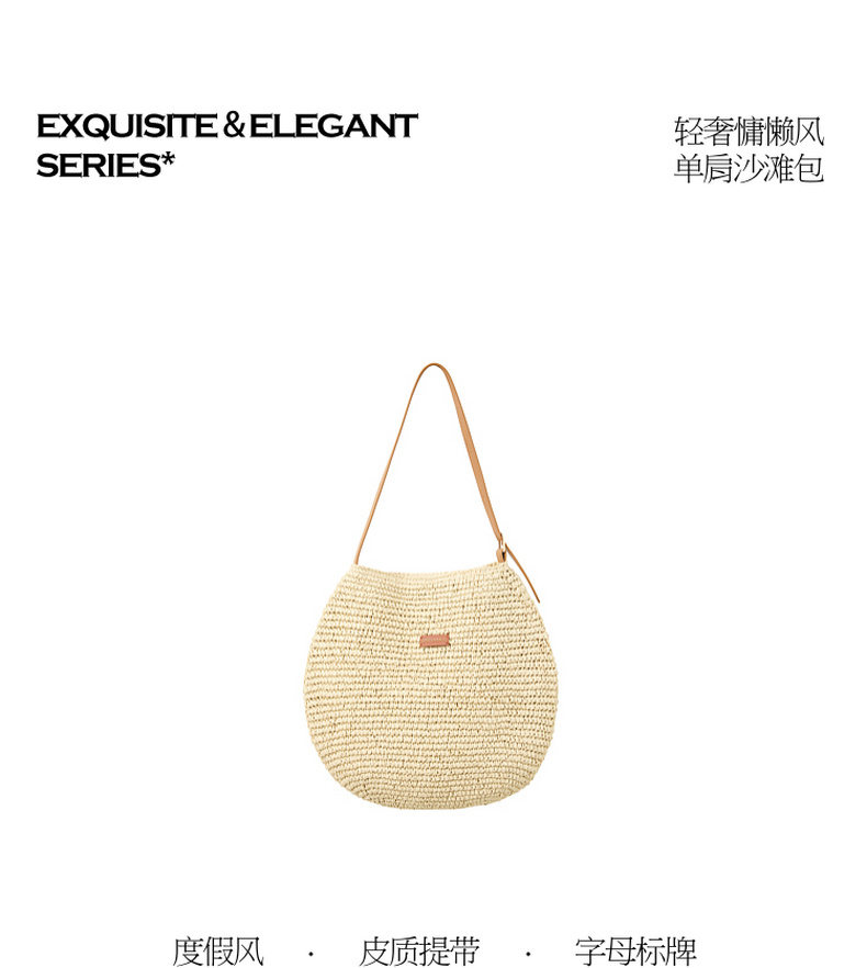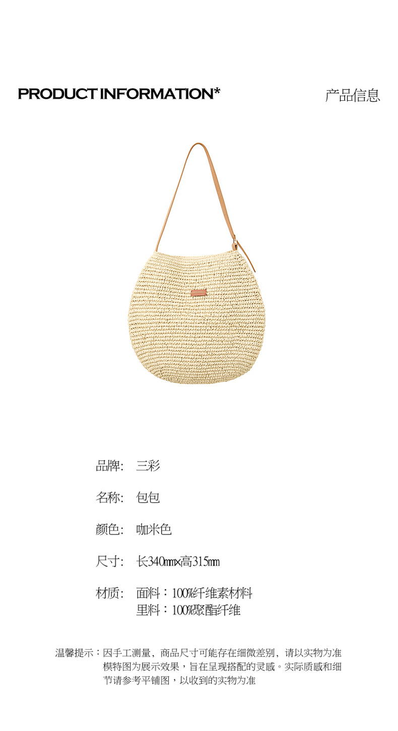 三彩2026新款单肩手提大容量包包通勤圆形时尚小众编织度假个性女