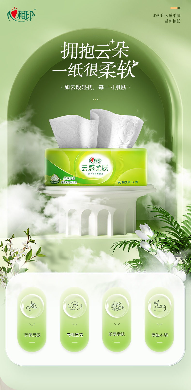心相印 纸巾 DT17090云感系列90抽×10包三层立体压花塑装纸面巾10包装