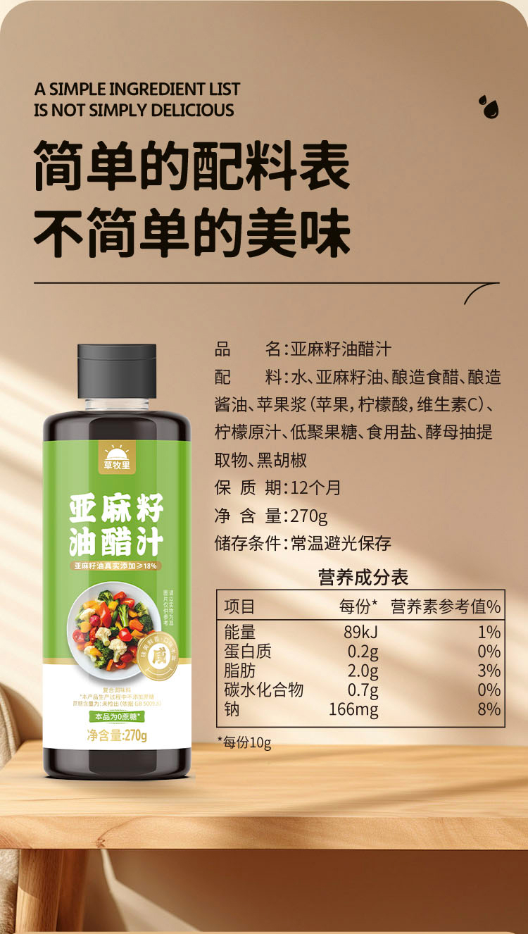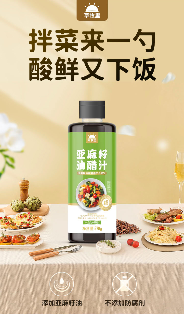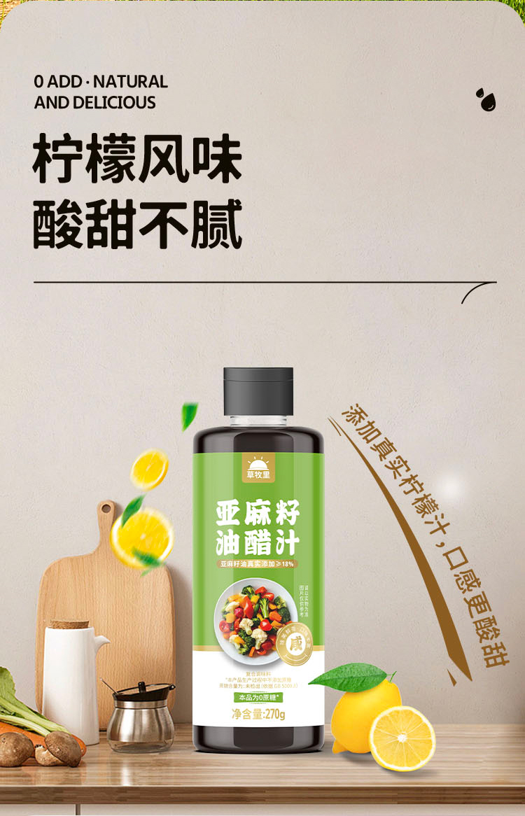 【限时秒杀】【买4赠2到手6瓶】草牧里 亚麻籽油醋汁 270g/瓶 拌菜来一勺酸鲜又下饭