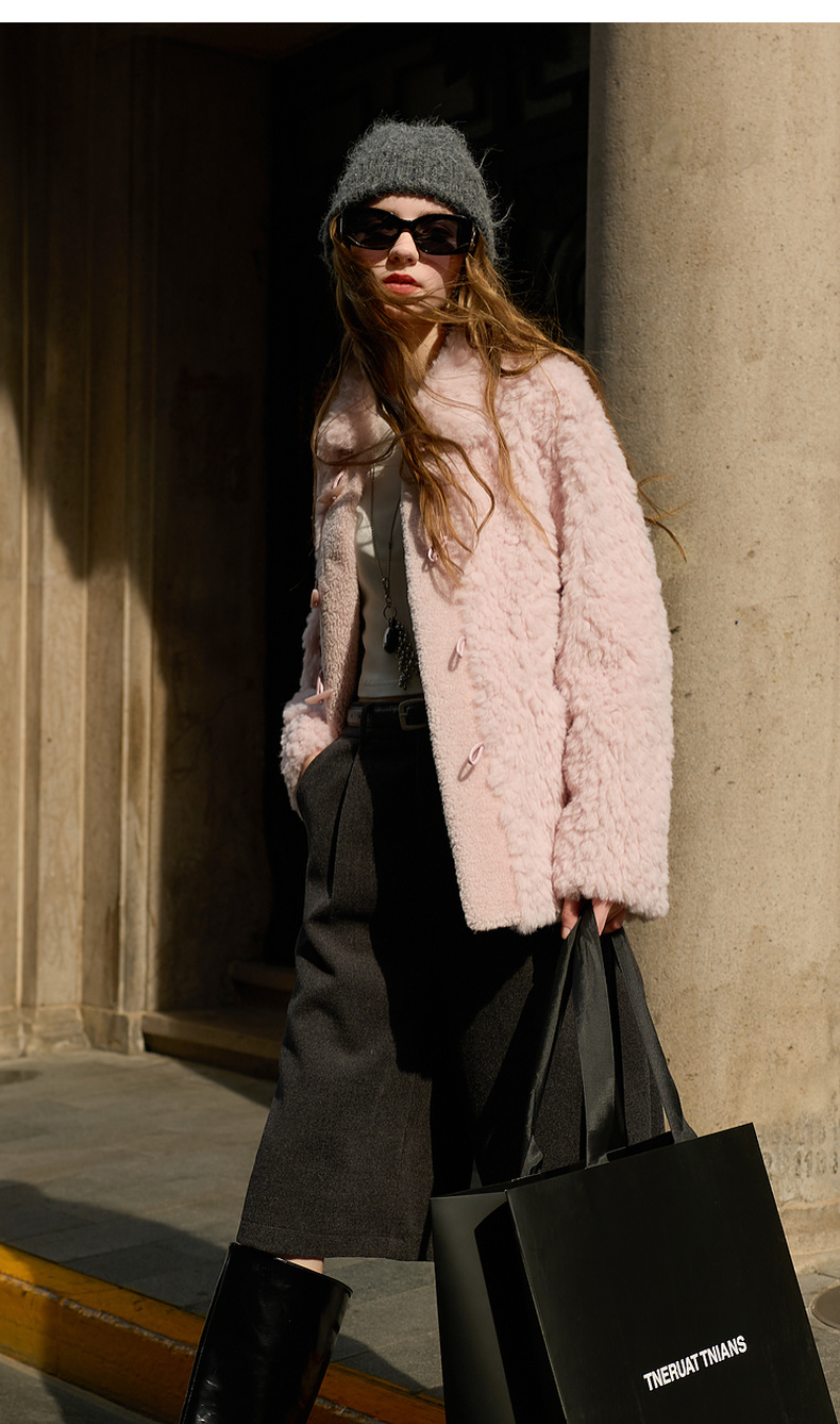三彩2025冬季新款环保皮草翻领毛毛仿皮草外套宽松牛角扣M