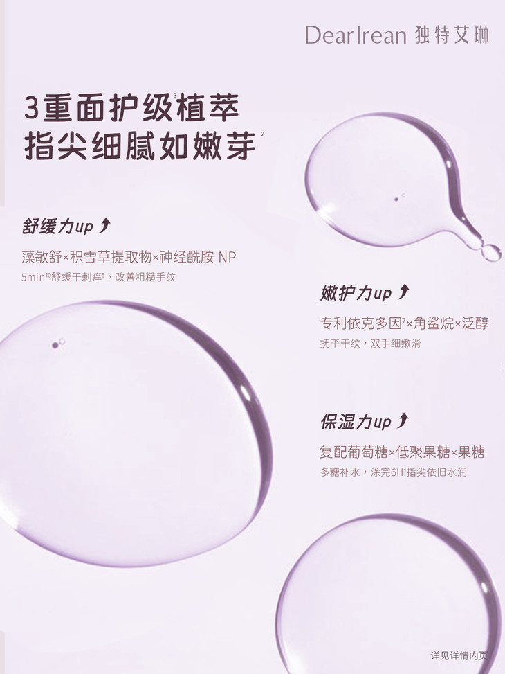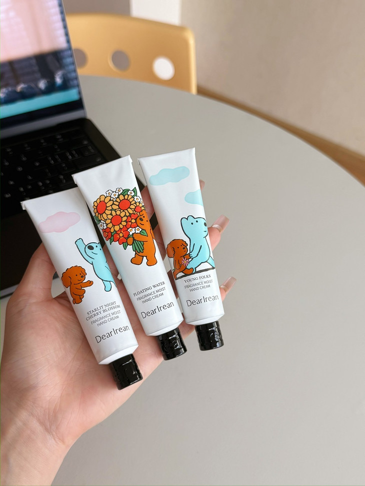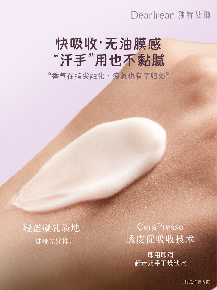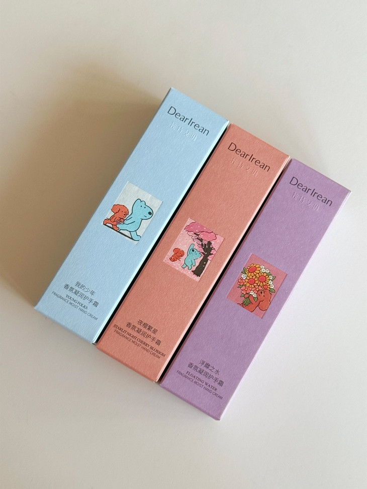 【手部香氛体验礼盒】 礼盒清单: 浮靡之水护手霜10ml*2 夜樱繁星护手霜10ml*2 我的少年护手霜10ml*2 联名周边贴纸*1 质地:水润奶霜质地、流动性强、轻盈不粘腻、易吸收 滋润度:通用款,适合任何肌肤(干皮保湿,油皮清爽) 使用方法:取适量本品均匀涂抹于洁净双手,轻轻按摩揉搓至吸收即可。 适用人群:手部干燥粗糙、皮肤黑黄、老茧干纹、倒刺脱皮、甲床受损等有手部肌肤问题或者对手部肌肤有高要求的精致人群