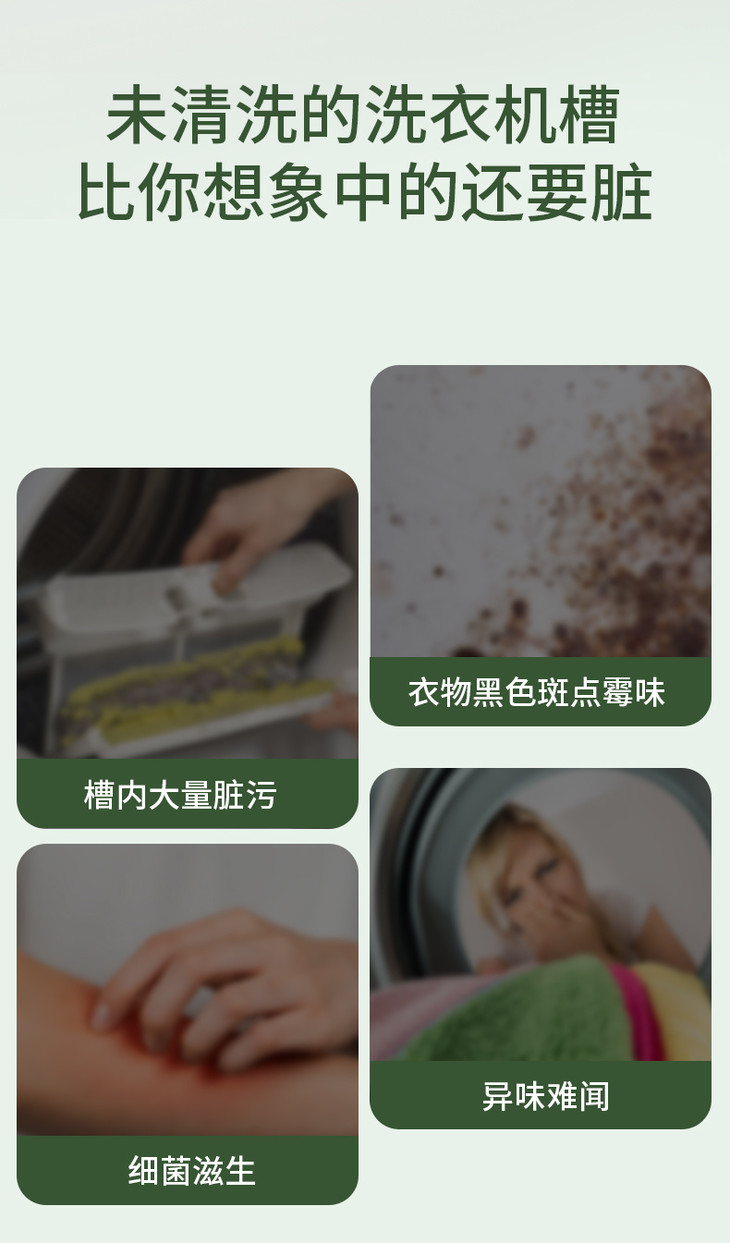 “霉菌+洗衣液残留+纤维垢=洗衣机槽‘陈年老泥’!”