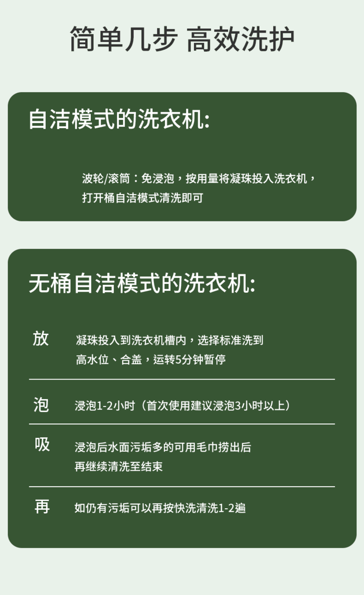 evershine清洁小贴士: 洗衣机清洁频率=衣物干净程度 为保持洗衣机内胆清洁,EVERSHINE5D配方入清洗周期后建议每月清洗一次即可 超一年未清洗:建议在标准洗连续清洗2次(第二次使用1-2颗) 如水量不到中水位,可从洗衣液盒处加入温水 每次洗完: 开门通风30分钟,避免潮湿发霉 擦拭密封圈(滚筒式),防止黑垢堆积 🌧 特殊季节护理 梅雨季: 增加清洁频率(2周1次) 洗完立刻晾晒,避免异味 ❄ 冬季: 定期检查进水管防冻裂 🚫 禁止洗涤: 沾汽油的衣物(易燃!) 地毯/带硬物装饰的衣服(伤内筒)