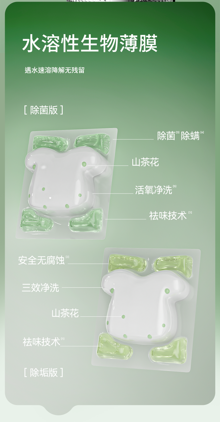 规格: ①5D凝珠山茶花除菌版(30g*12颗)*1桶+5D凝珠除垢版(30g*12颗)*1桶+赠毛巾*1条 ▫植物清洁专家 ▫功能多效合一 适用范围:洗衣机清洁(波轮型、滚筒型、双缸型、儿童洗衣机)