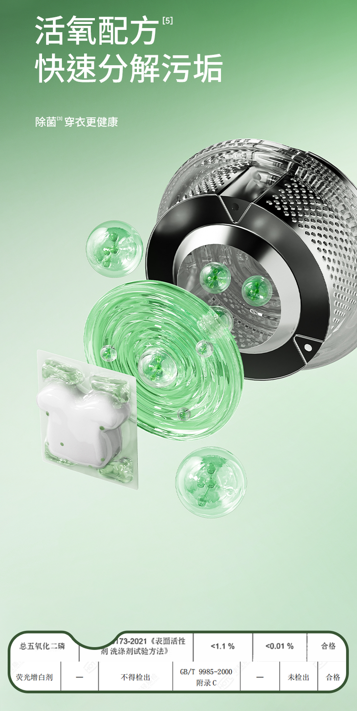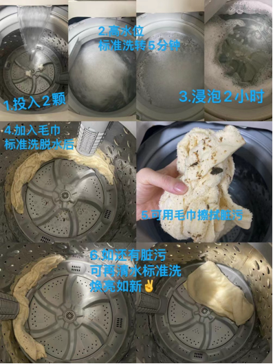 清洗时不用浸泡 按照正常的洗涤模式就可以 只要是水流到的地方都能洗到 不留死角清洁力还强 陈年老垢都给你洗掉 它还有99%的除菌率和除霉率 不仅帮你清除污垢 顺便杀个菌、除个霉,一举两得