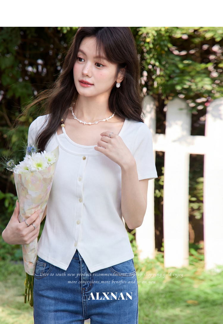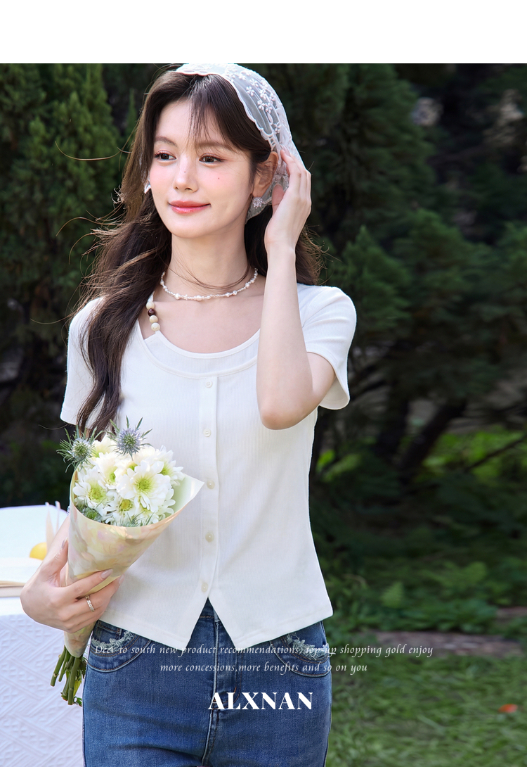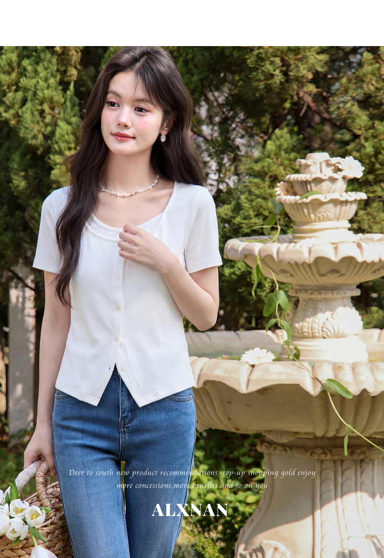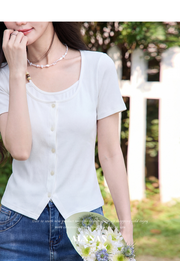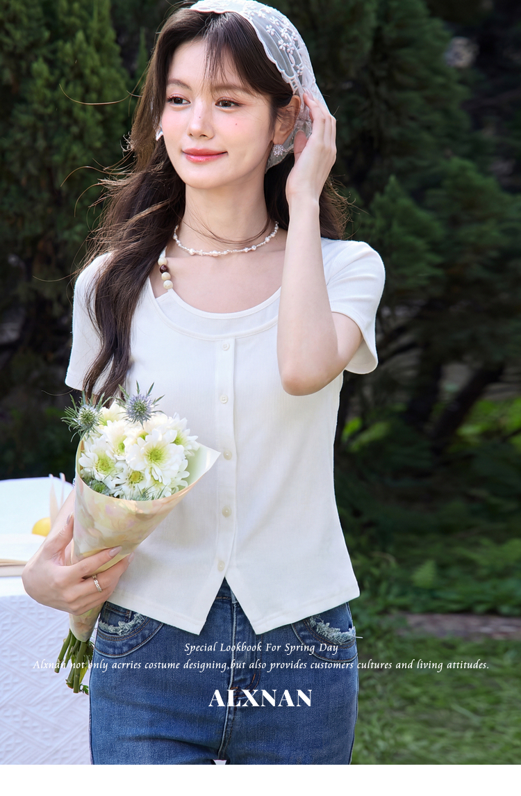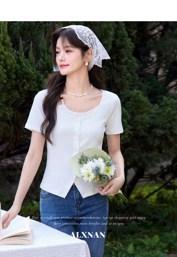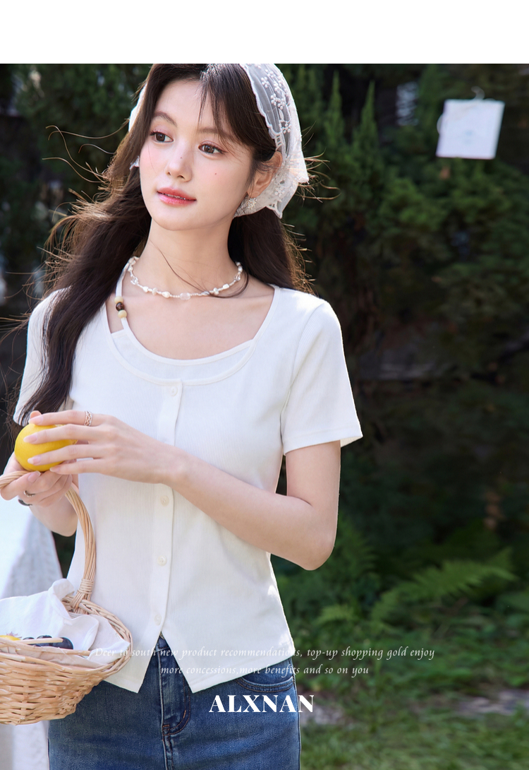 鹿向南【0405/20:00新品前1小时7折限量100件】设计感白色正肩T恤