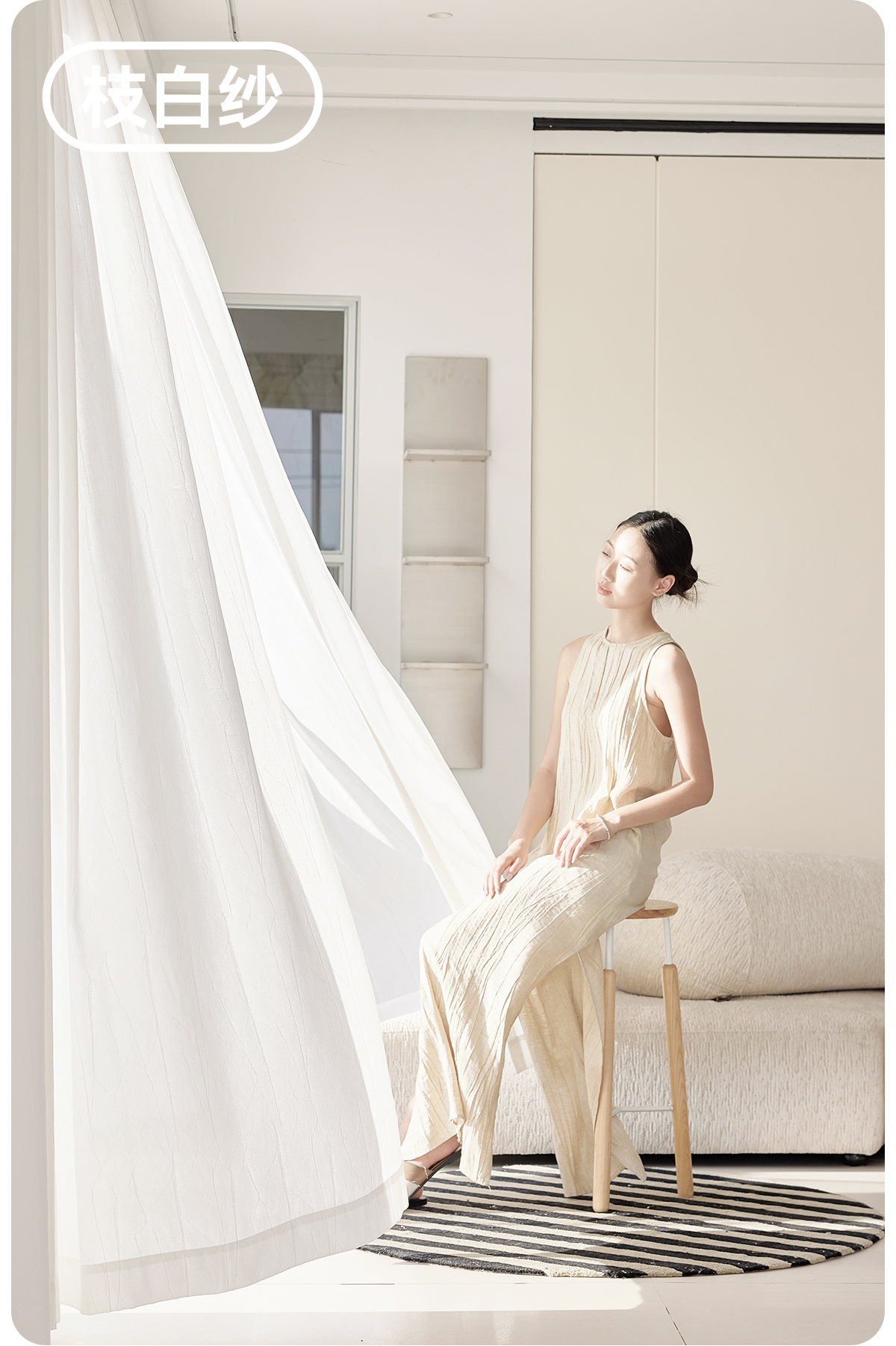 【枝白纱}金蝉简约提花纱