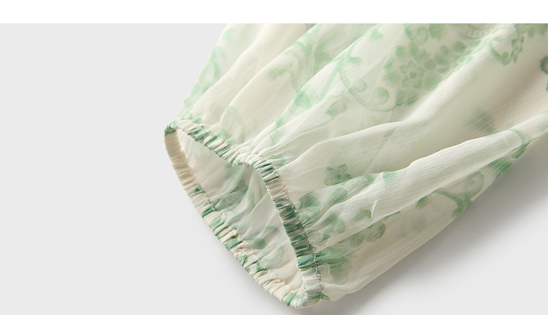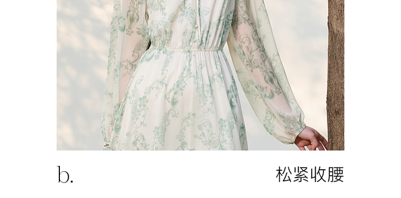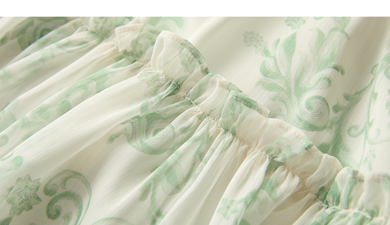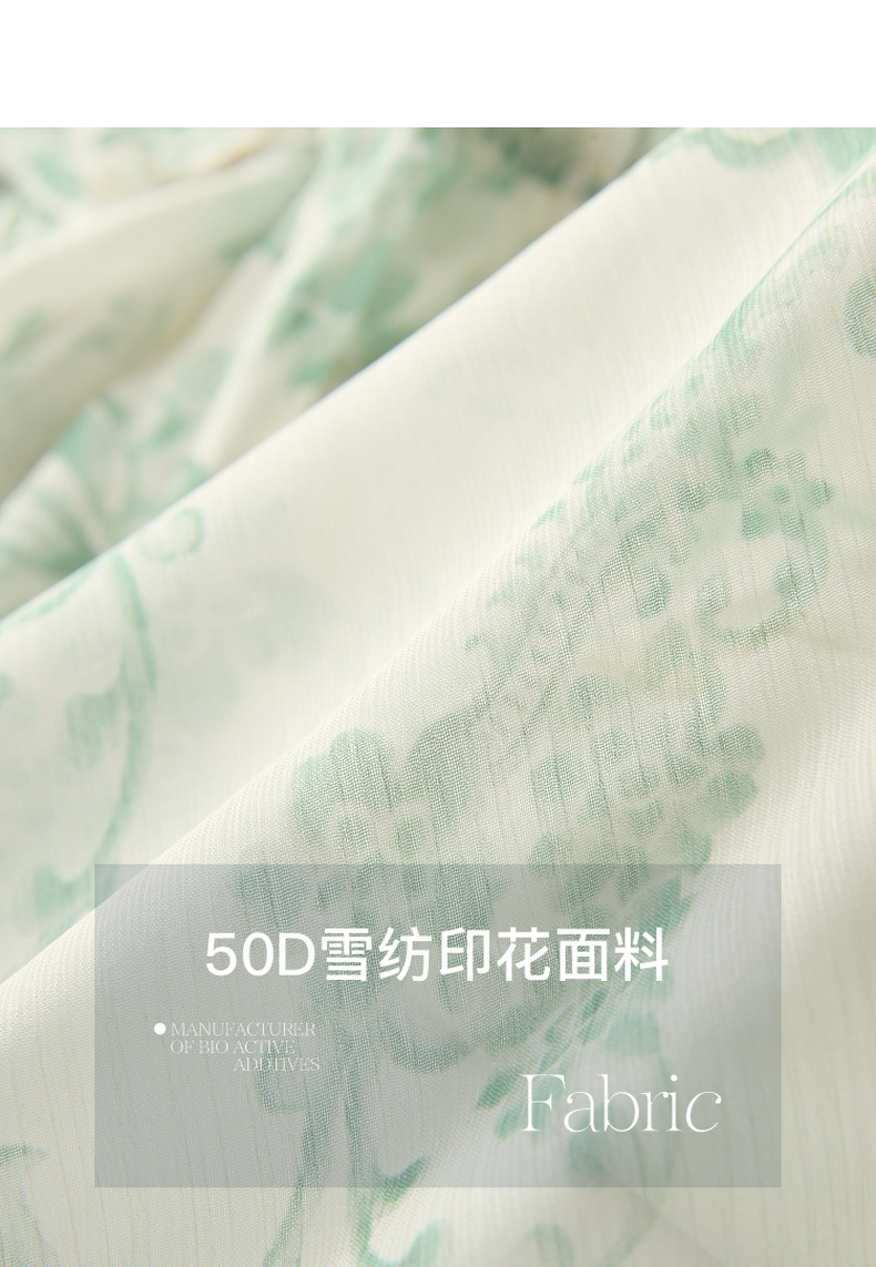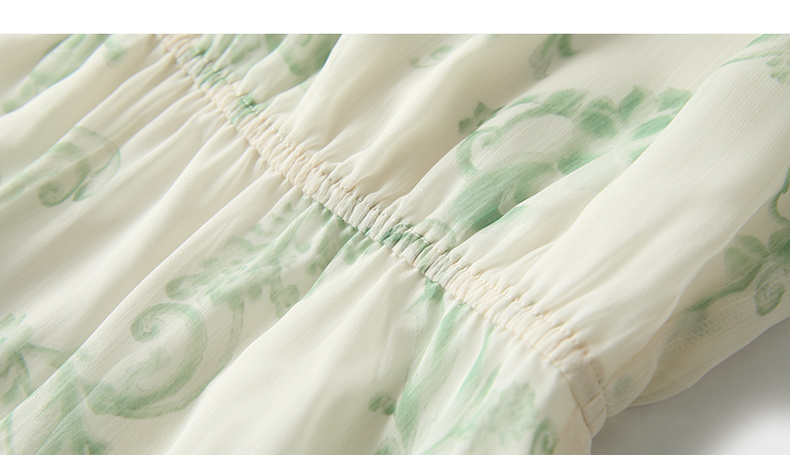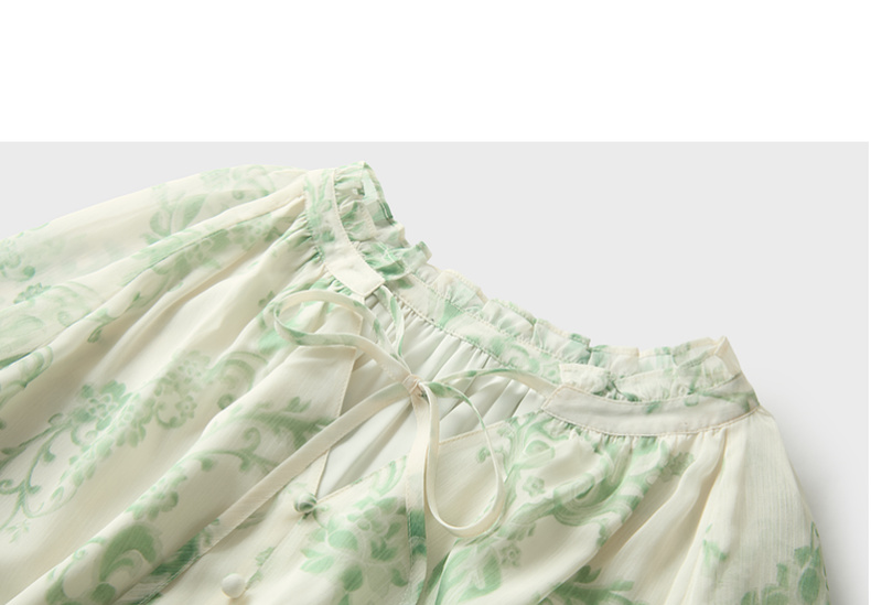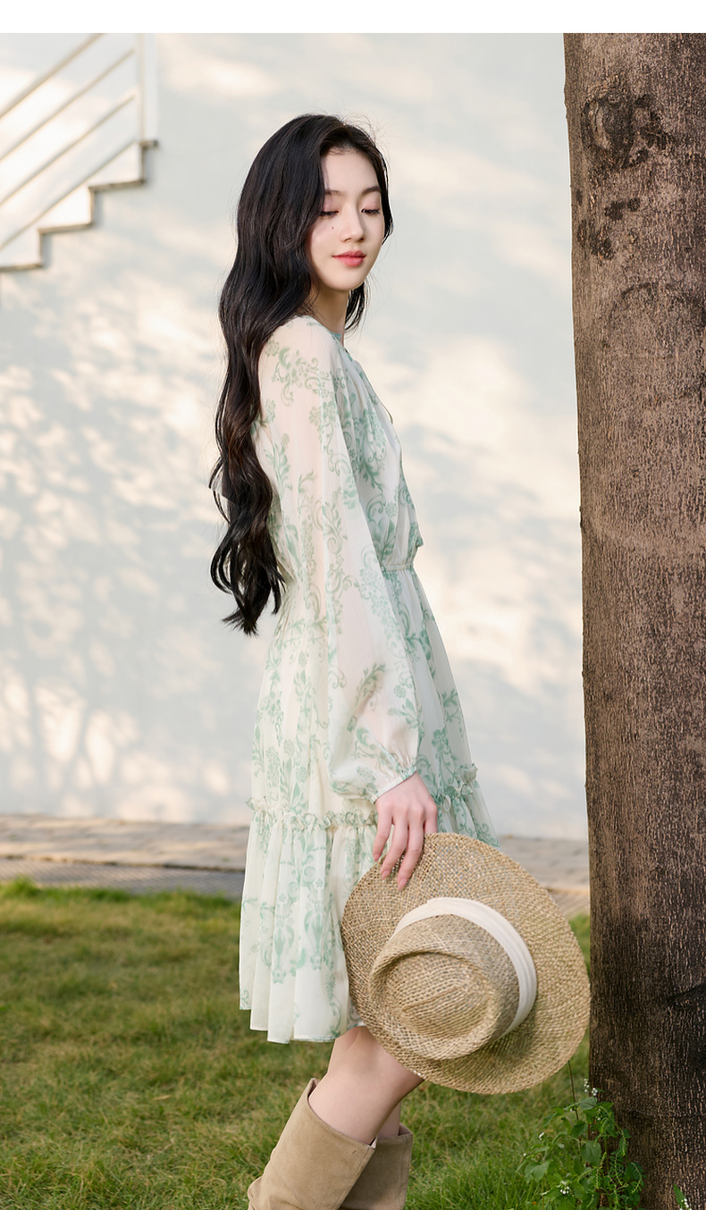 三彩2026春季新款系带V领碎花雪纺裙法式连衣裙A字裙大摆裙S