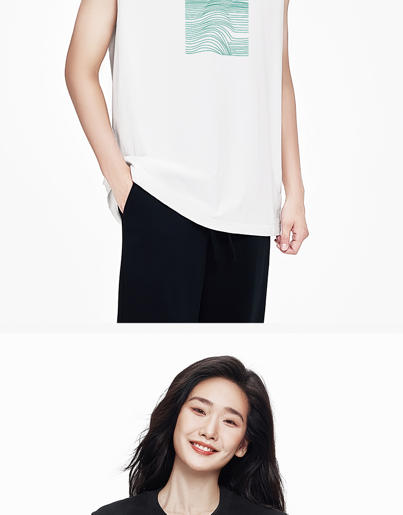 「棉的美学」宽松质感百搭运动背心男印花款夏季健身休闲无袖T恤