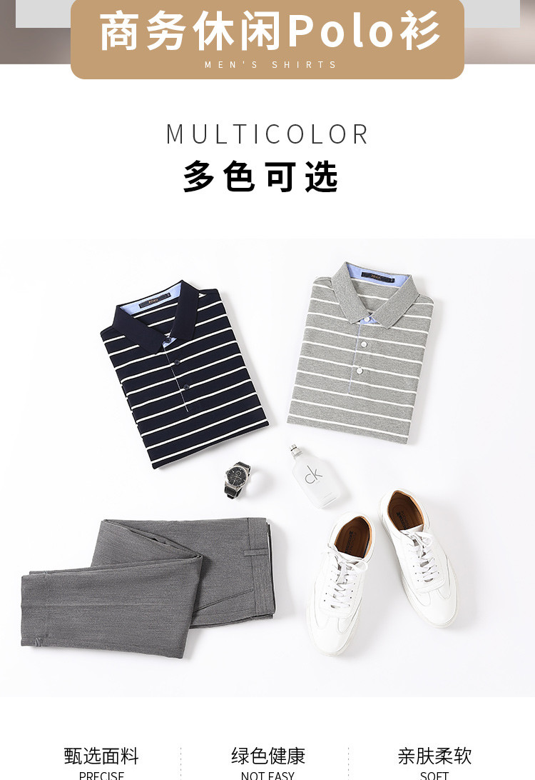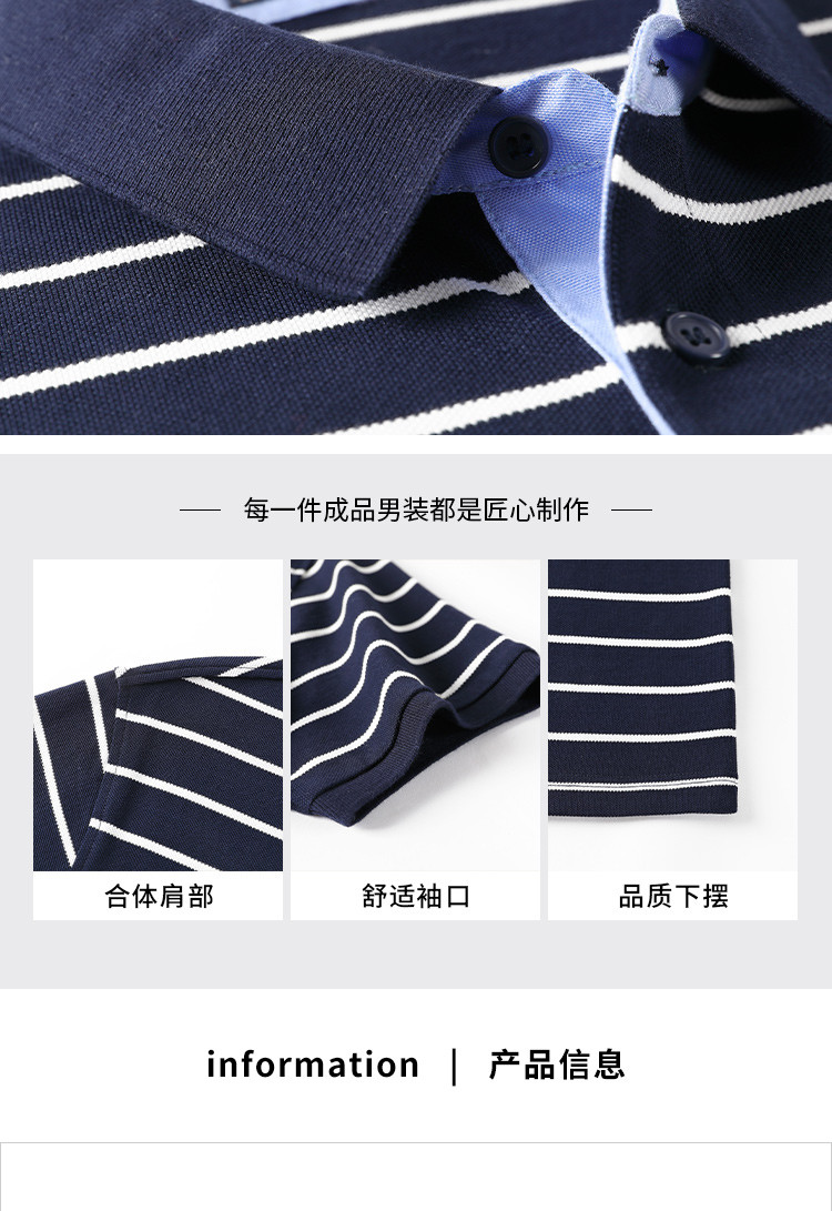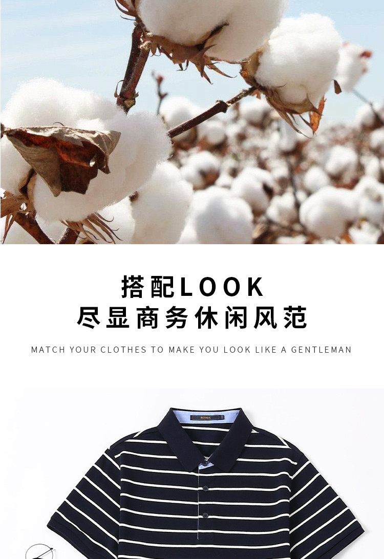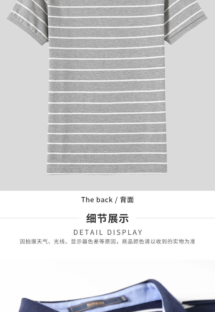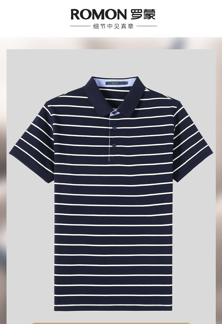 罗蒙夏季新品男士短袖t恤商务通勤纯棉舒适条纹polo衫男