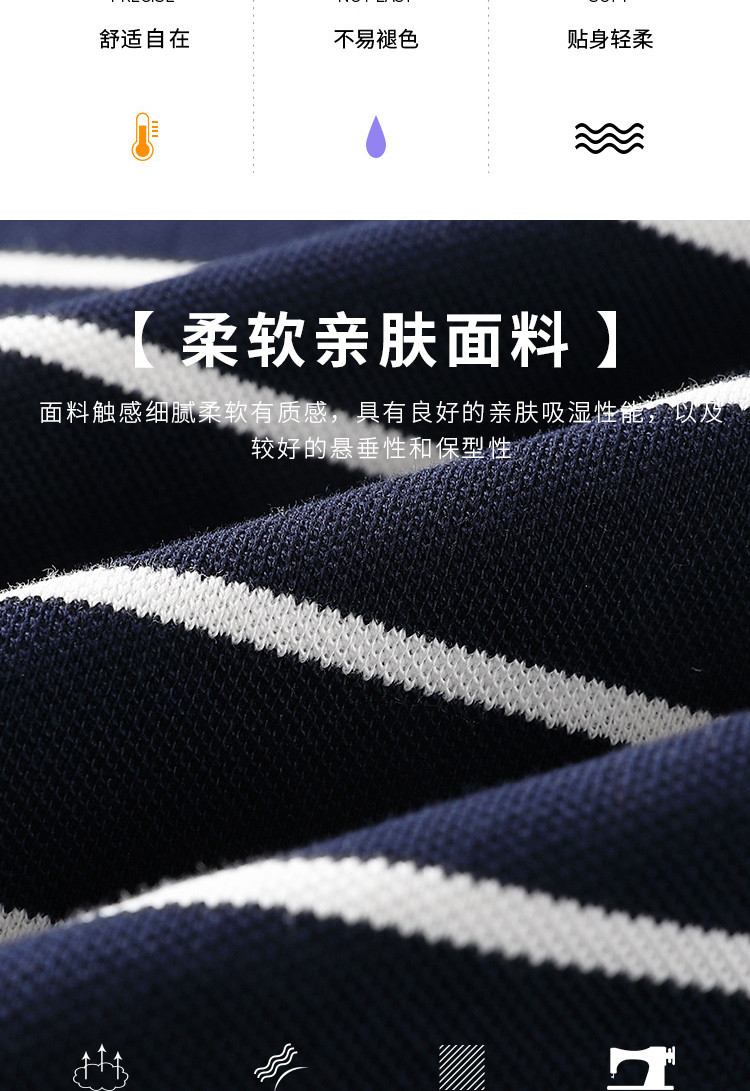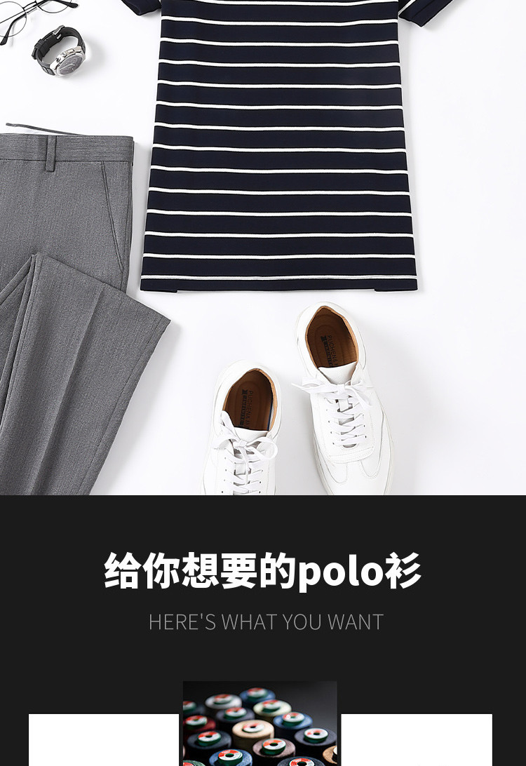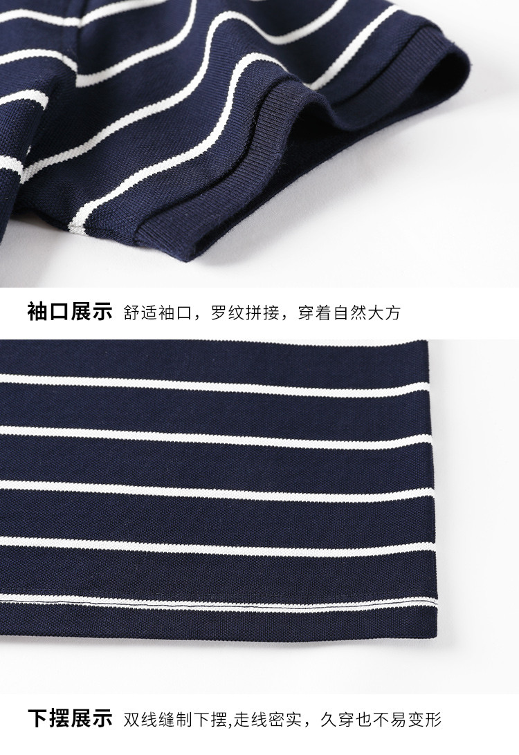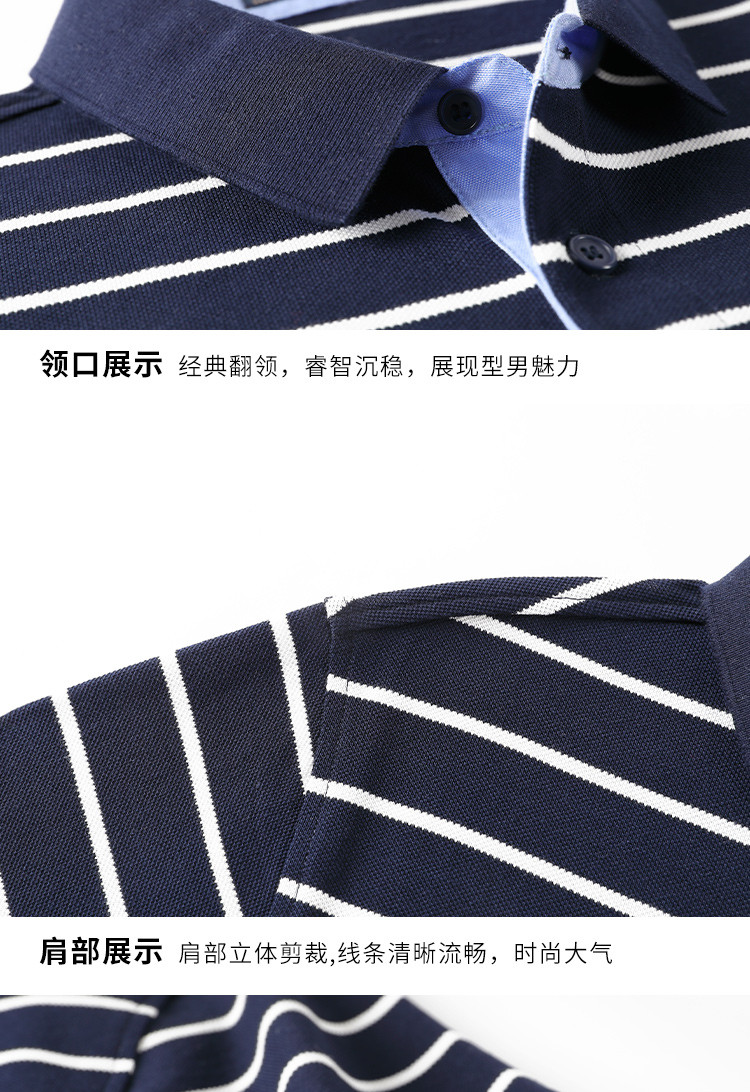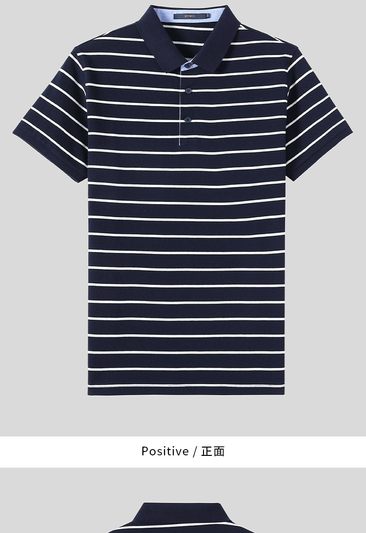 罗蒙夏季新品男士短袖t恤商务通勤纯棉舒适条纹polo衫男