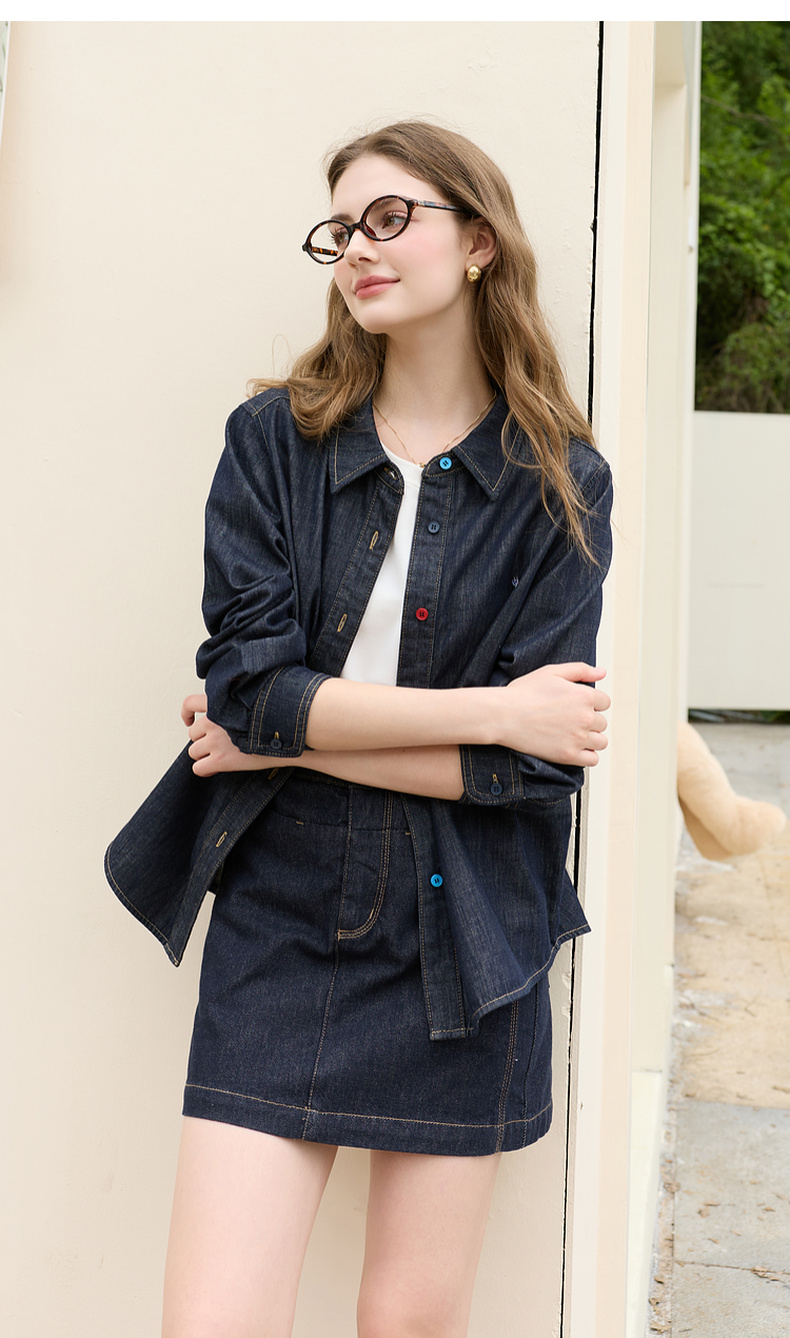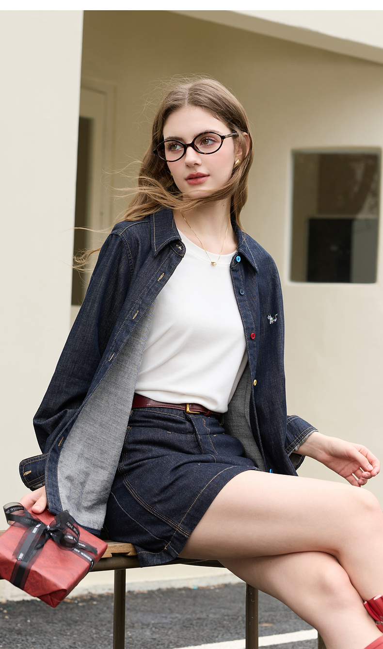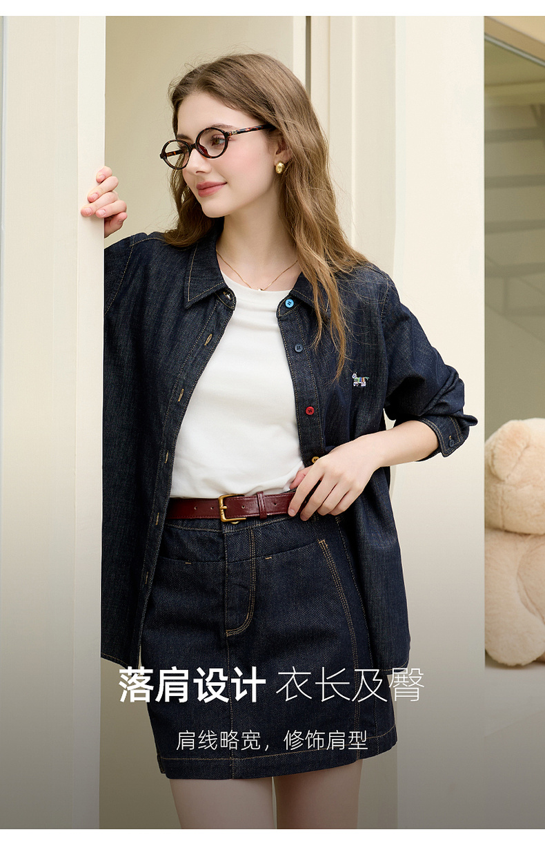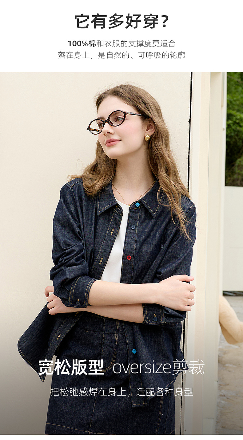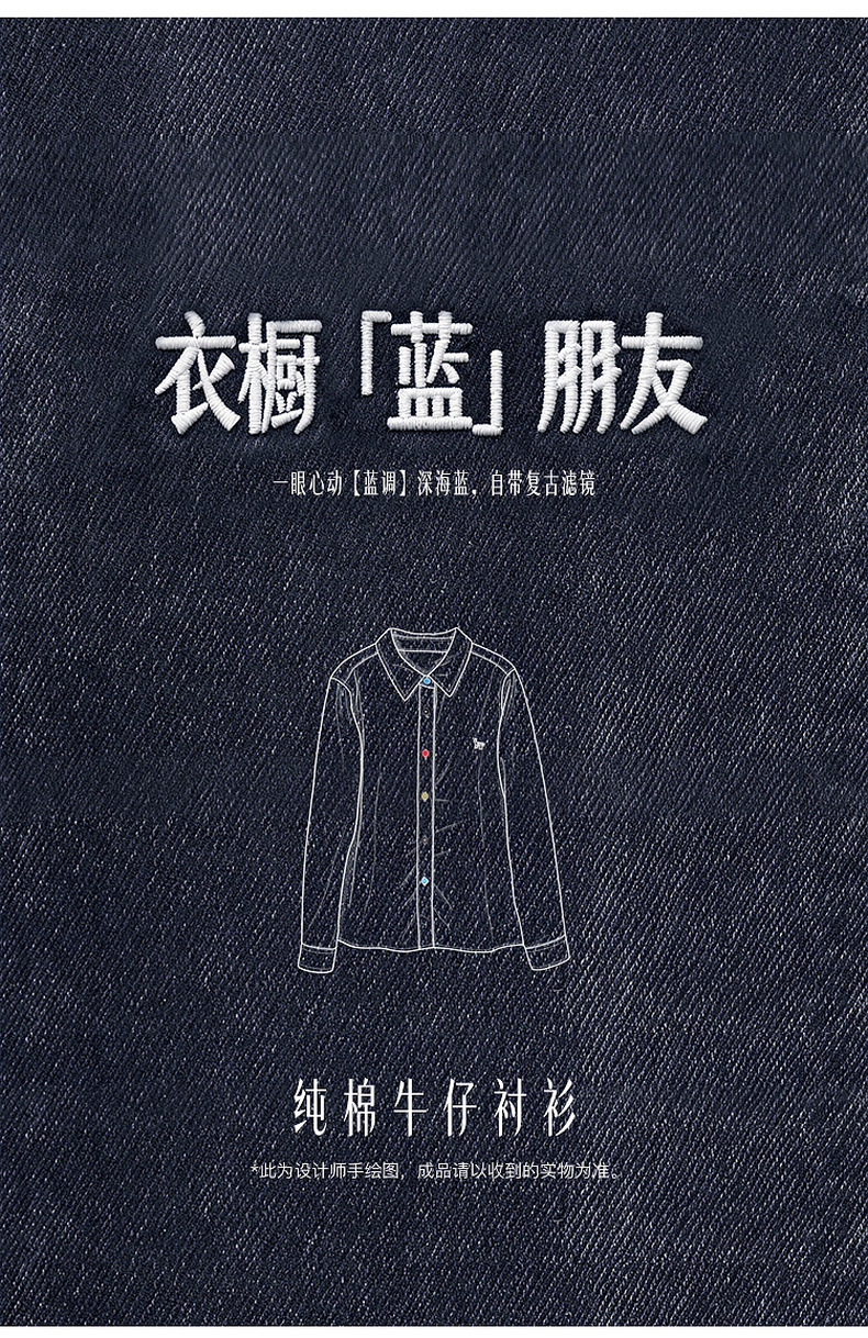【100棉】三彩2026春季新款复古水洗牛仔衬衫宽松长袖衬衣上衣M