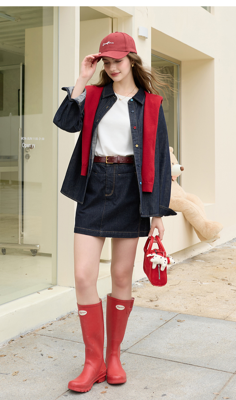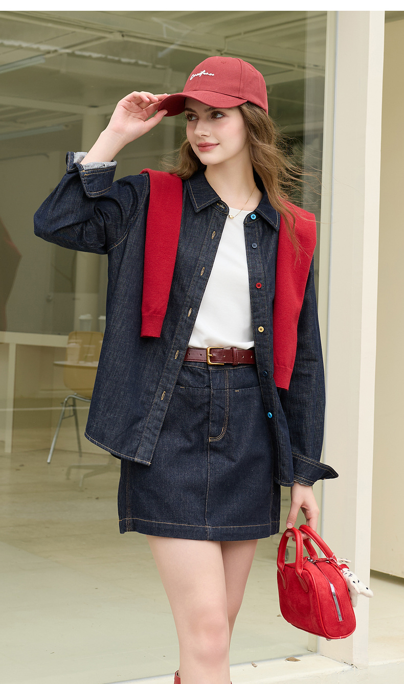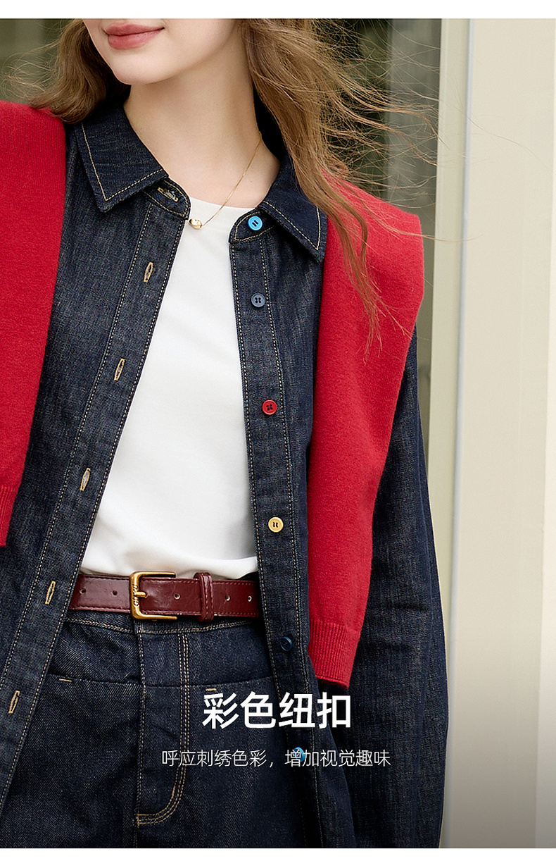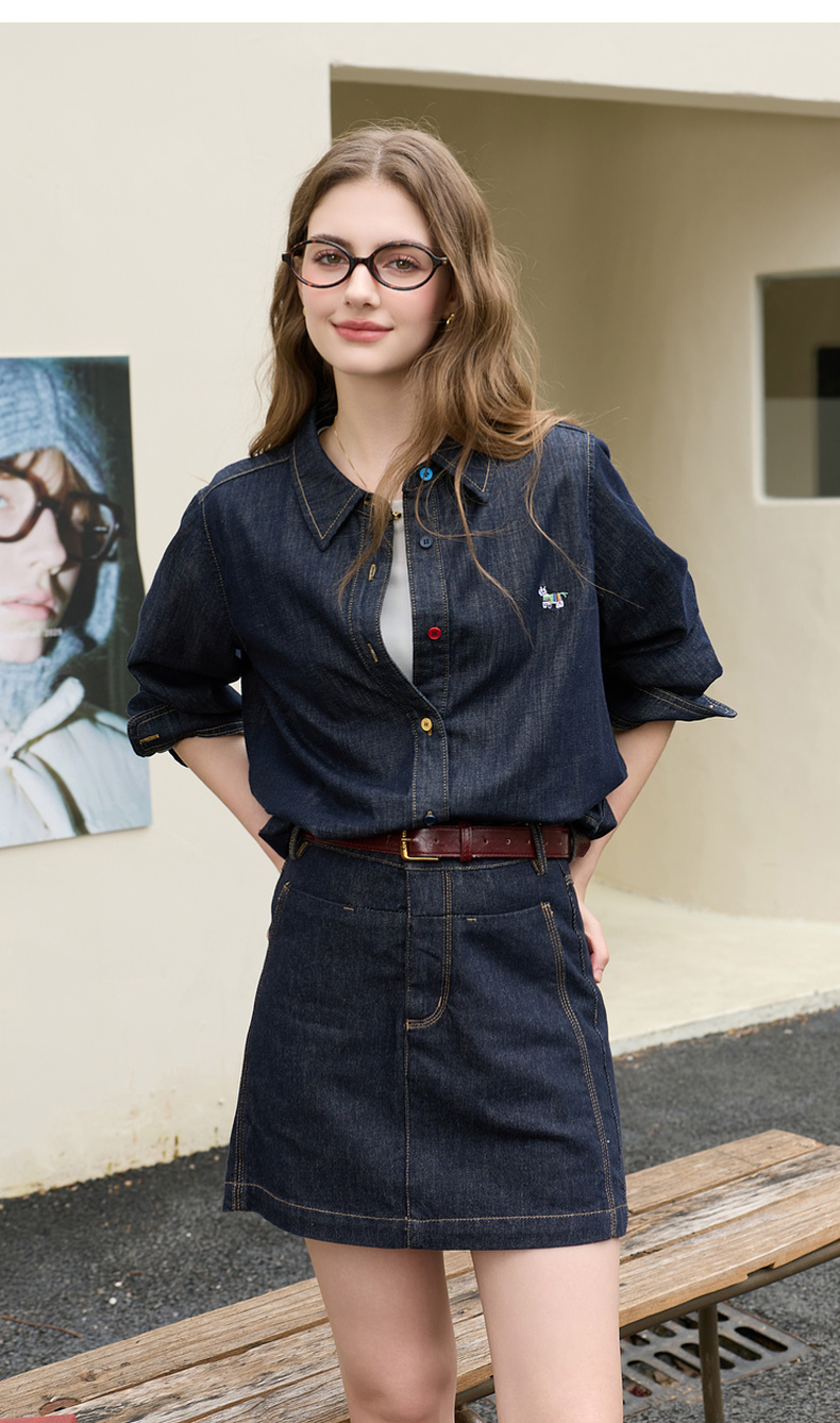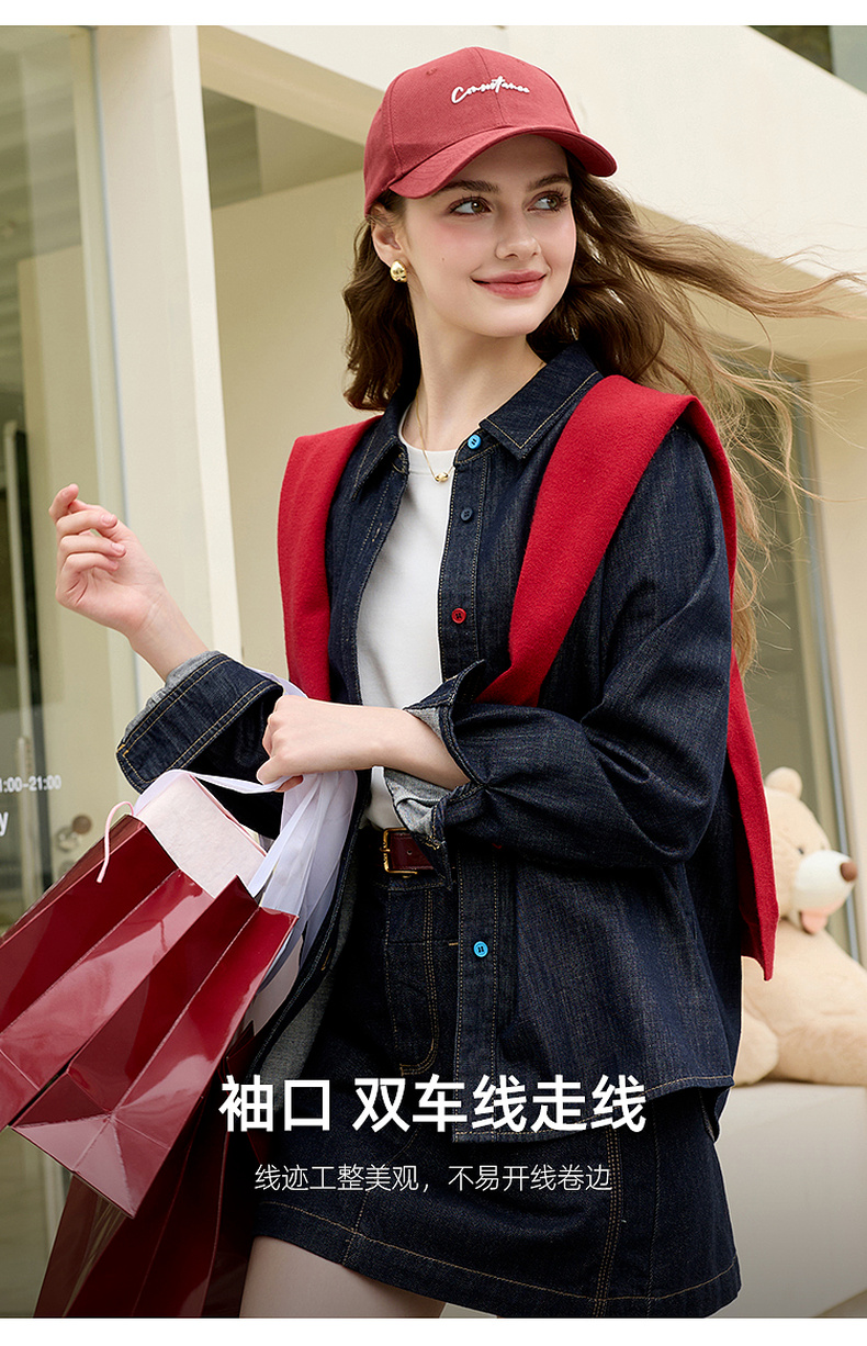 【100棉】三彩2026春季新款复古水洗牛仔衬衫宽松长袖衬衣上衣M