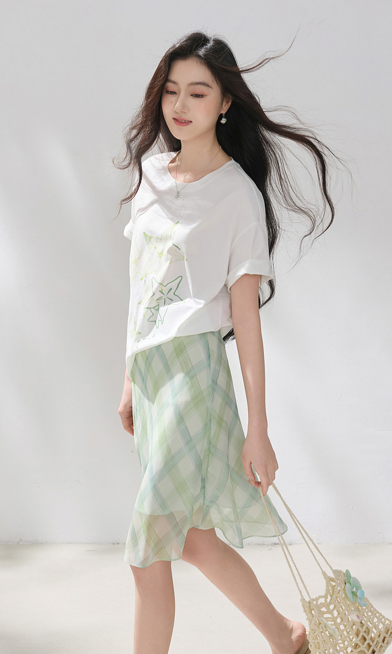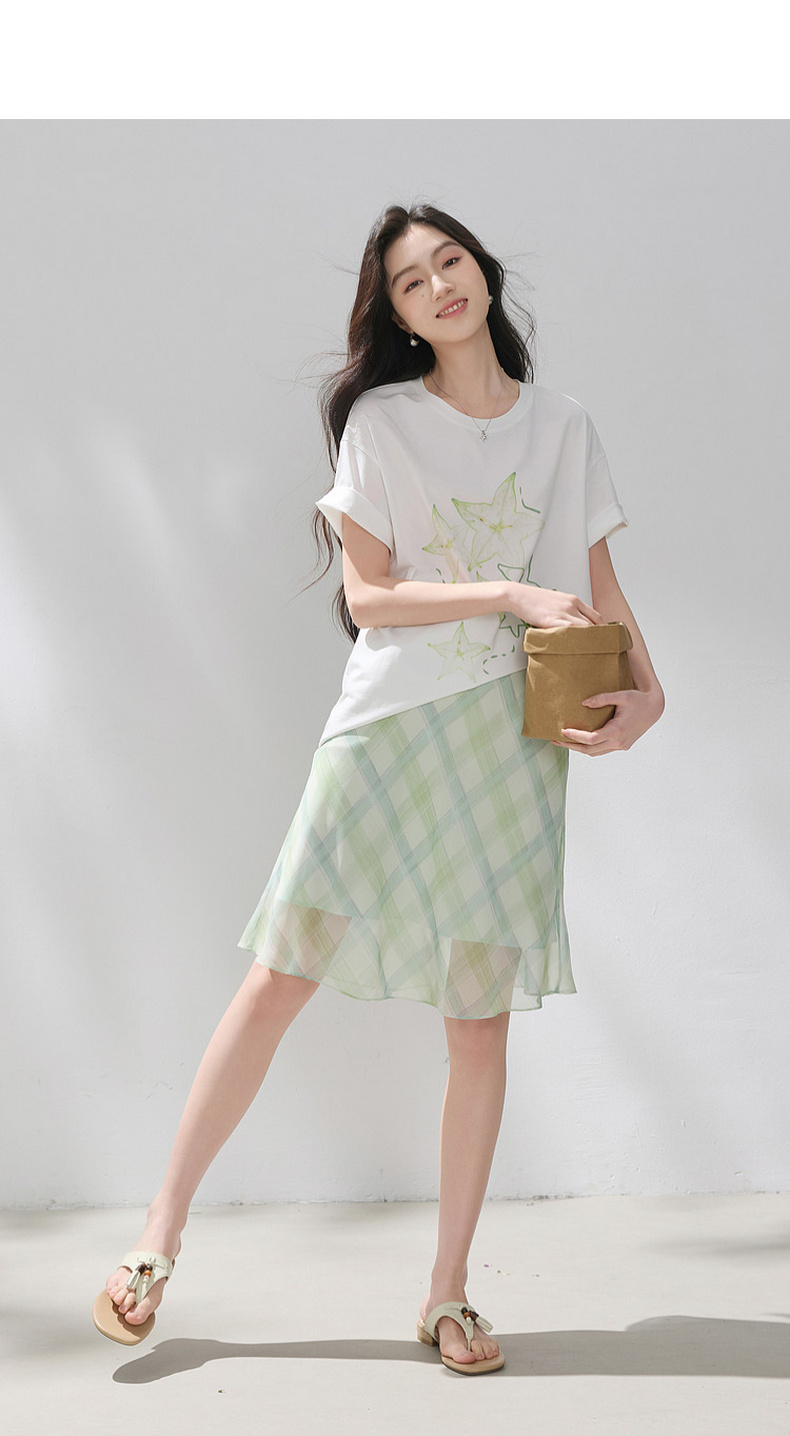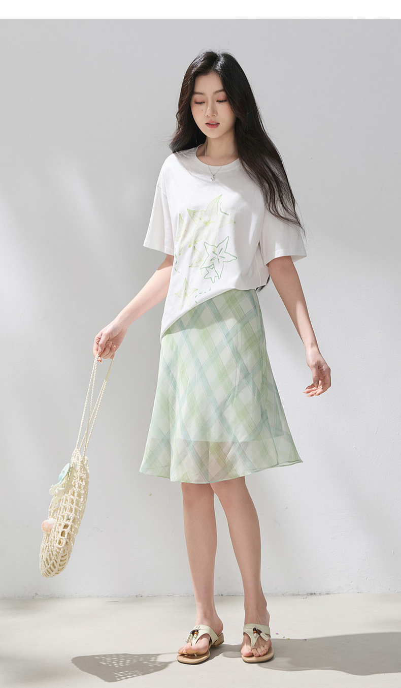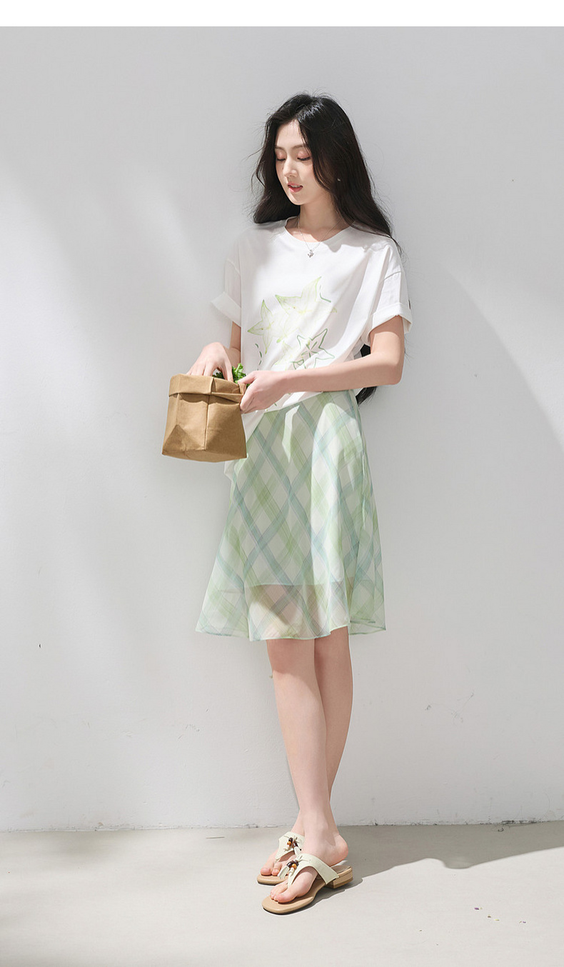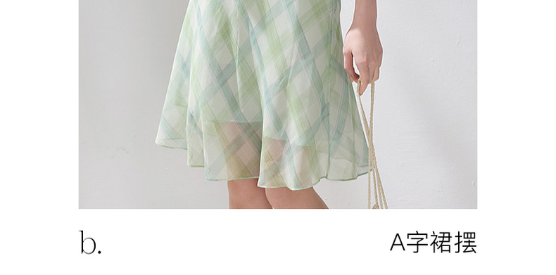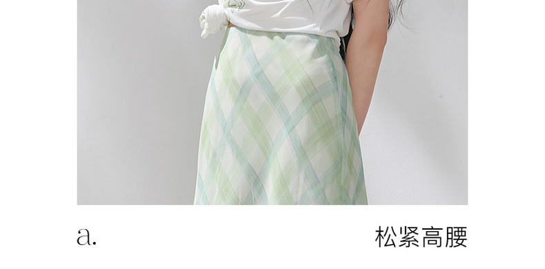 三彩2026夏季新款高腰格纹雪纺裙半身裙A字裙小A字清新度假M