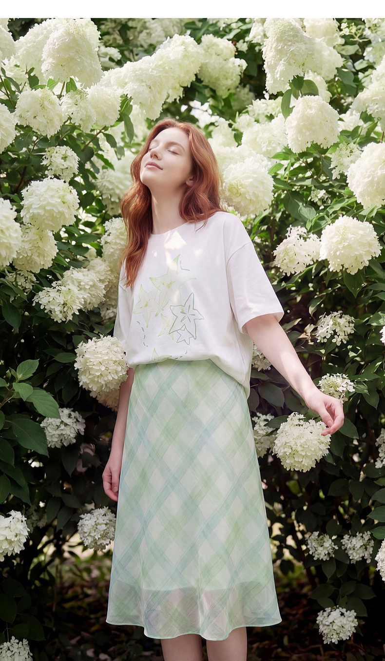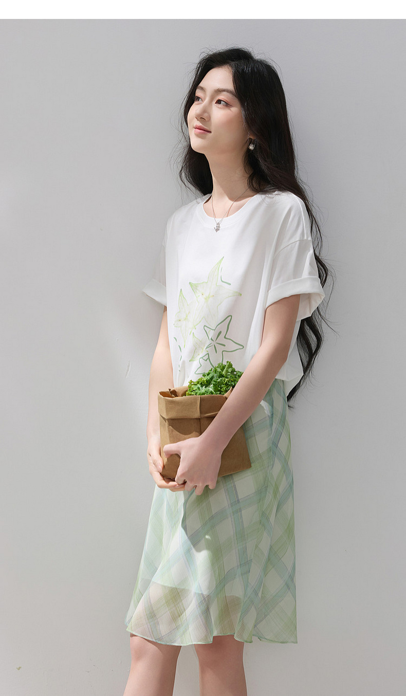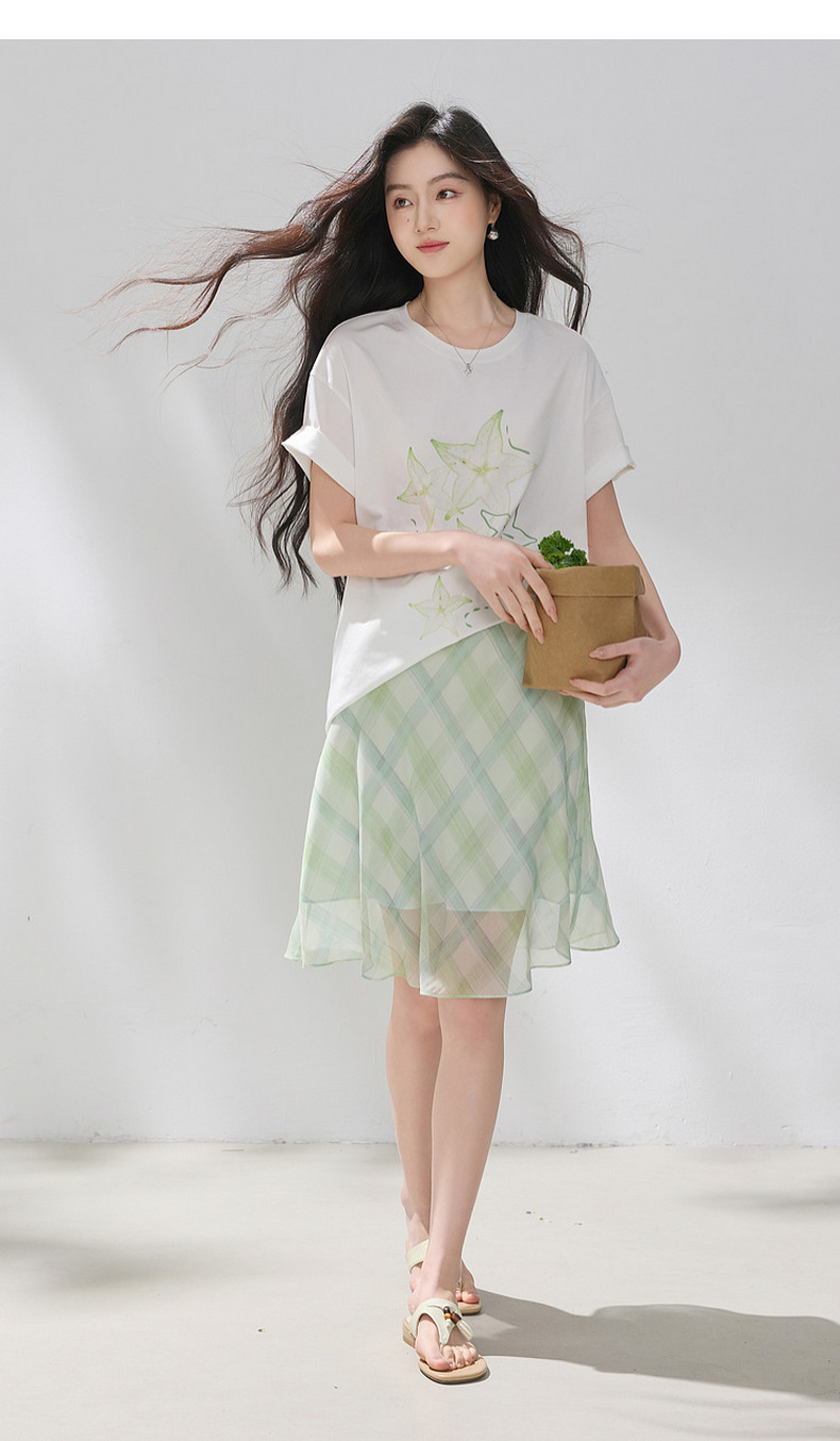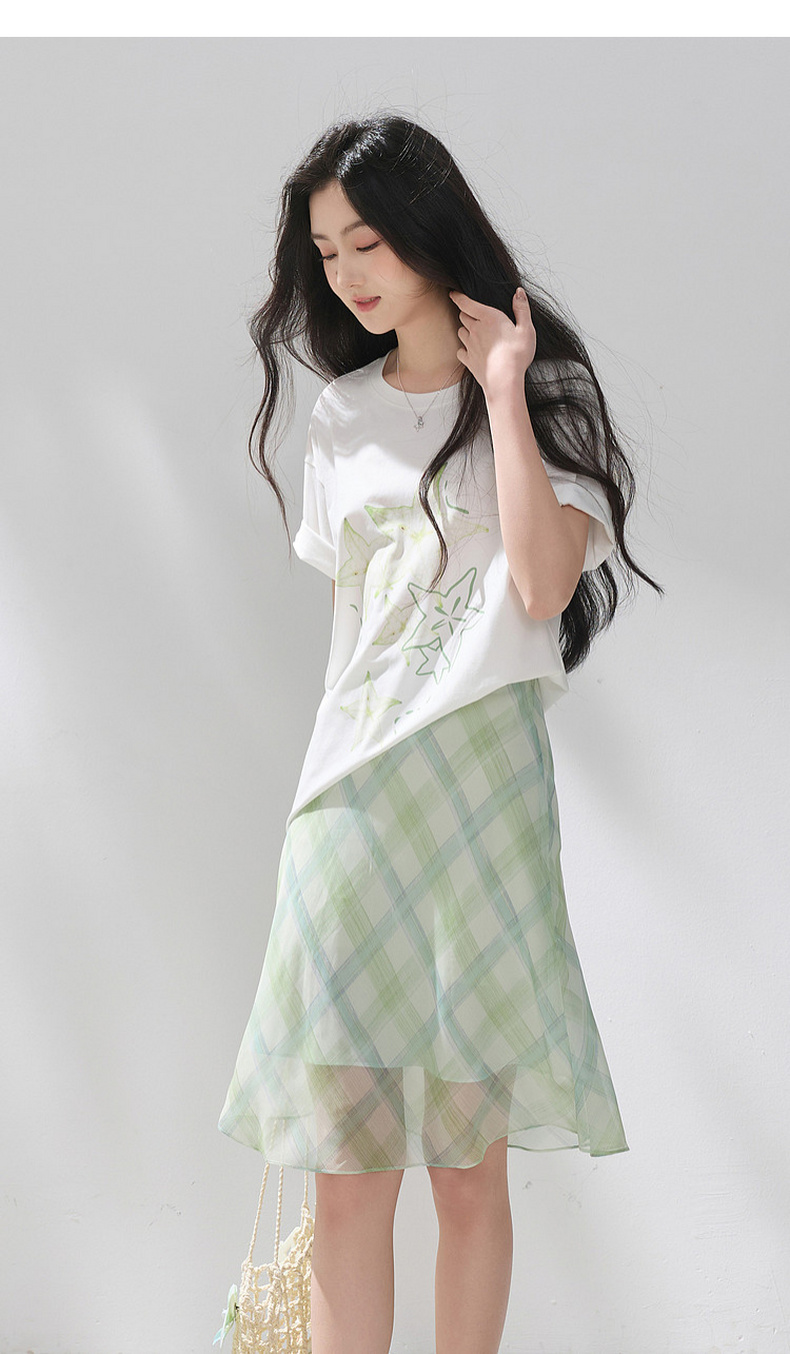 三彩2026夏季新款高腰格纹雪纺裙半身裙A字裙小A字清新度假M