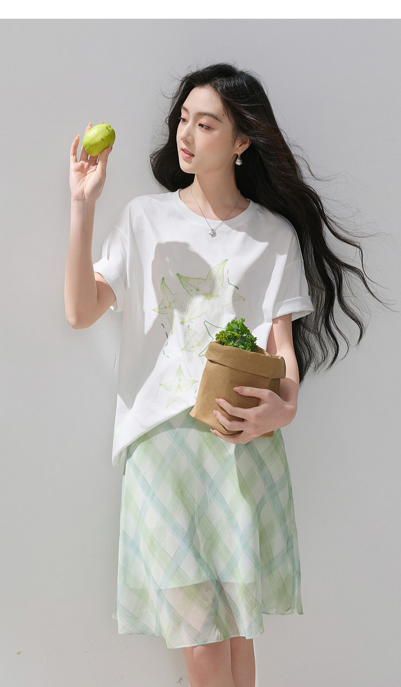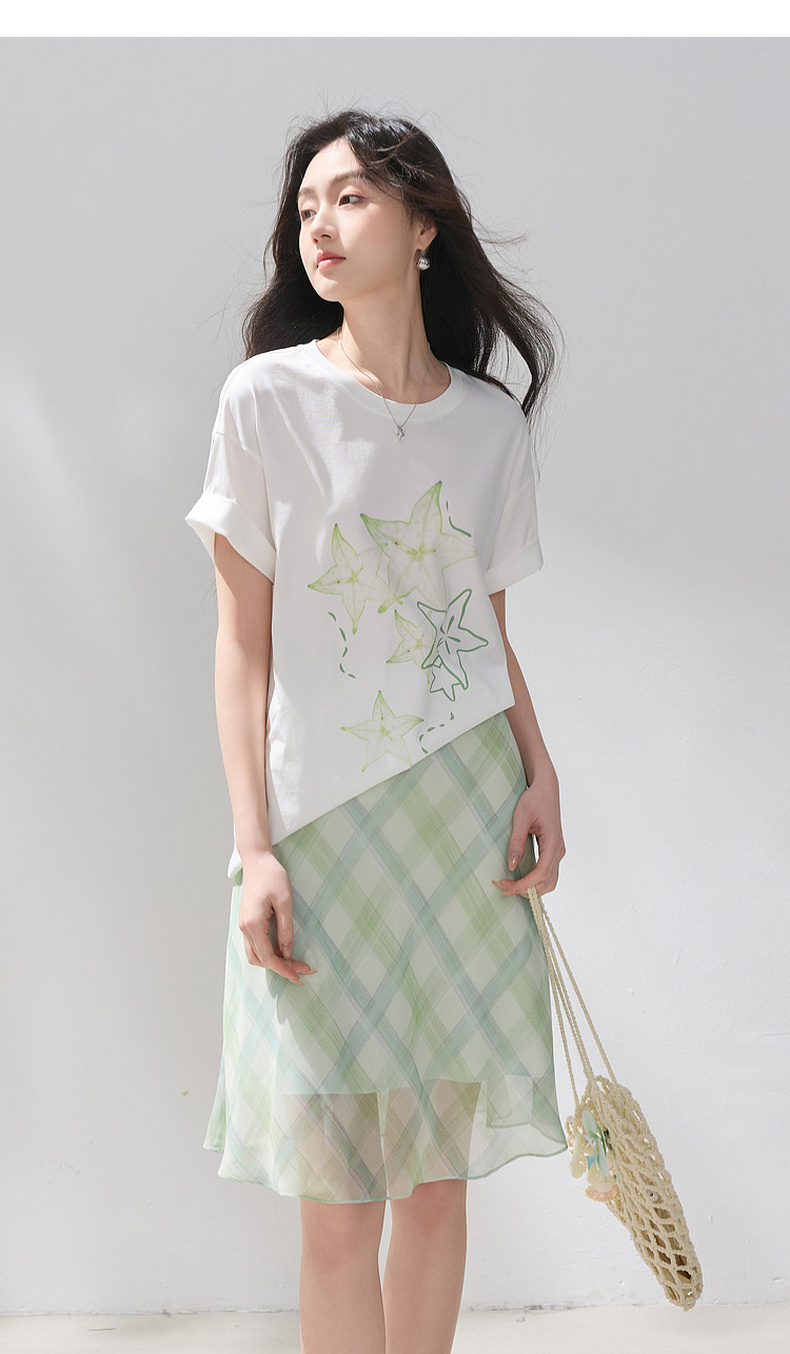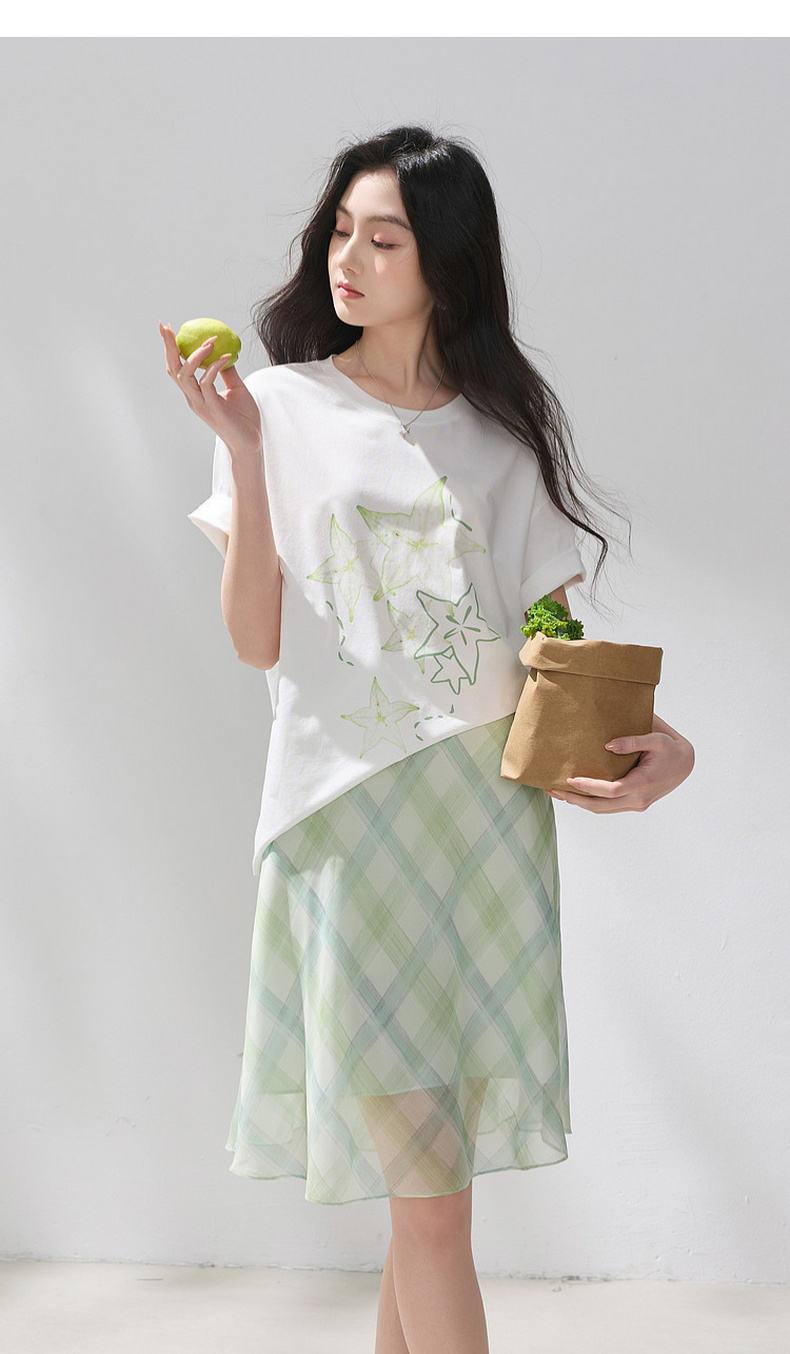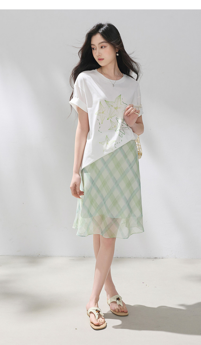 三彩2026夏季新款高腰格纹雪纺裙半身裙A字裙小A字清新度假M