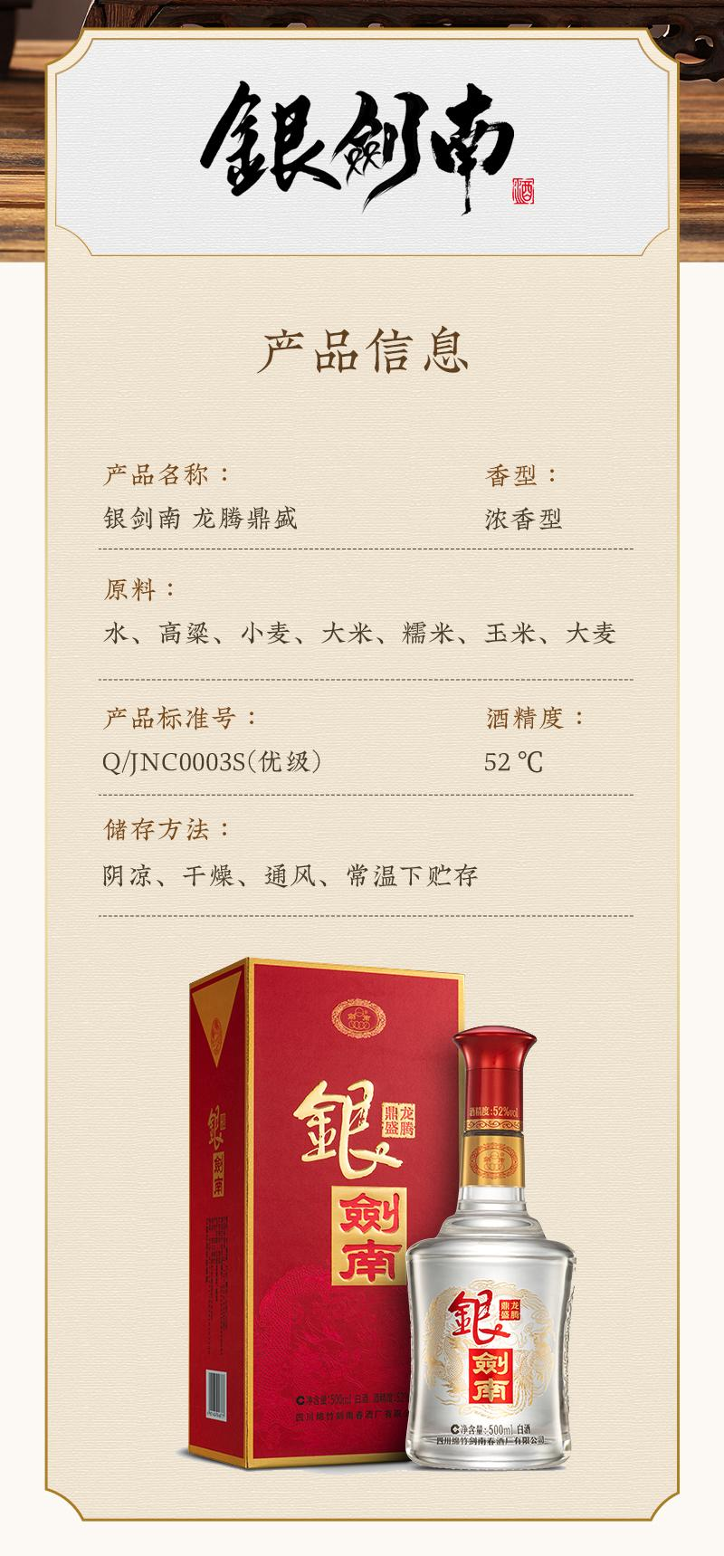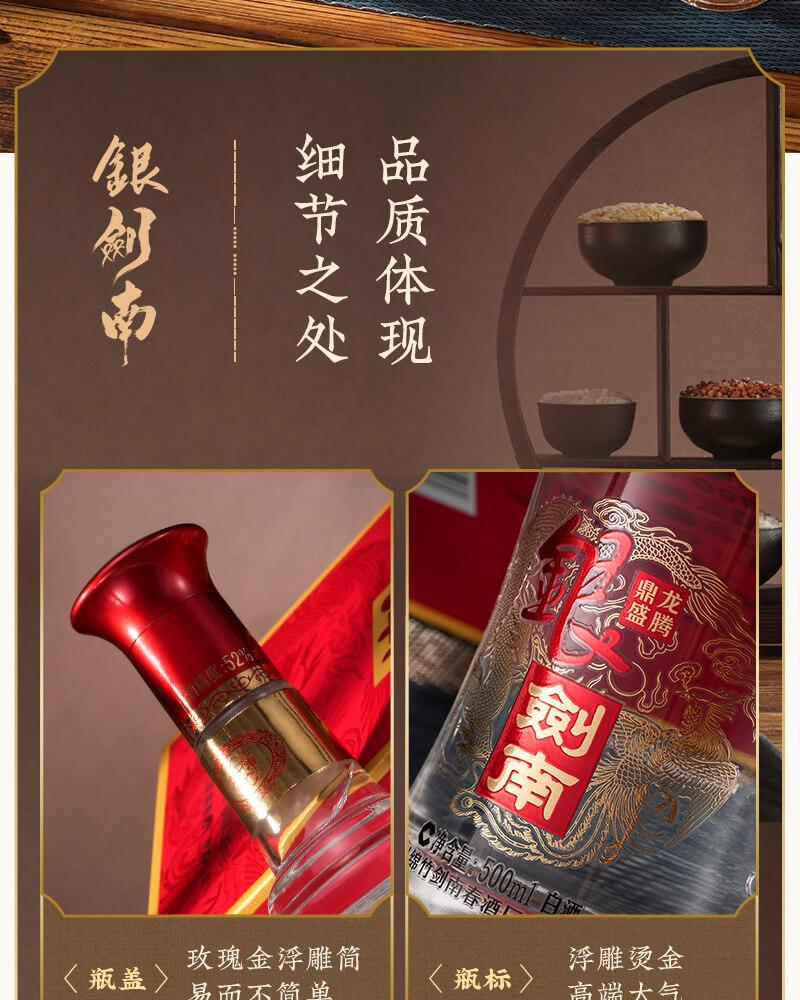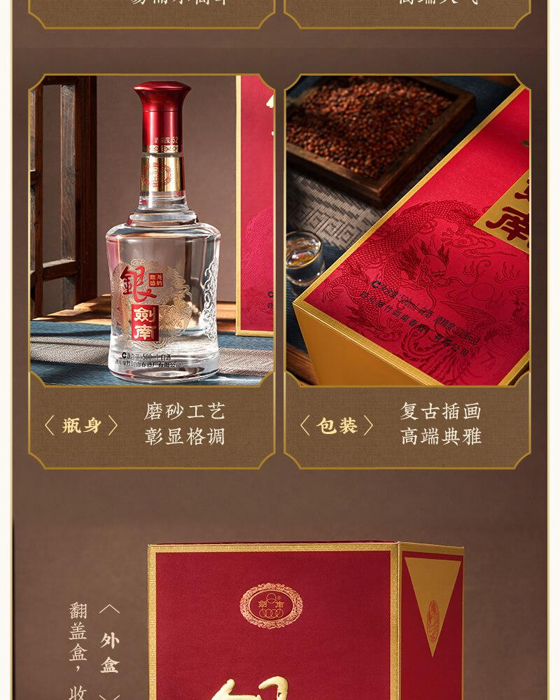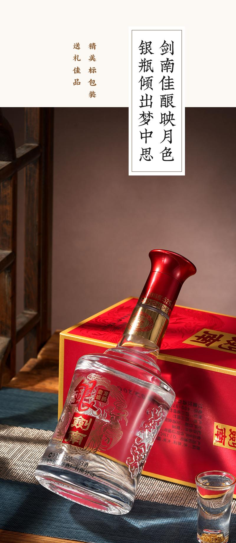 【嫡系口粮】剑南春 银剑南 龙腾鼎盛 浓香型白酒 52度 500ml*2瓶 500ml*6原箱