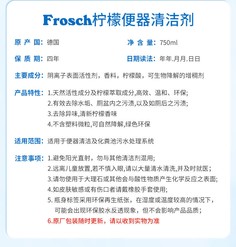 frosch洁厕灵马桶清洗剂除垢去黄去异味洁厕液厕所杀菌除臭神器