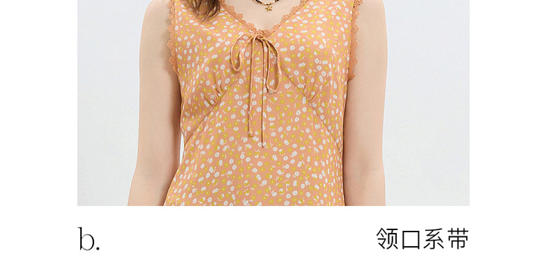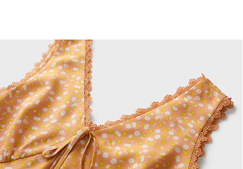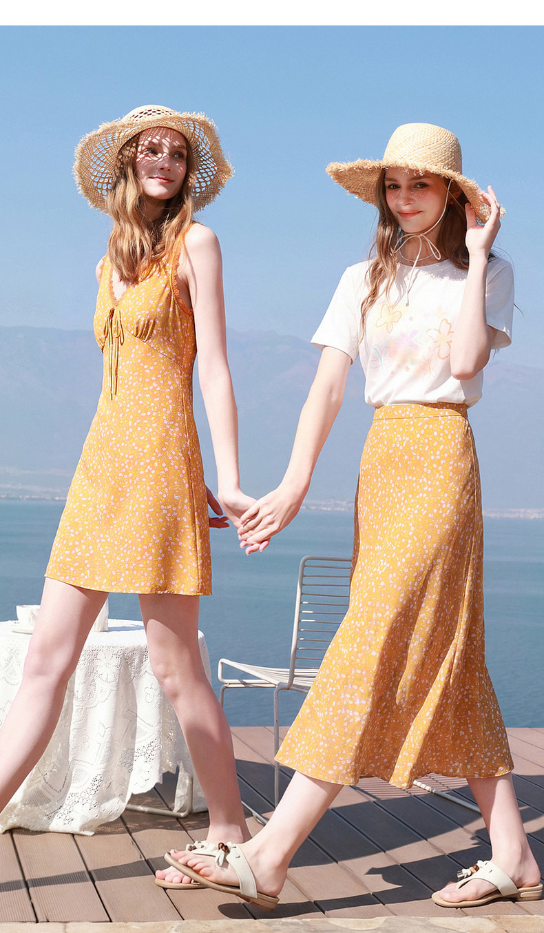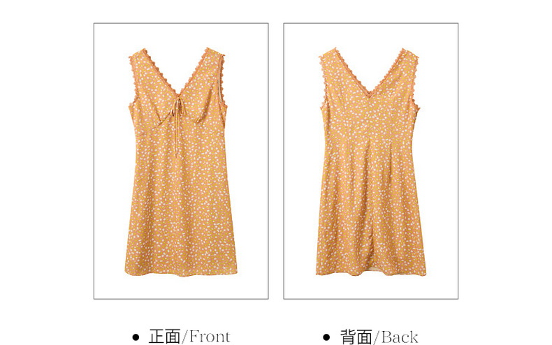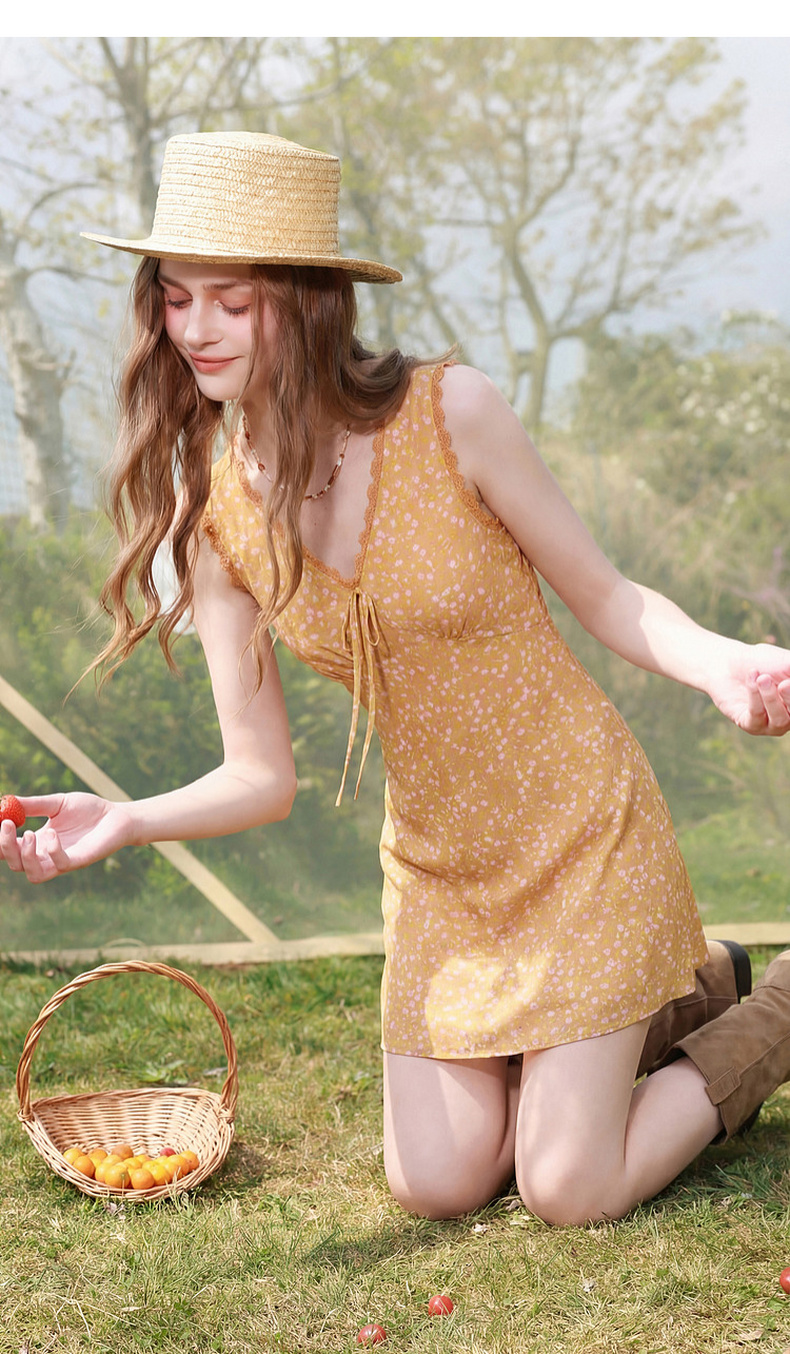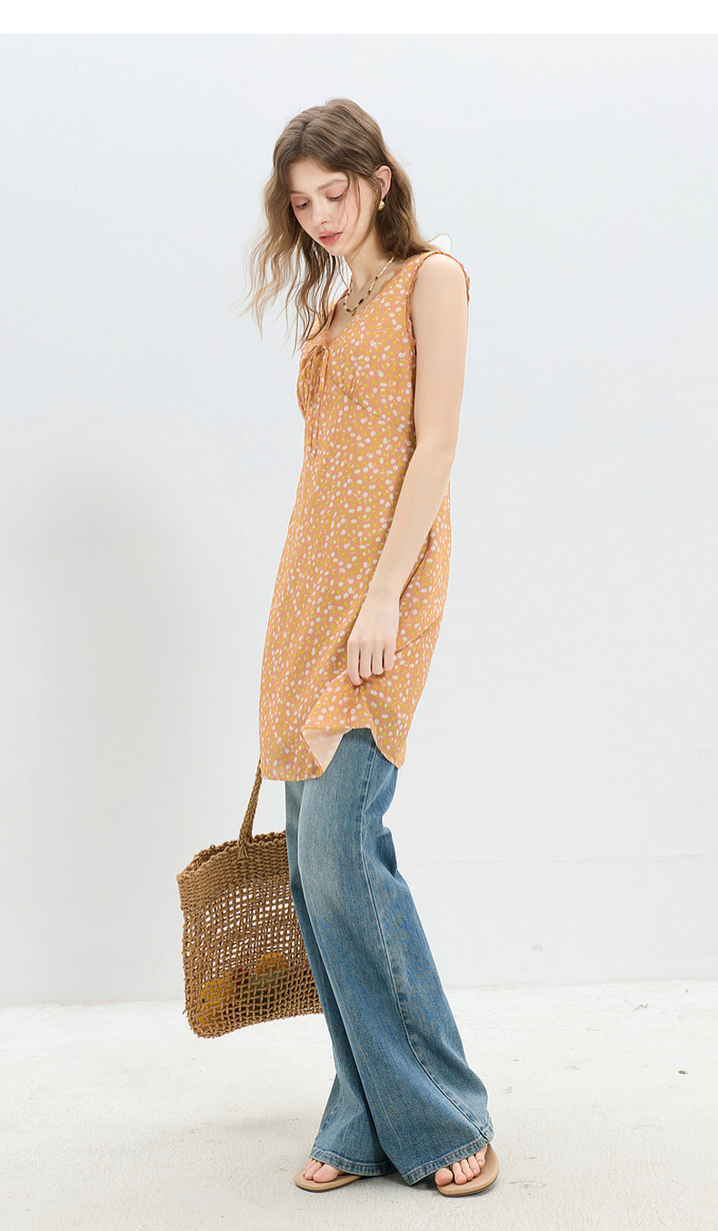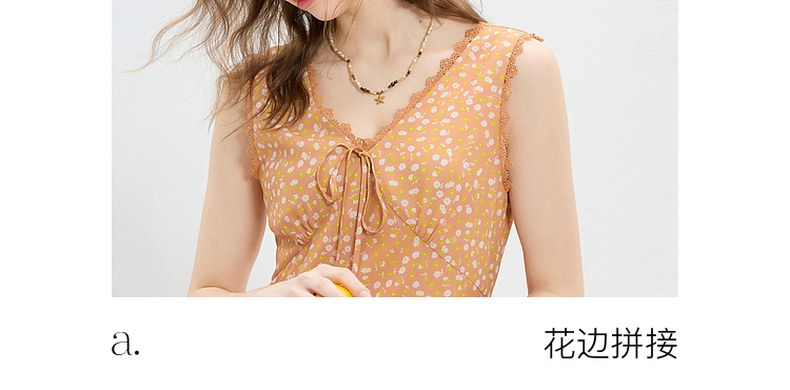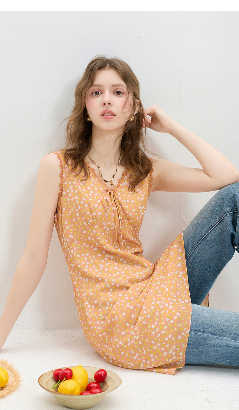 三彩2026夏季新款碎花连衣裙无袖A字裙v领叠穿短裙M