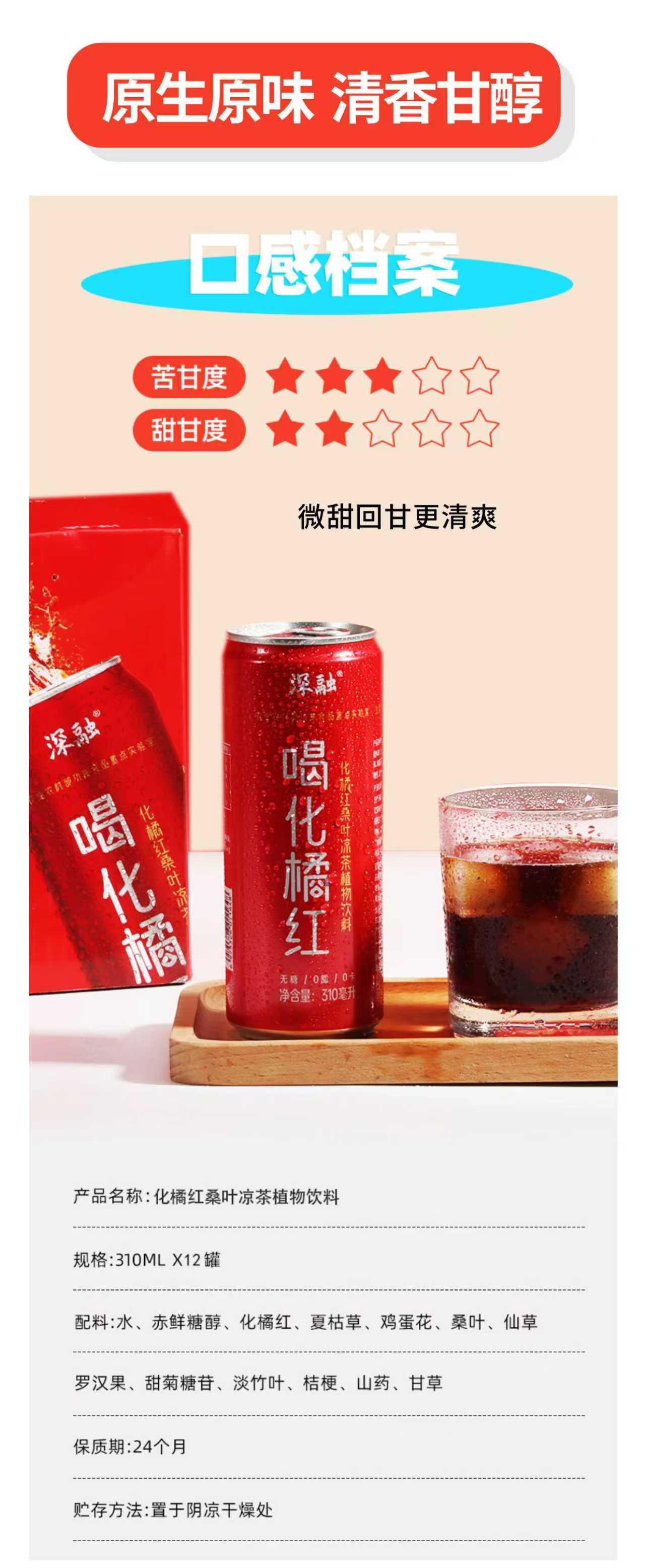 深融 化橘红桑叶茶无糖植物饮料310ml*12罐