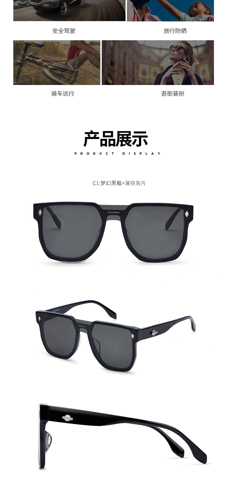【品牌直发】EYECROXX乘号眼镜-【陈赫同款】轻奢一体镜片墨镜 板材/高清尼龙镜XS21009Razo