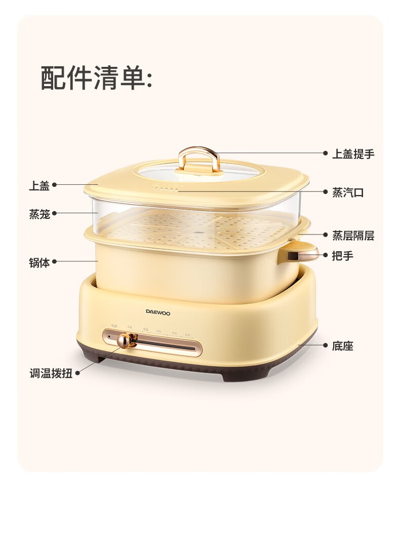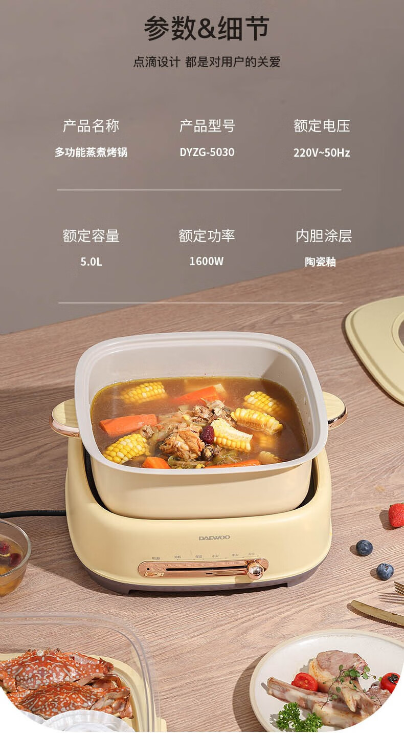 大宇(DAEWOO)电火锅大容量家用分体式多功能蒸煮锅DYZG-5030