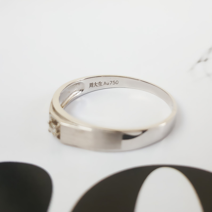 【天然正品】周大生AU750白金时尚经典拉丝款0.040克拉钻石戒指情侣对戒22号(戒圈可改)中性款现售价:1880特价!251024NJM04
