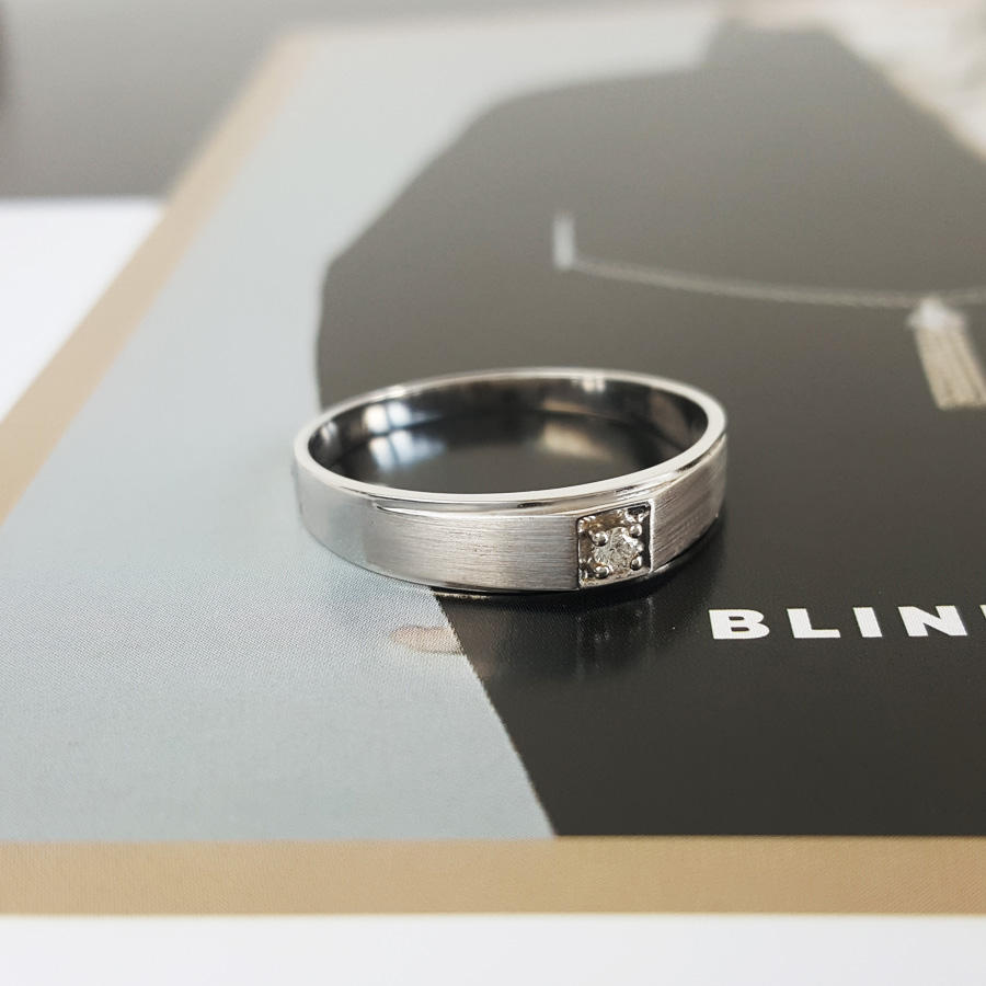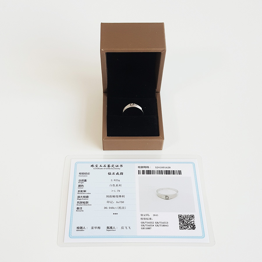 款式 | AU750白金时尚经典拉丝款0.040克拉钻石戒指情侣对戒 |