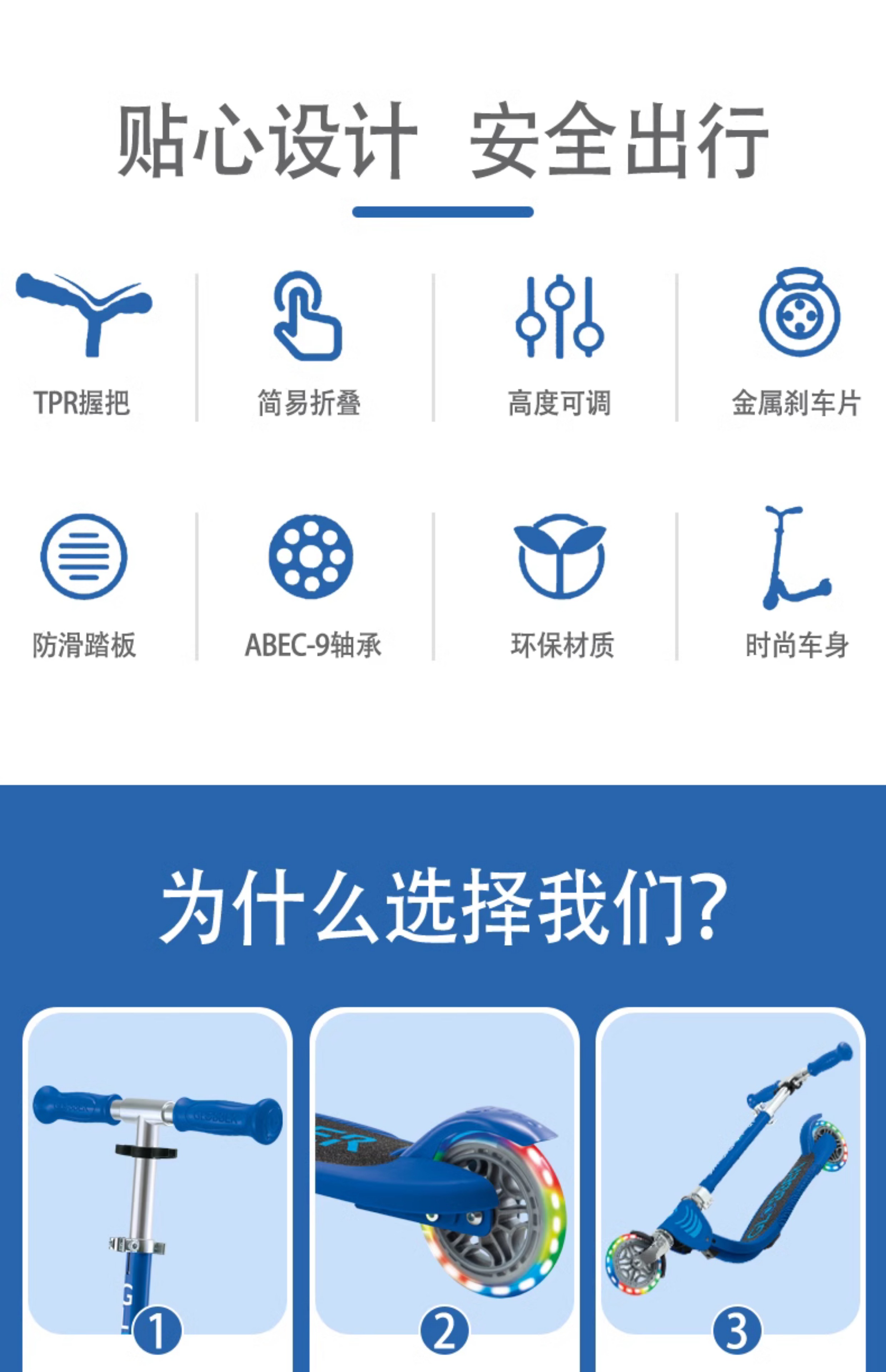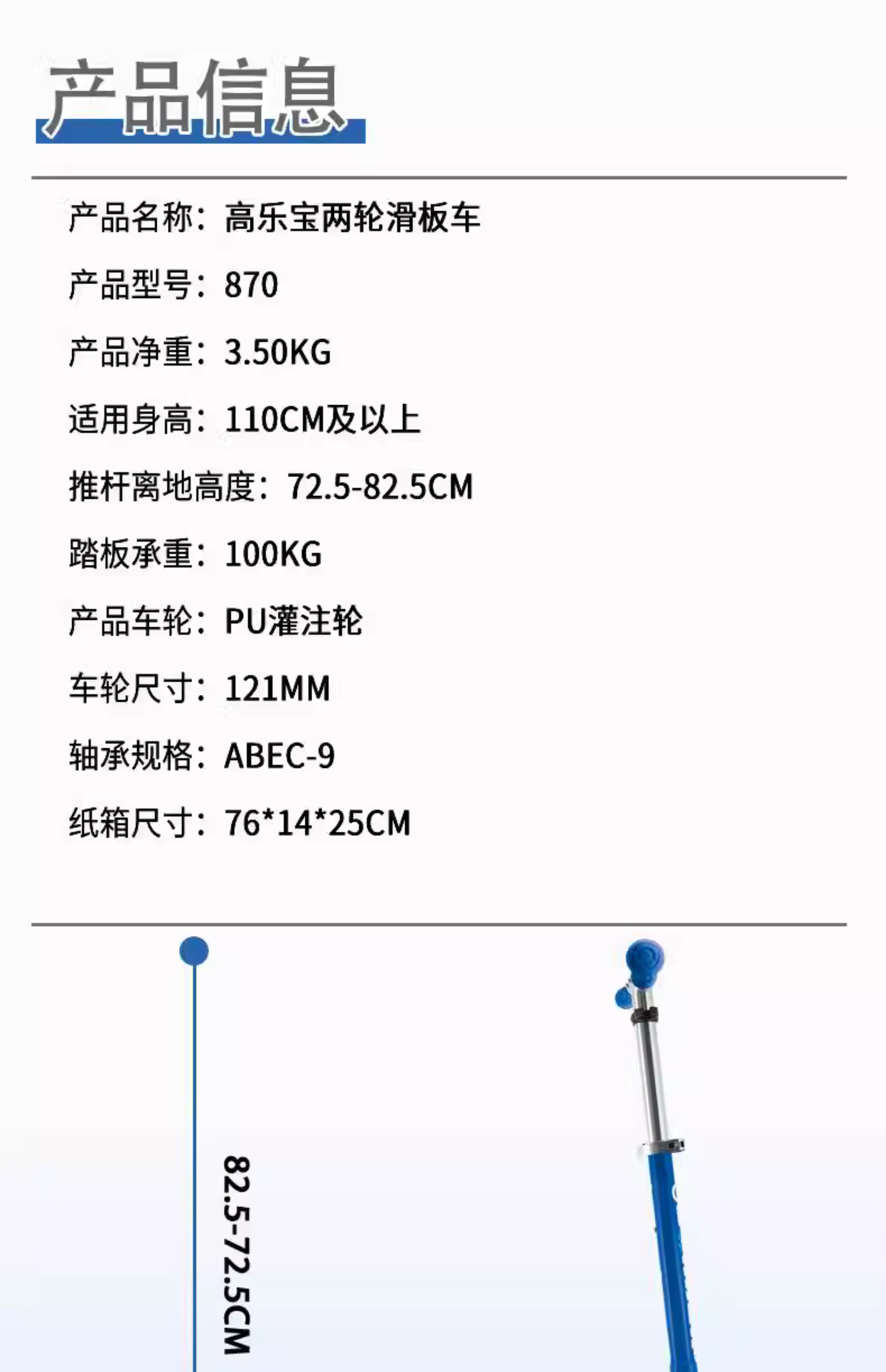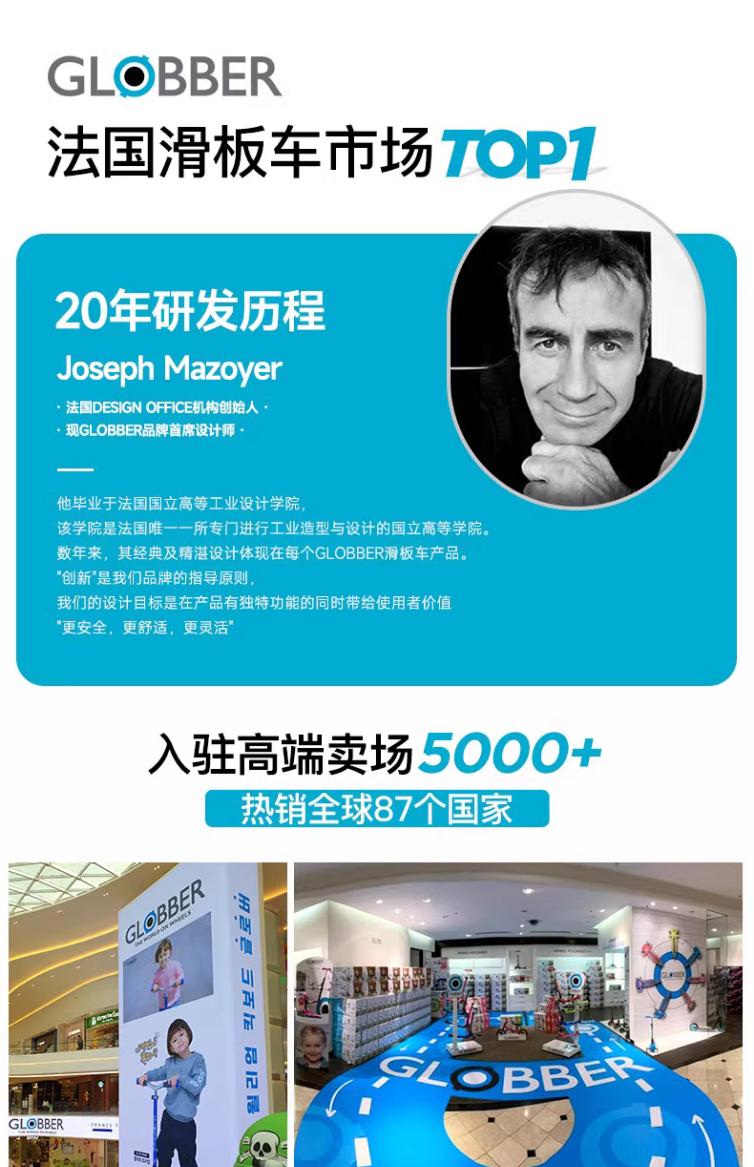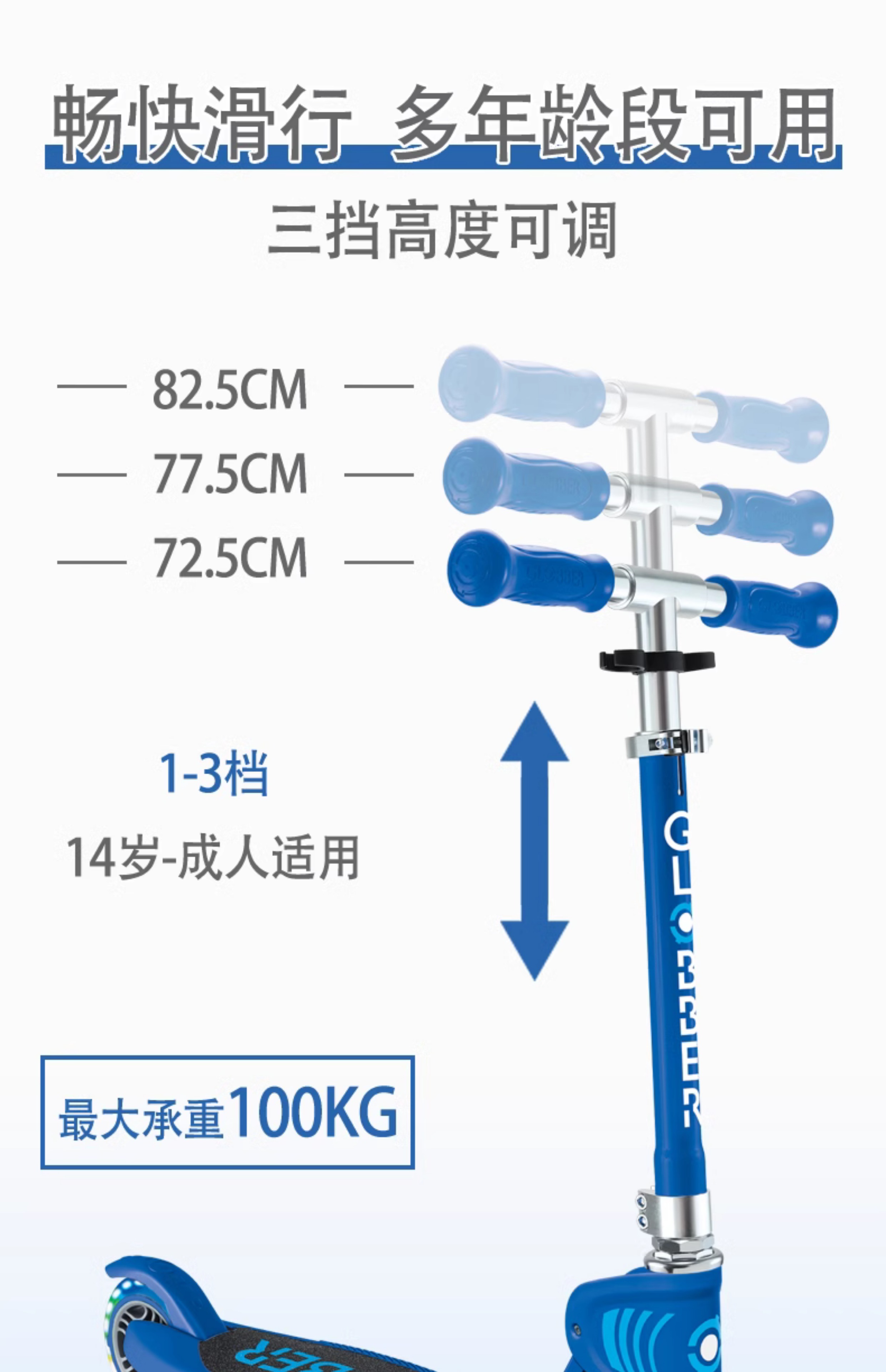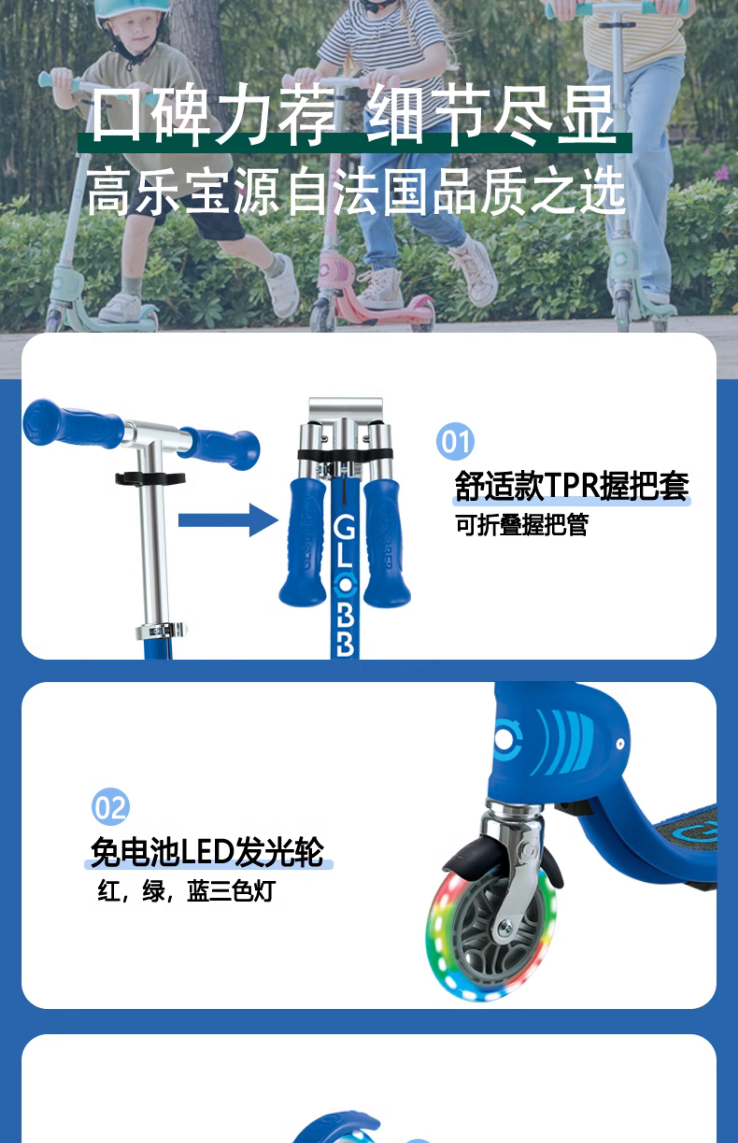 法国Globber高乐宝儿童滑板车两轮折叠代步车适合6-12岁大童870