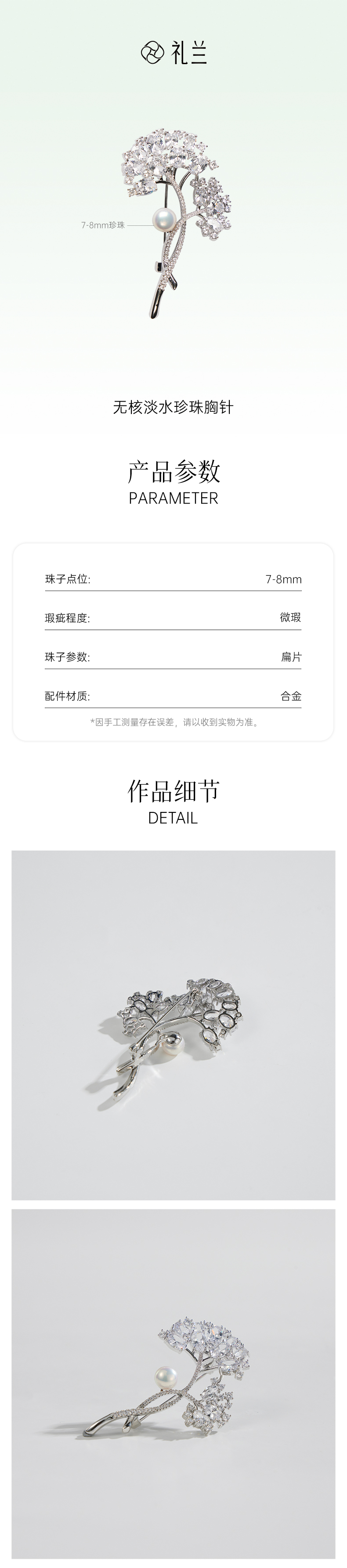 礼兰 气质淡水珍珠银杏叶简约胸针7-8mm